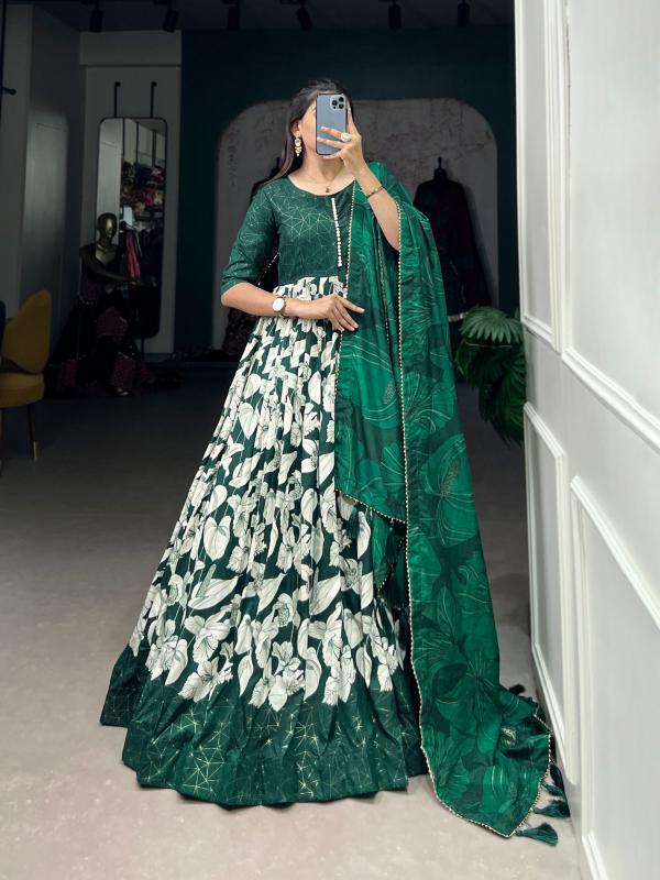 pr YNF5037 tussar silk floral print with foil print beautiful long gown