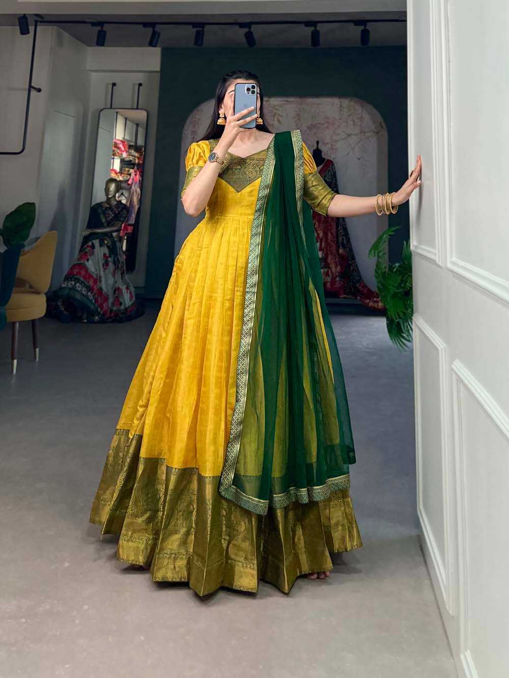 pr ynf5307 kanjivaram function wear readymade gown dupatta collection
