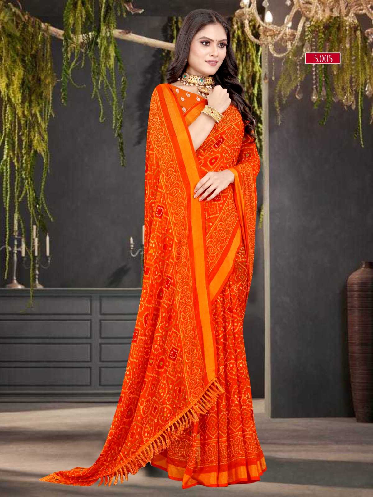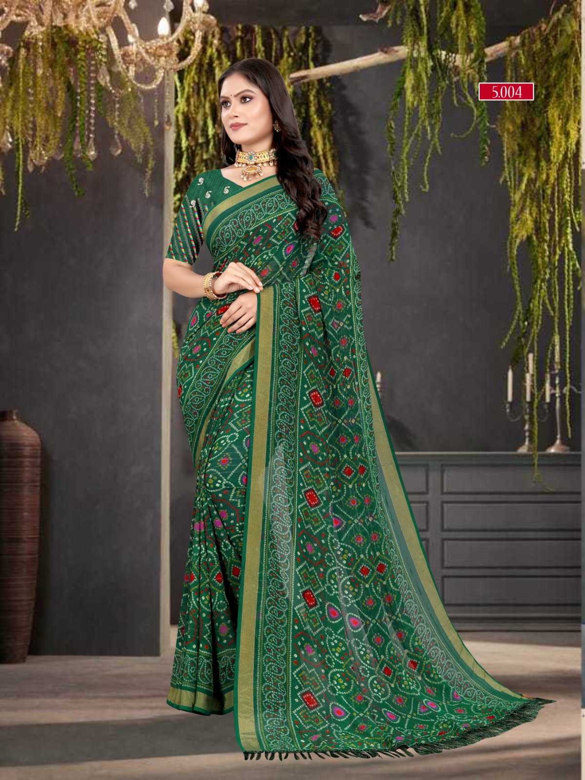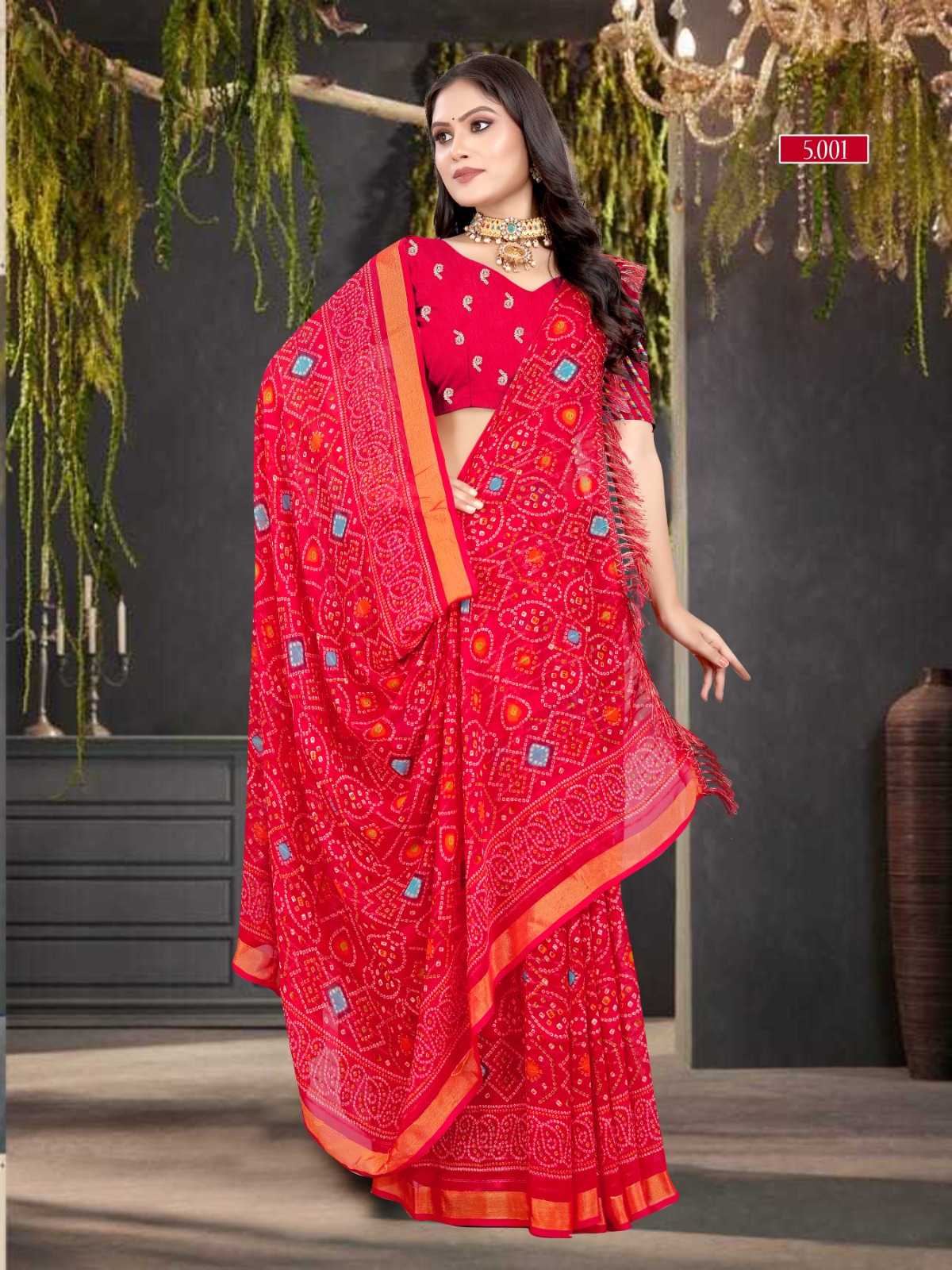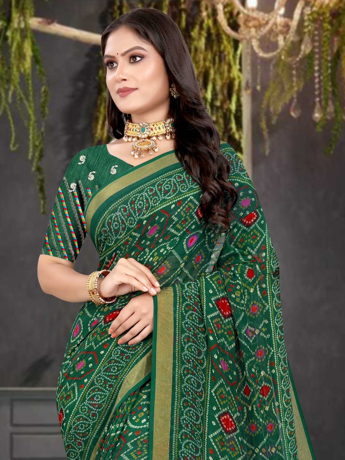 pr zinal stylish design sequence work bandhani saree exports
