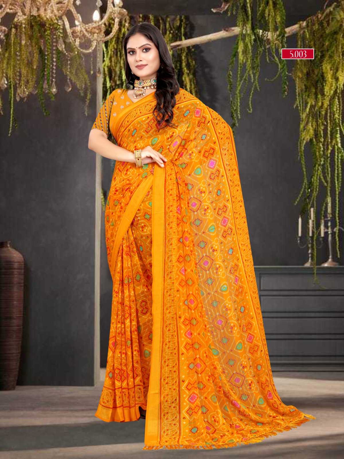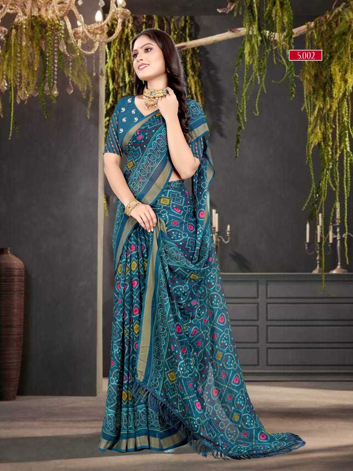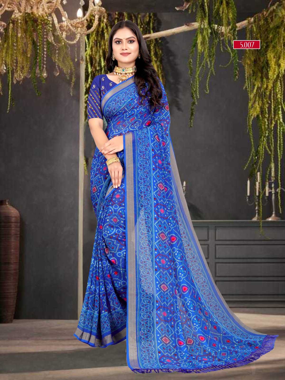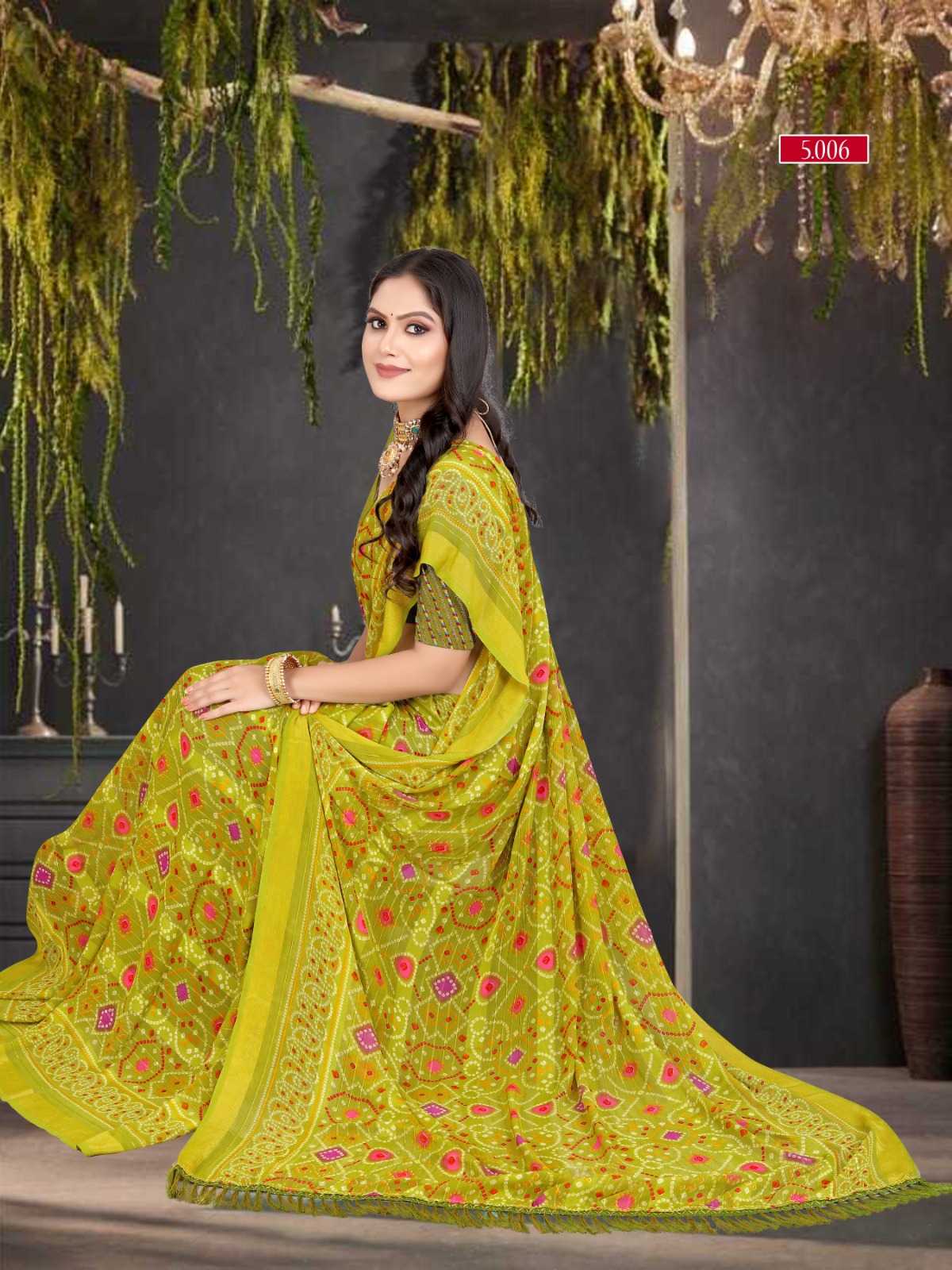 pr zinal stylish design sequence work bandhani saree exports