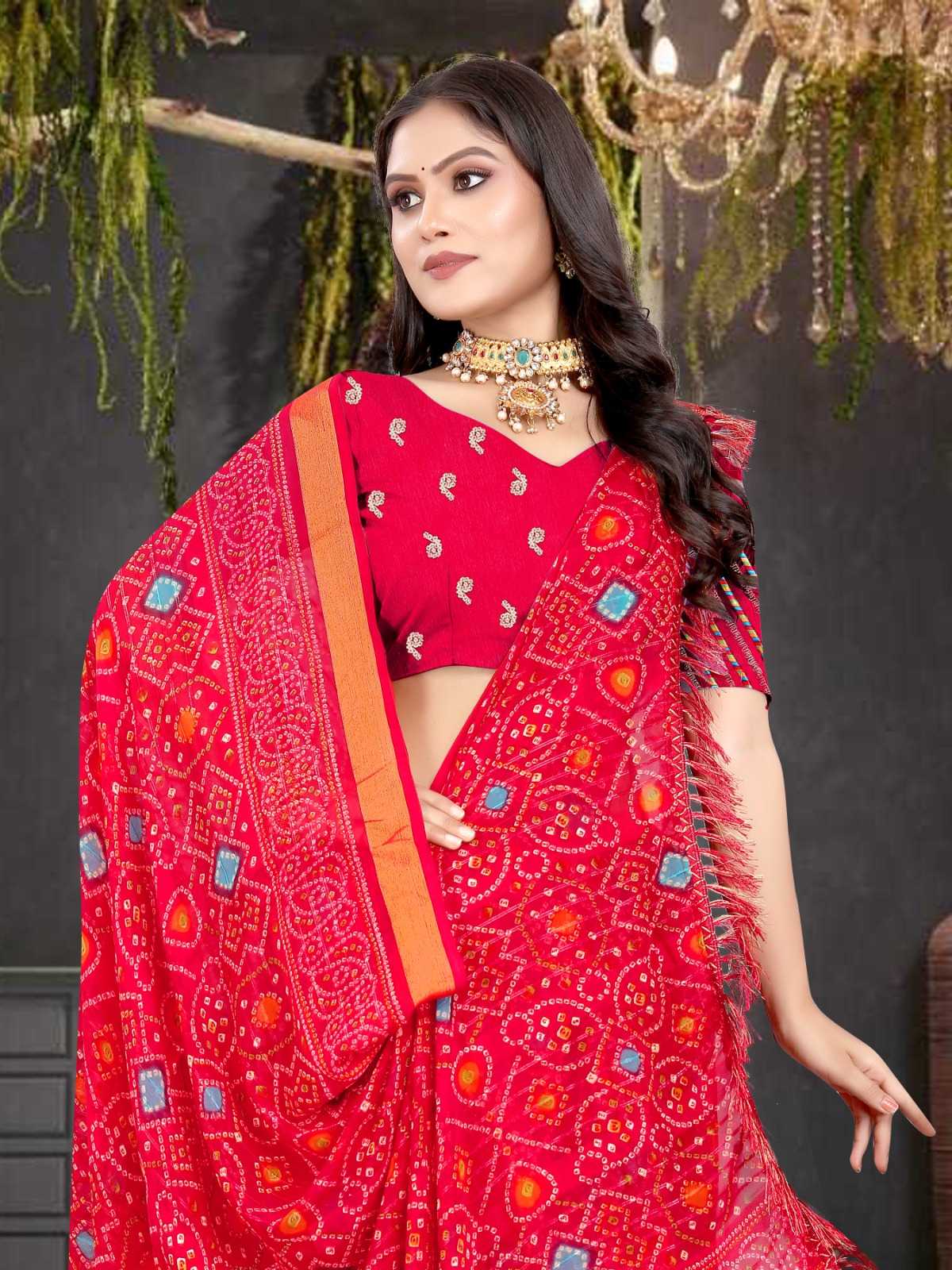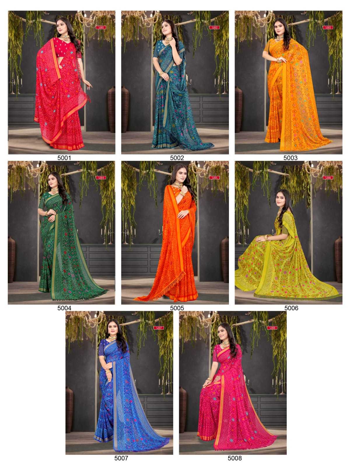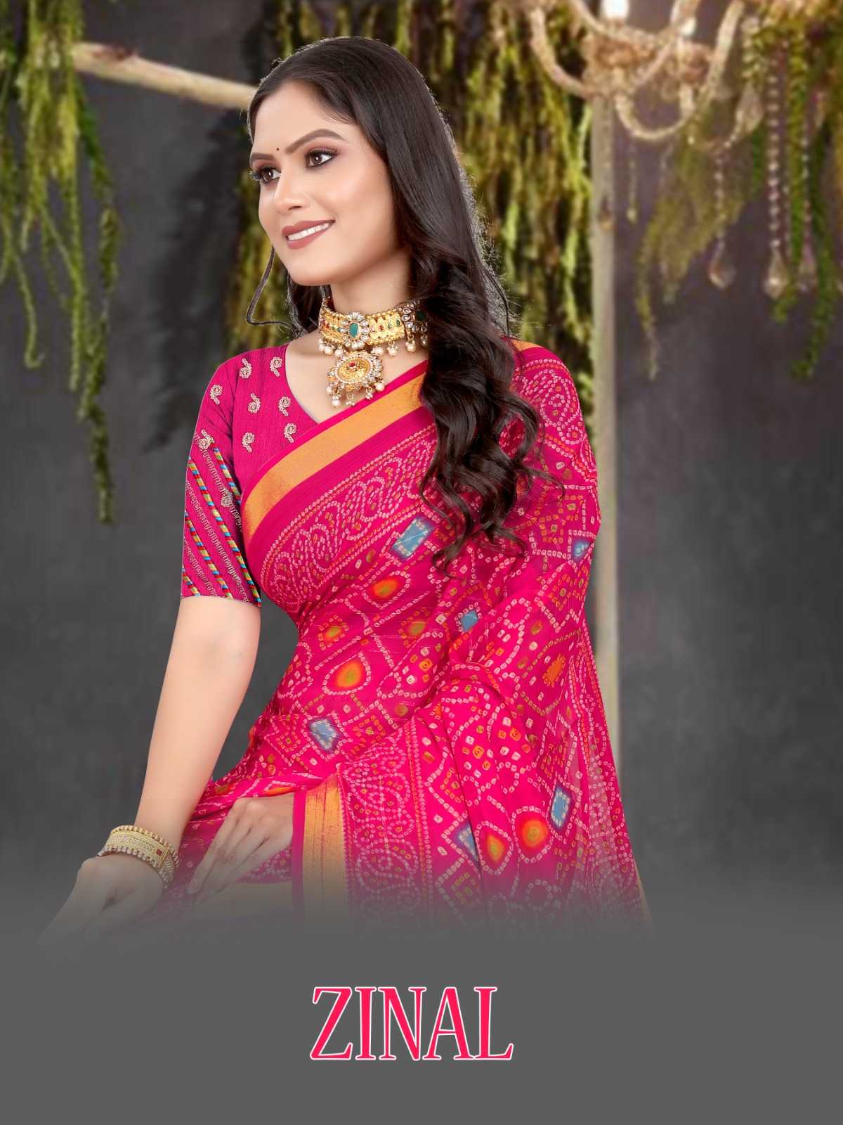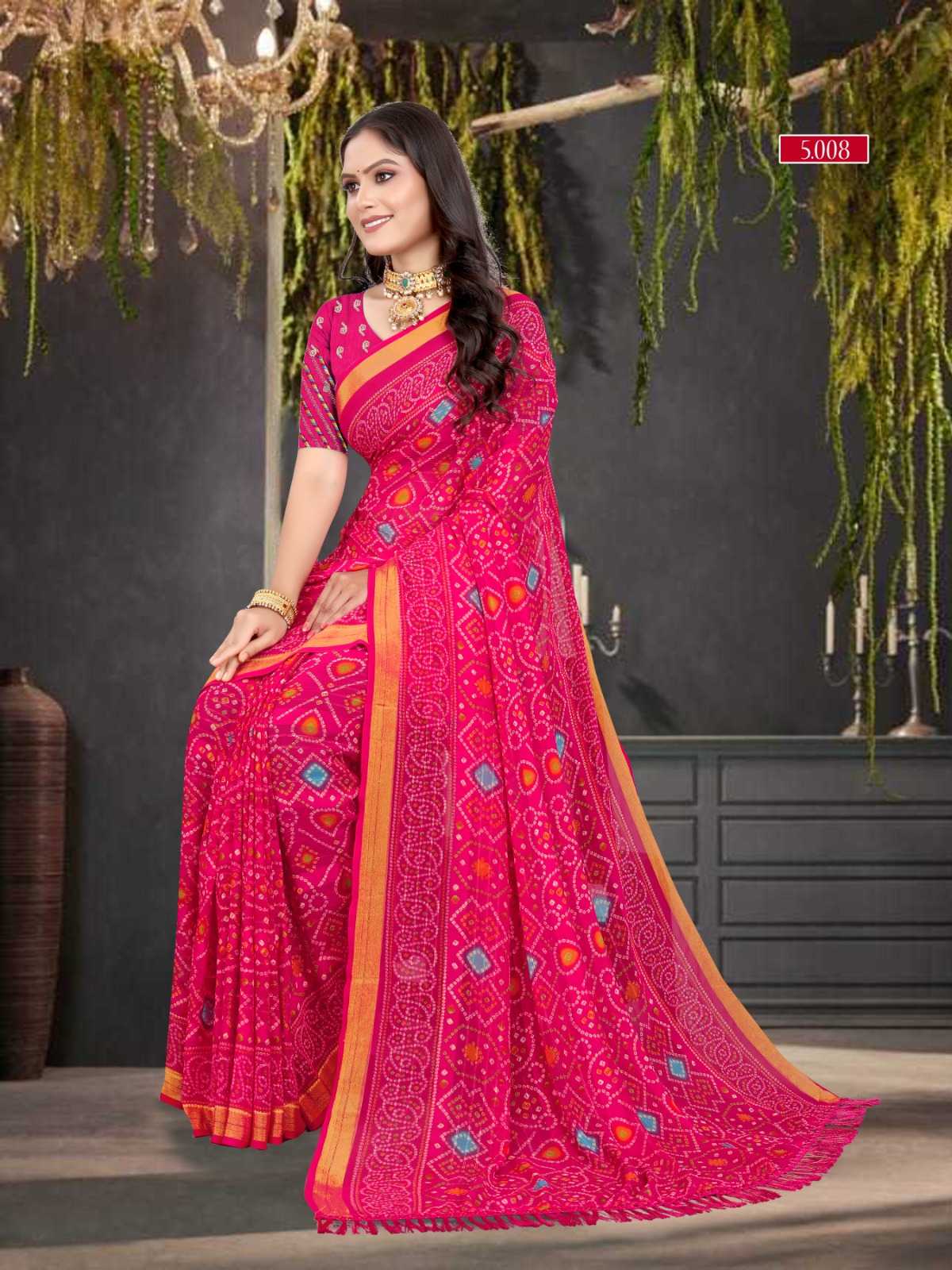 pr zinal stylish design sequence work bandhani saree exports