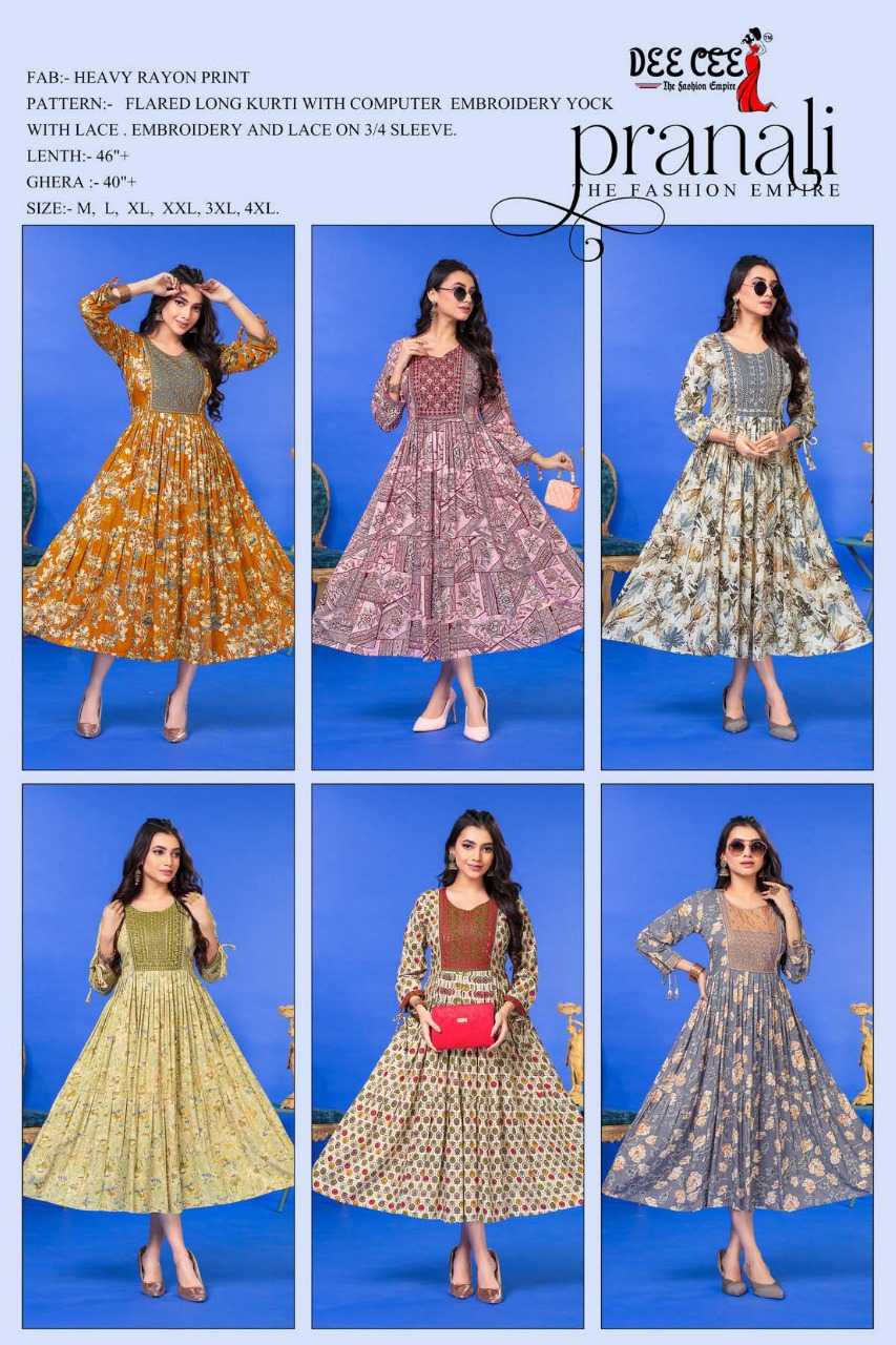 Pranali by dee cee flair long kurti readymade collection for festive wear