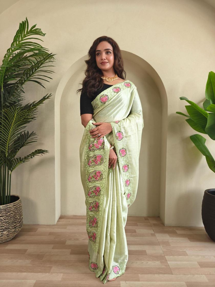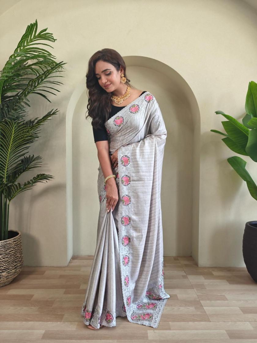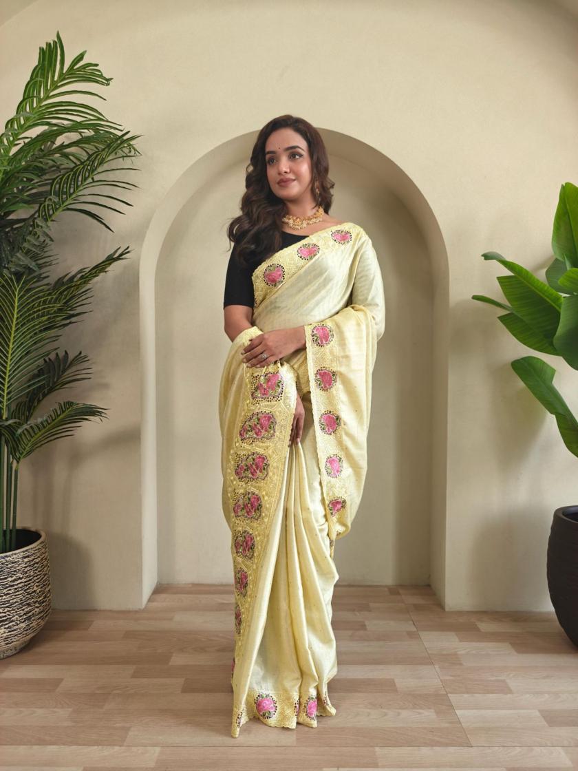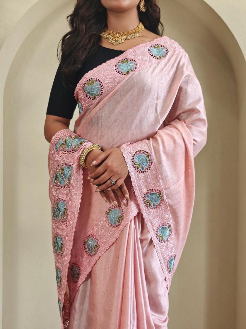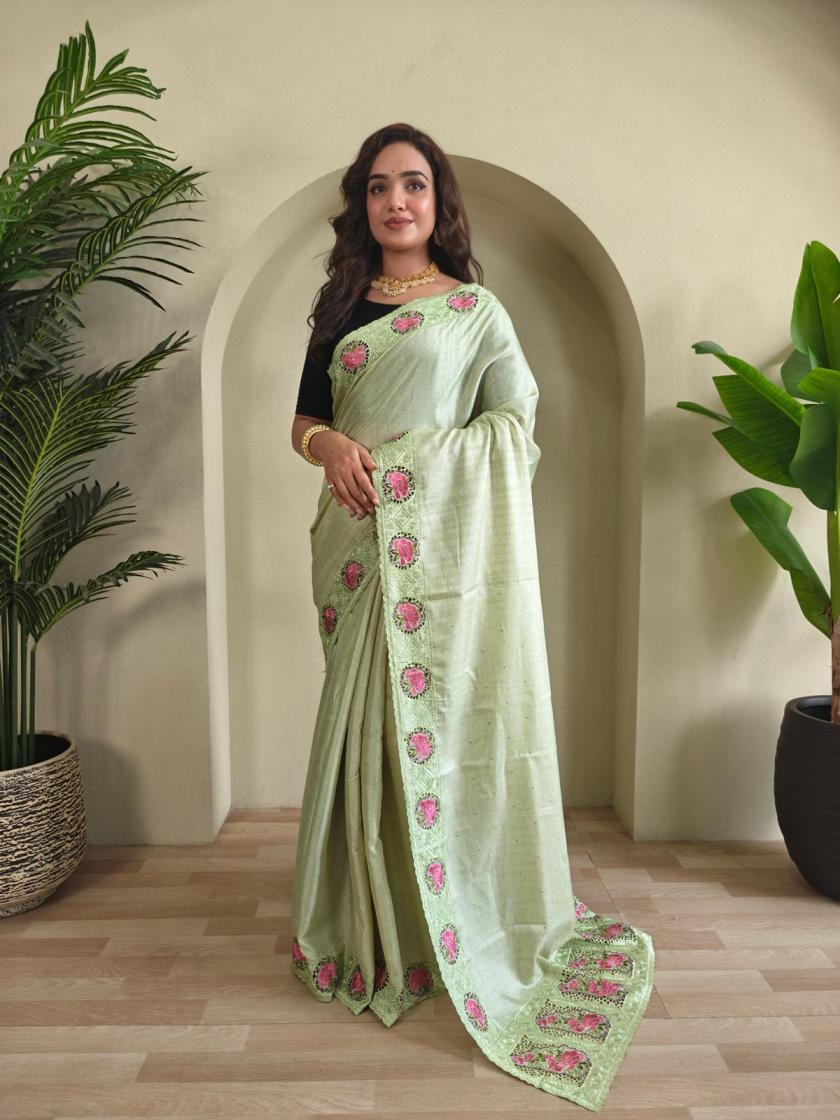 New Catalogue ❣️❣️❣️ Catalogue : PRANJAL Description - soft tussar silk sarees with super fine embroidered pattern with cutwork, contrast embroidered pallu and border with running blouse. Blouse :- as shown in videos ; running blouse. 😍 Price :- 1499/- 😍 Ready to ship 🚢🚢🚢 |