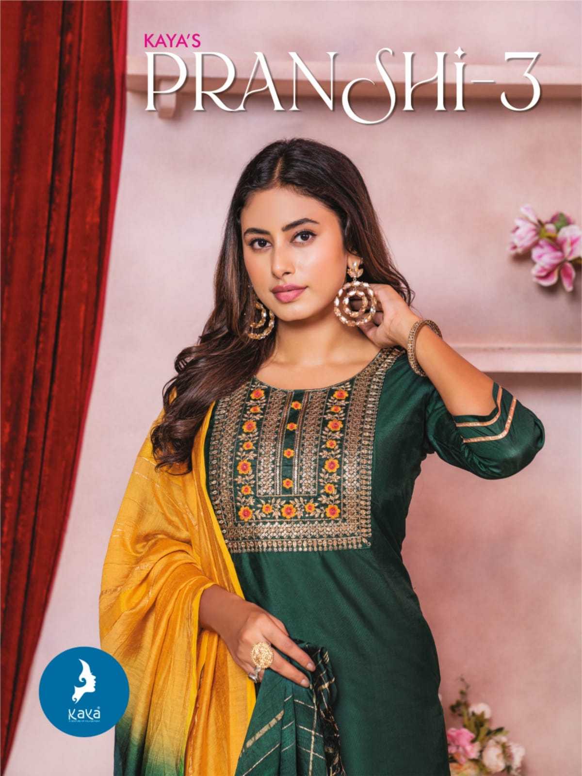 pranshi vol 3 by kaya popular design chanderi silk readymade big size 3pcs dress