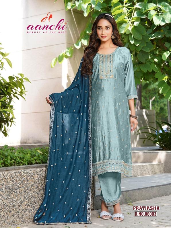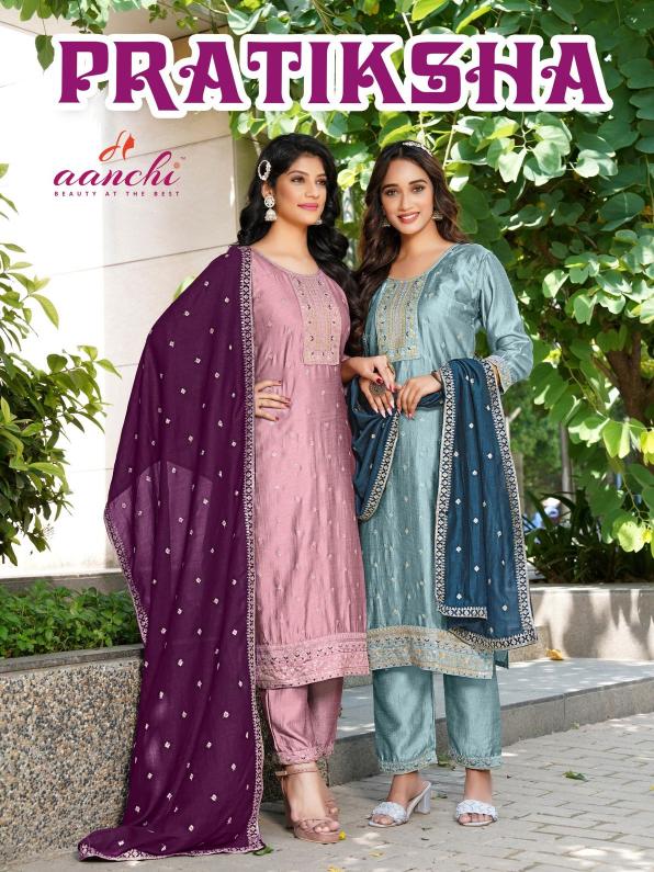 pratiksha by aanchi vichitra silk fully stitch elegant style 3pcs dress