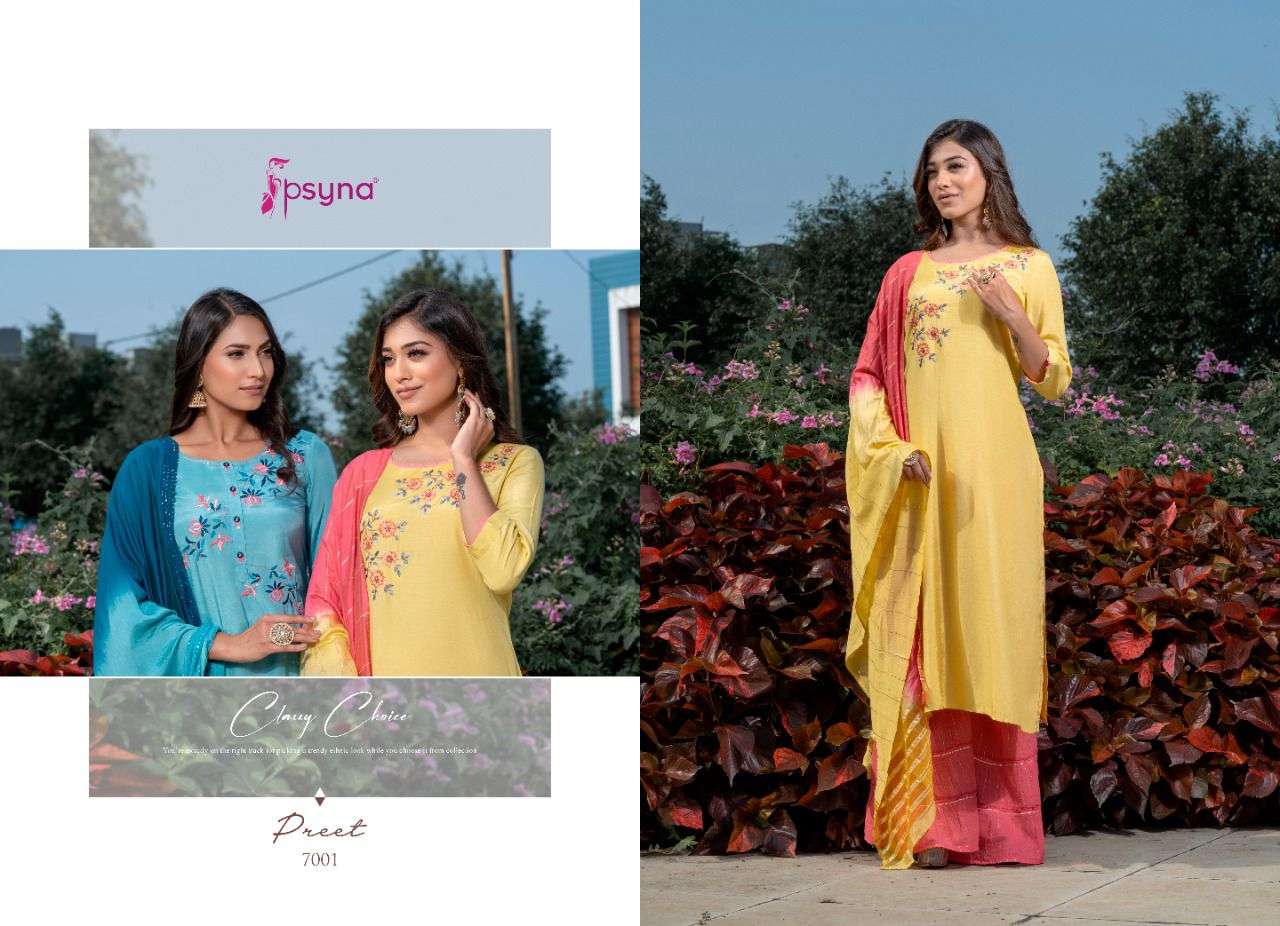 preet vol 7 by psyna exclusive readymade kurti with skirt sharara pant & dupatta set