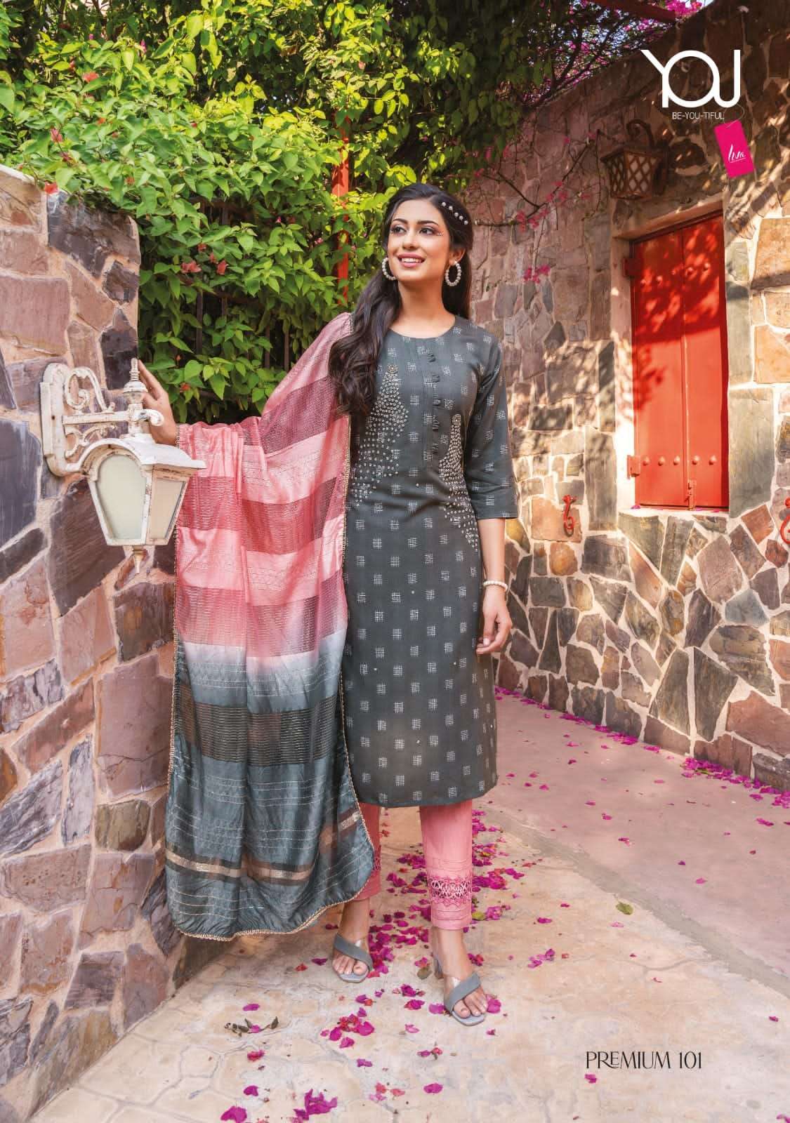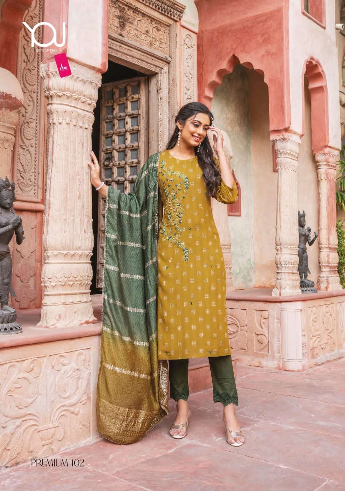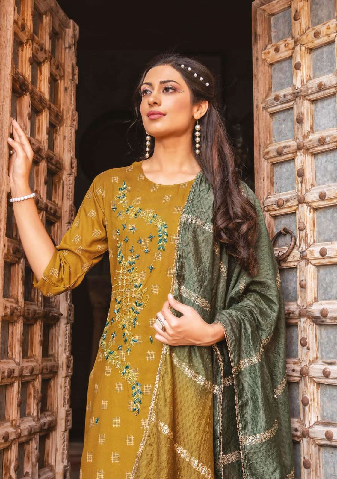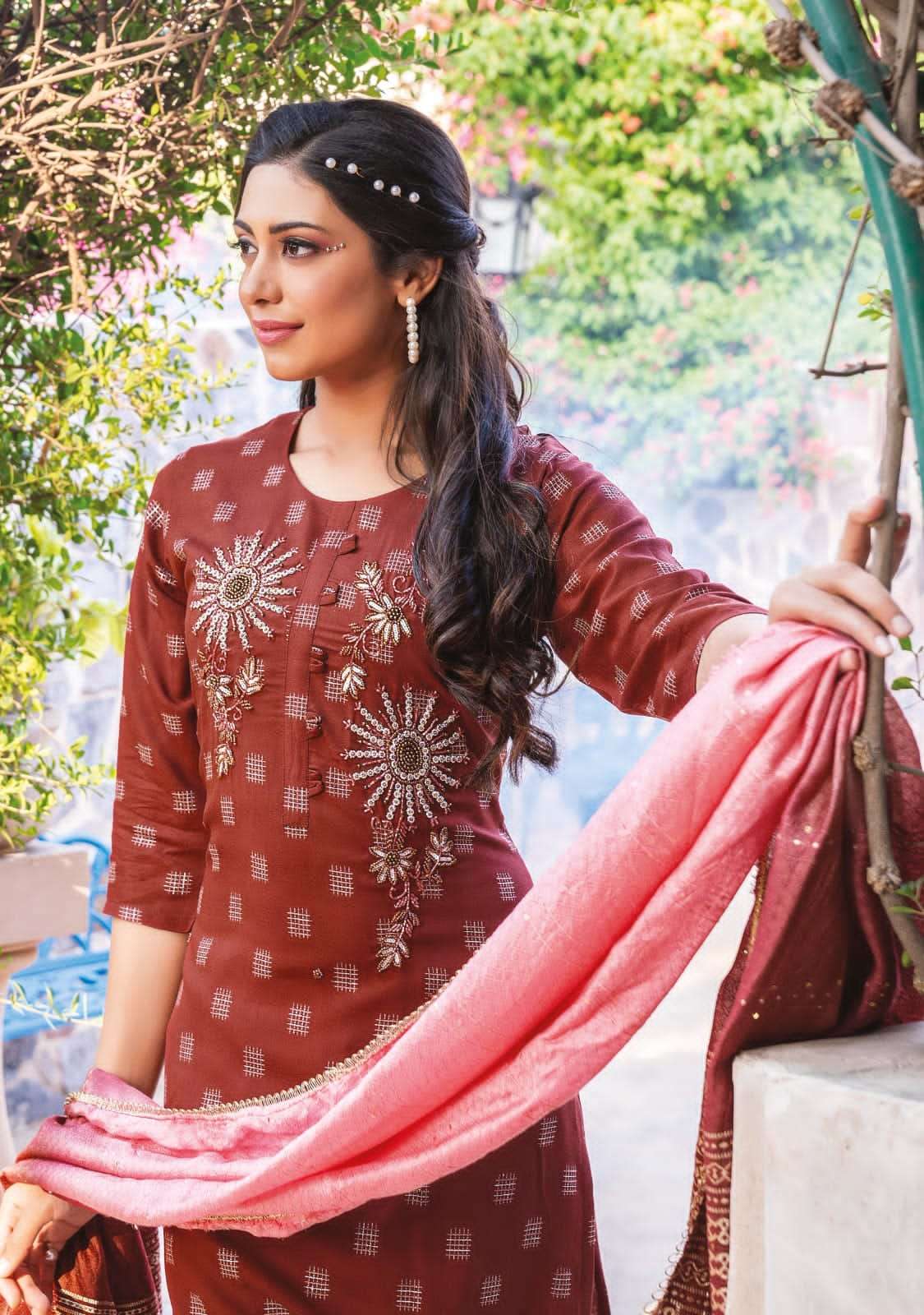 premium by you wanna super fancy sober handwork kurti with pant and dupatta