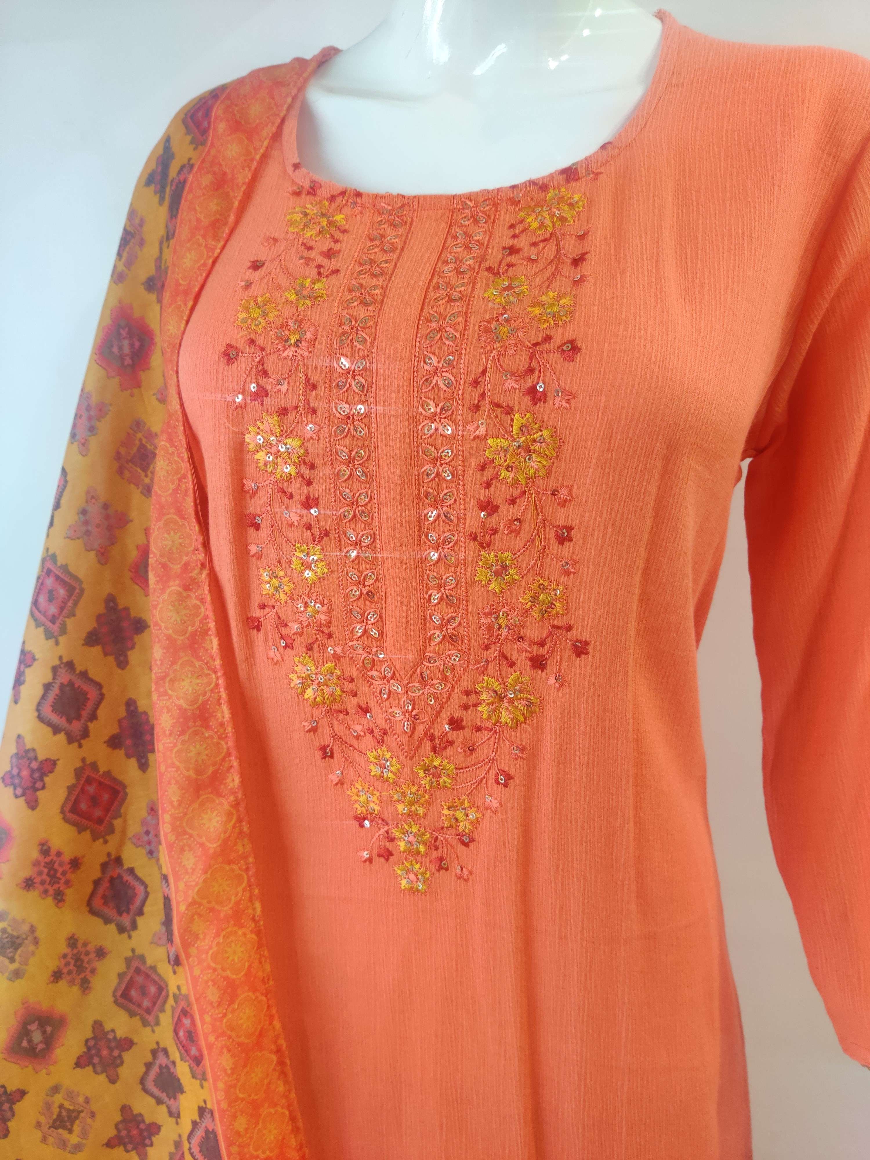 Premium Cotton Kurti With Embroidery And Digital Print Dupatta With Pants