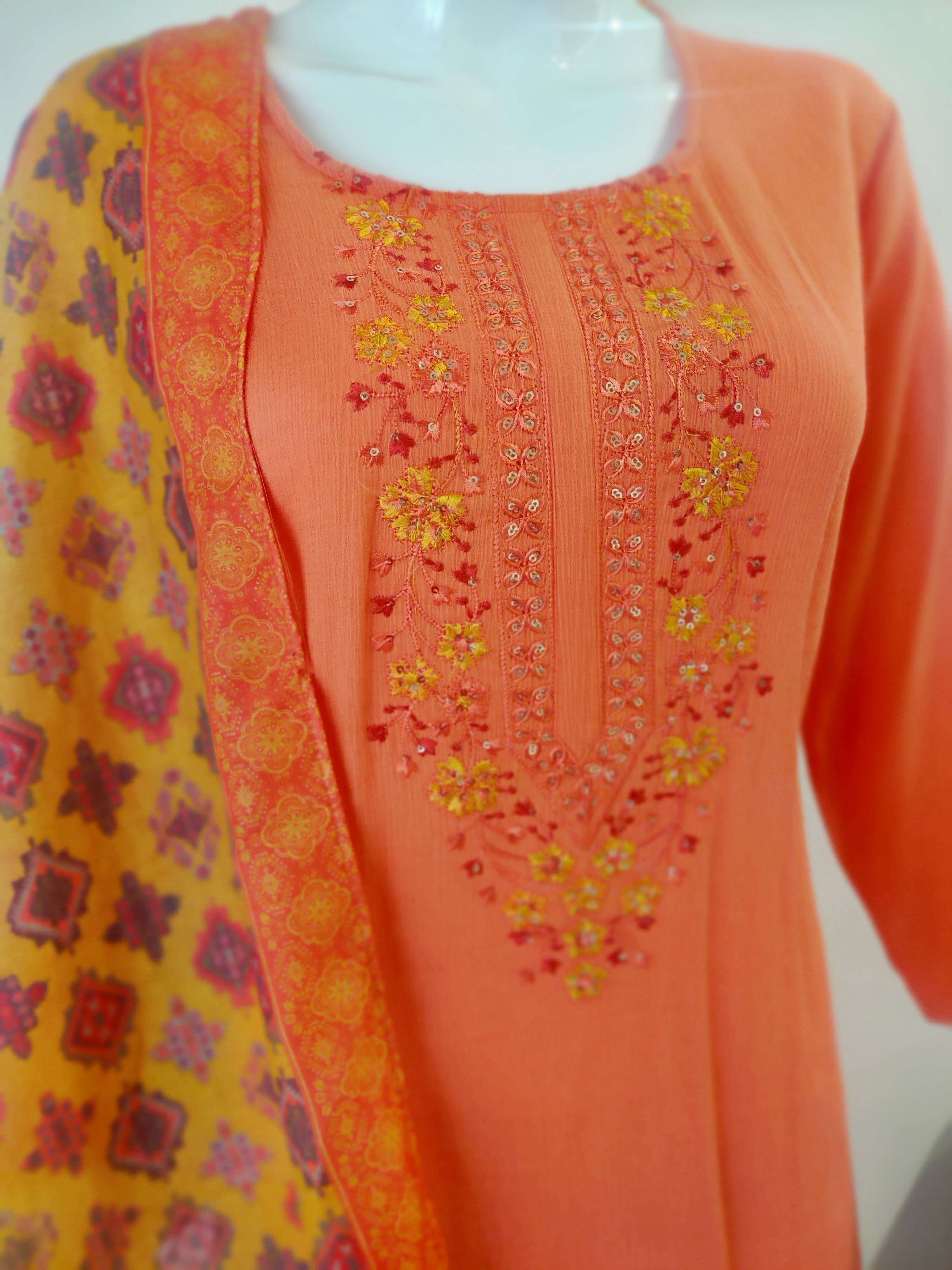 PREMIUM COTTON KURTI WITH EMBROIDERY AND DIGITAL PRINT DUPATTA WITH PANTS. setwise - sizes - L, XL, XXL RATE :RS 835 + 5% gst |