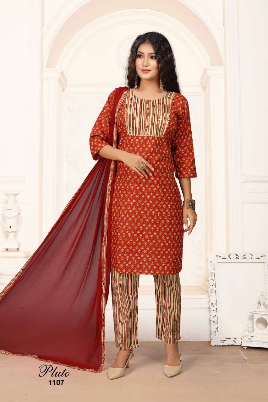 premnath pluto vol 6 cotton top with pant and dupatta set