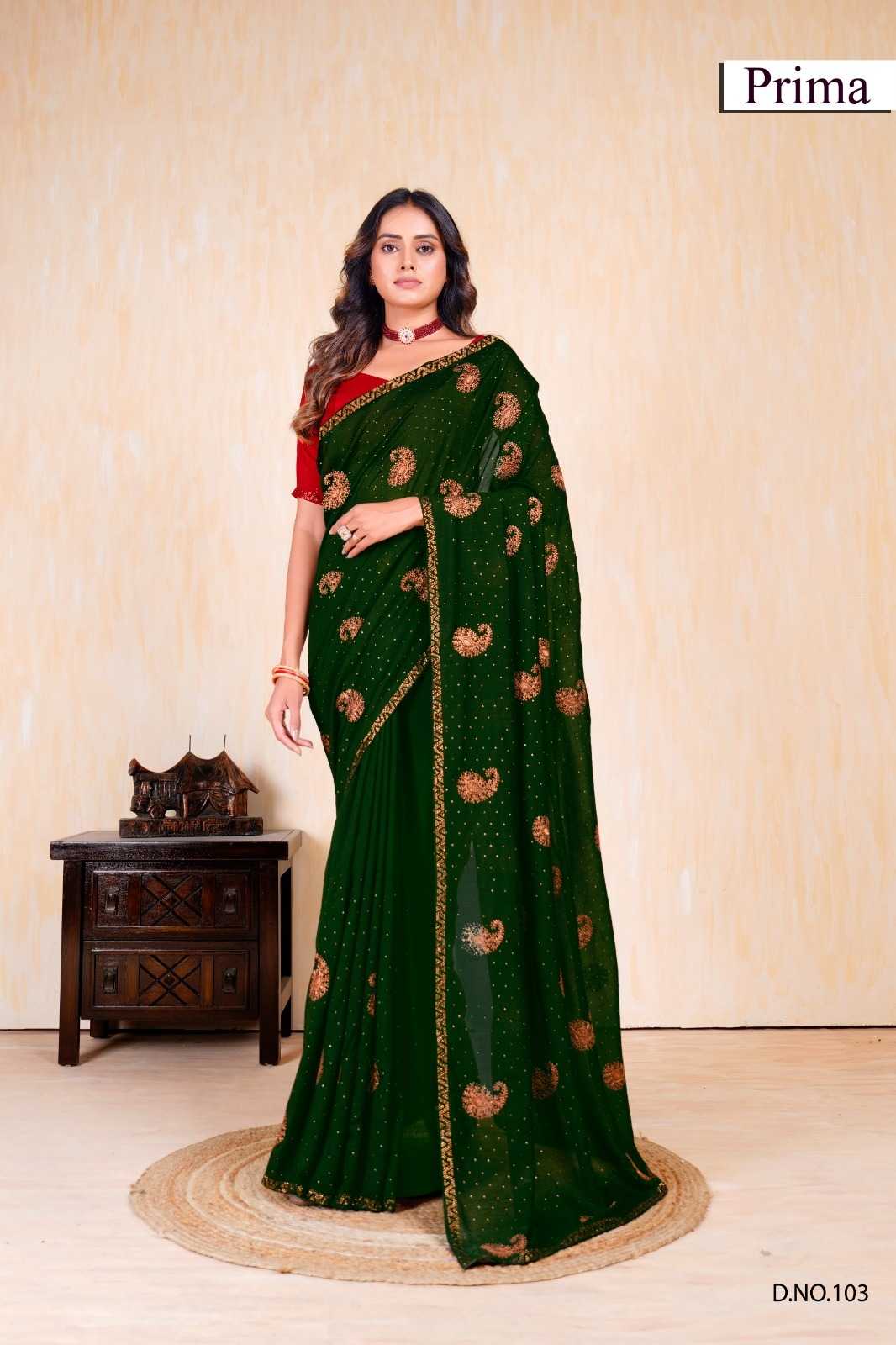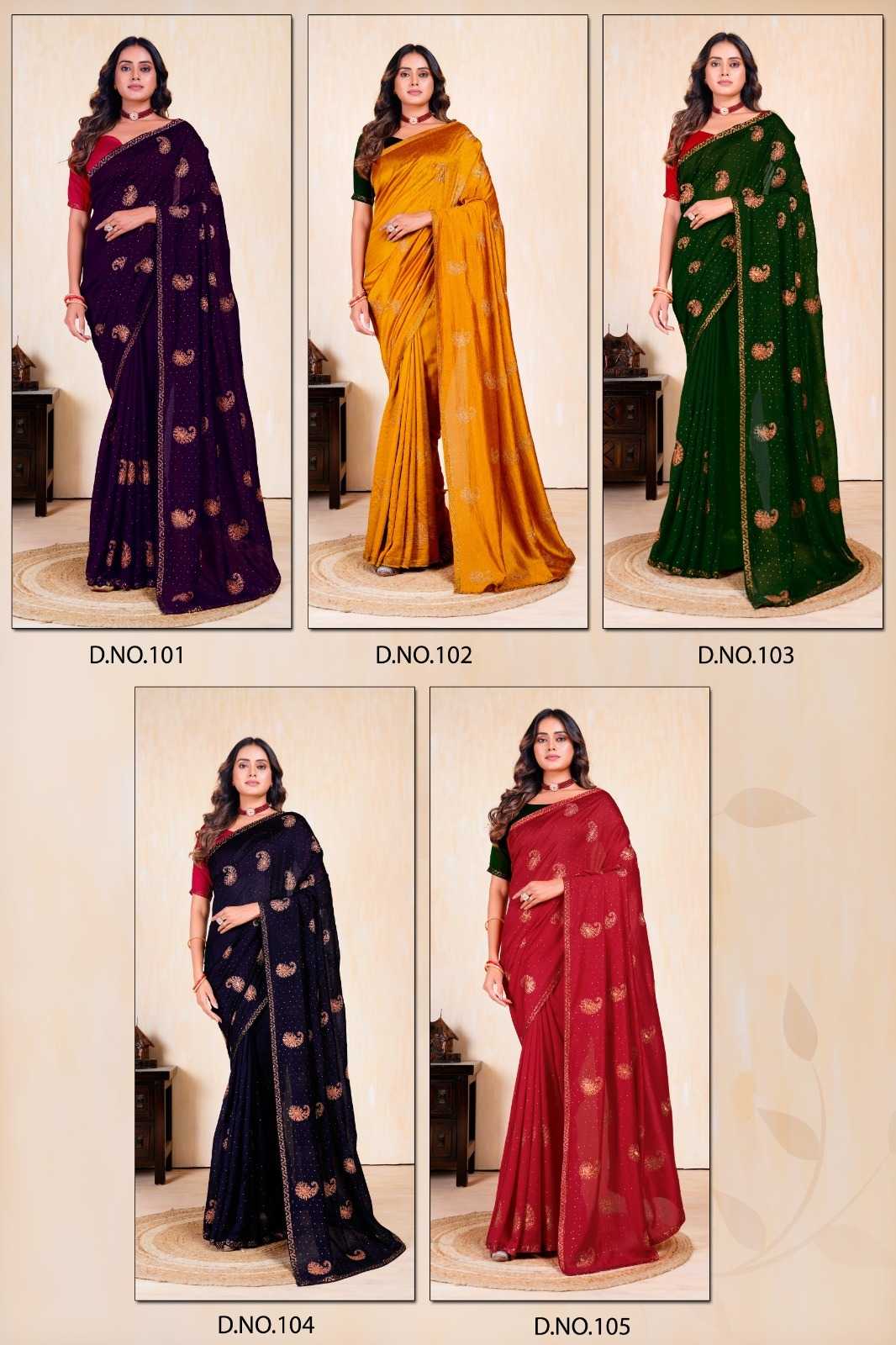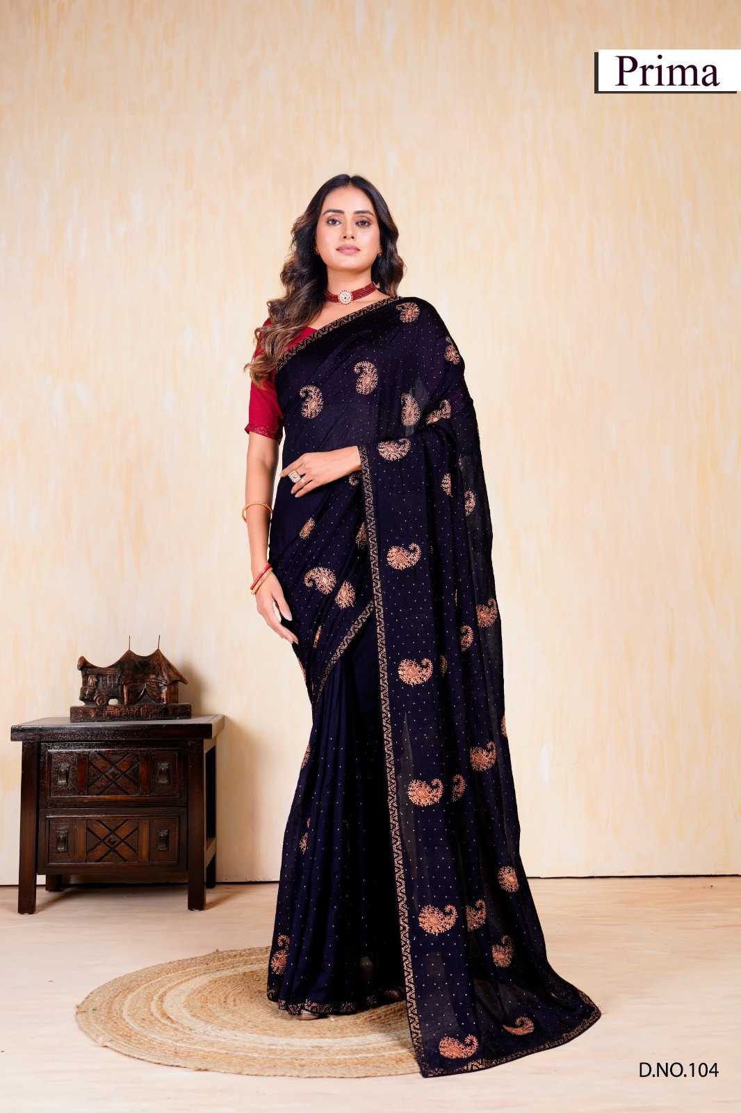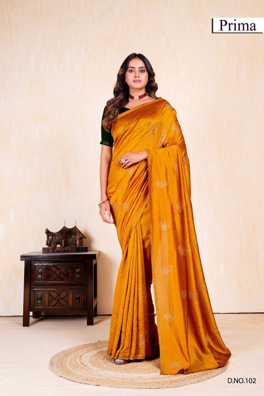prima 101-105 fancy vichitra exclusive design party wear saree exports