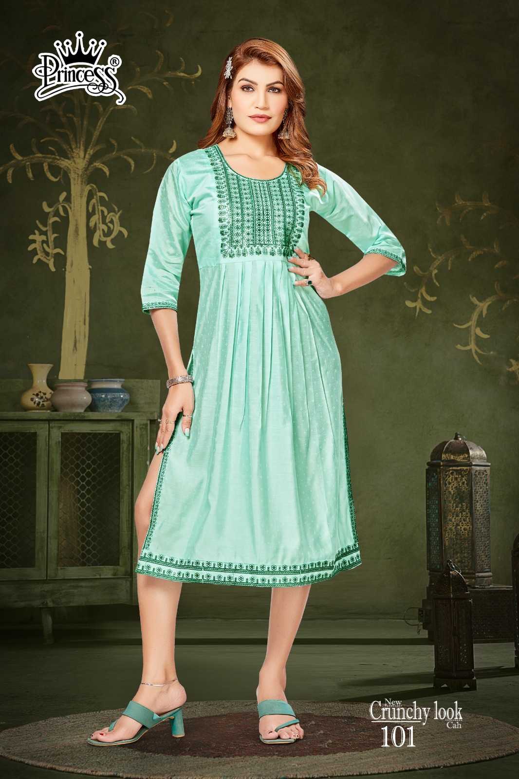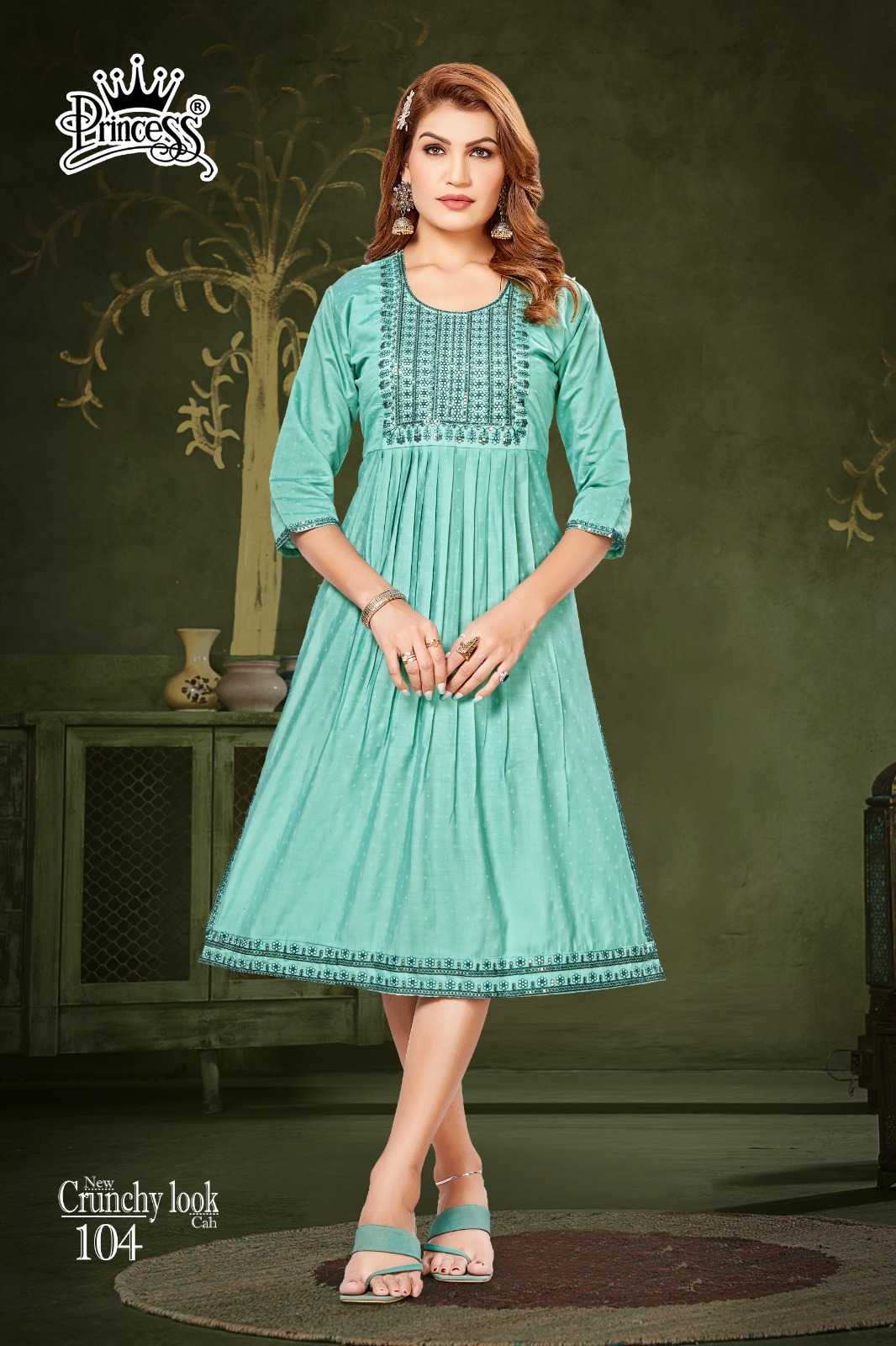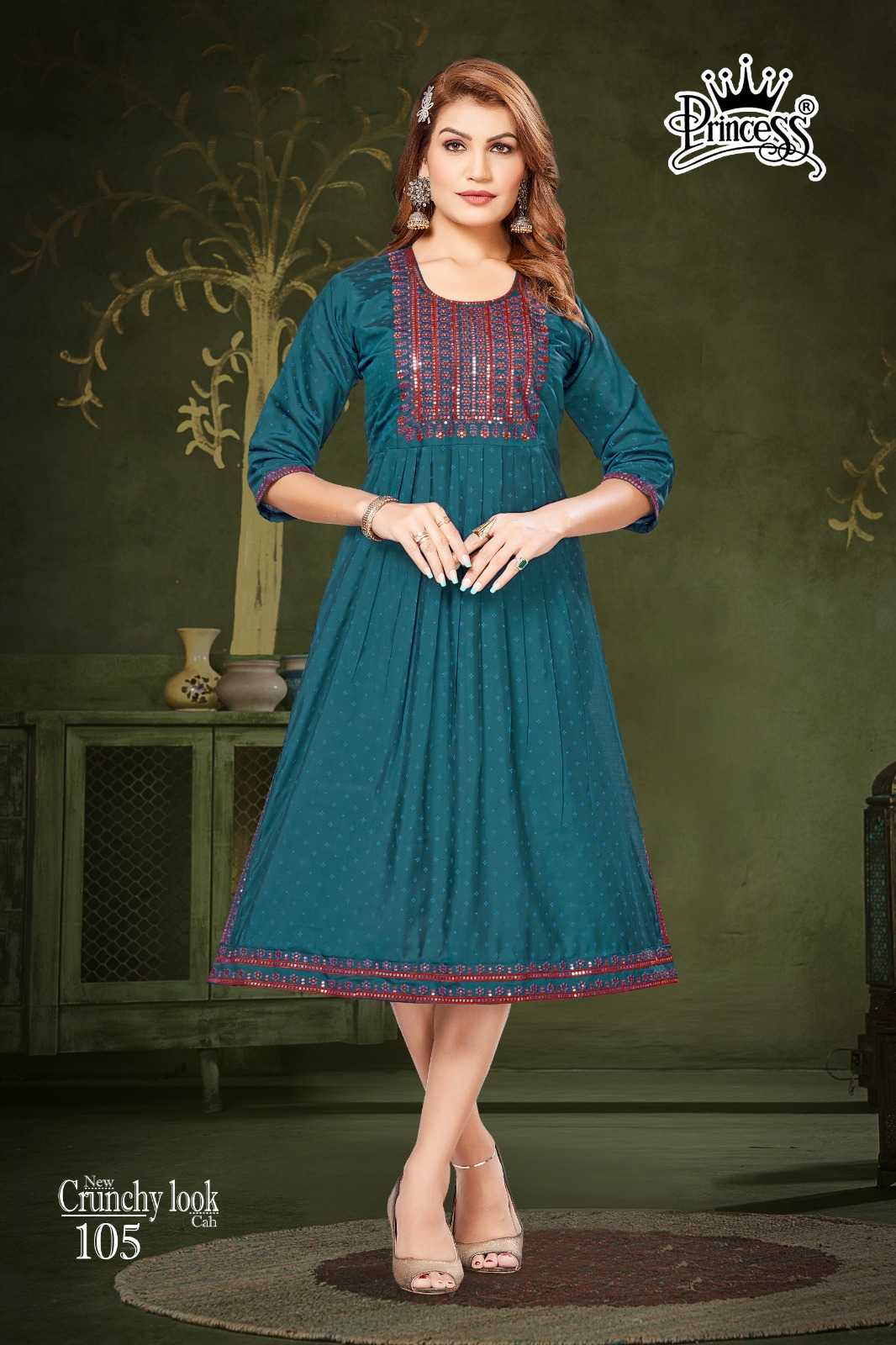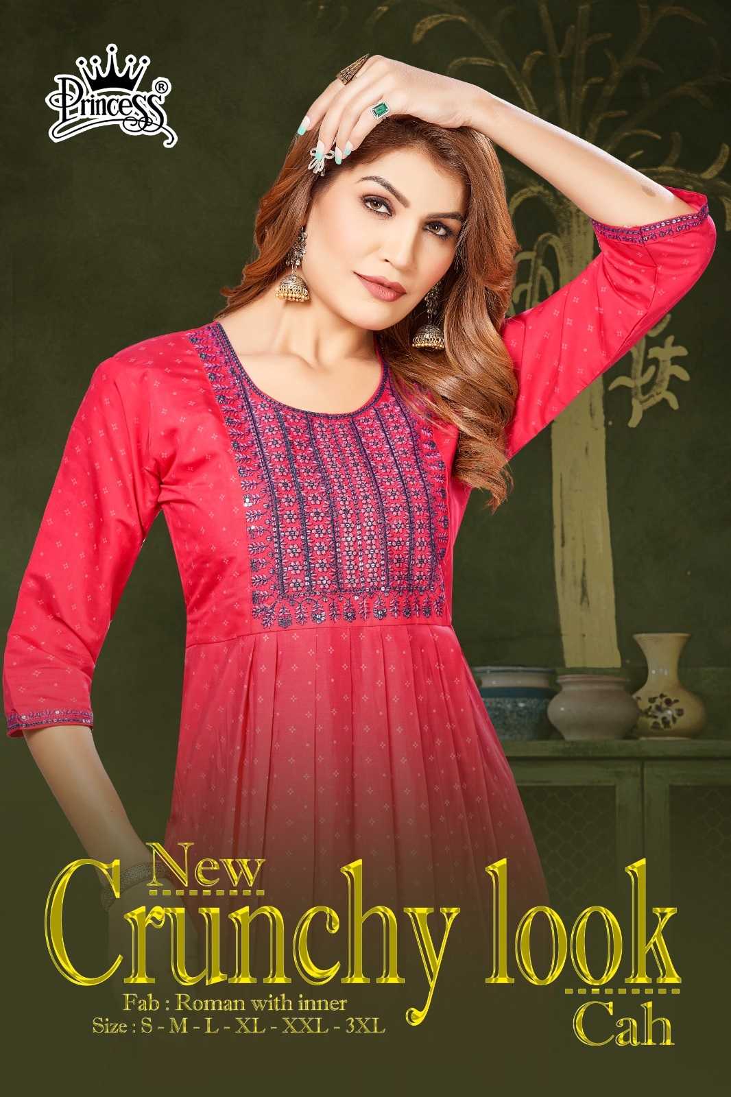princess new crunchy look cah roman silk fancy full stitch long kurtis