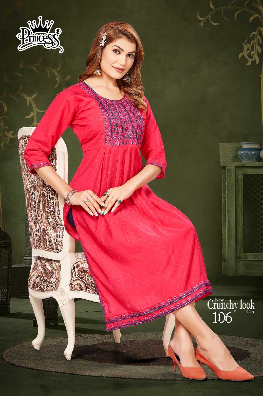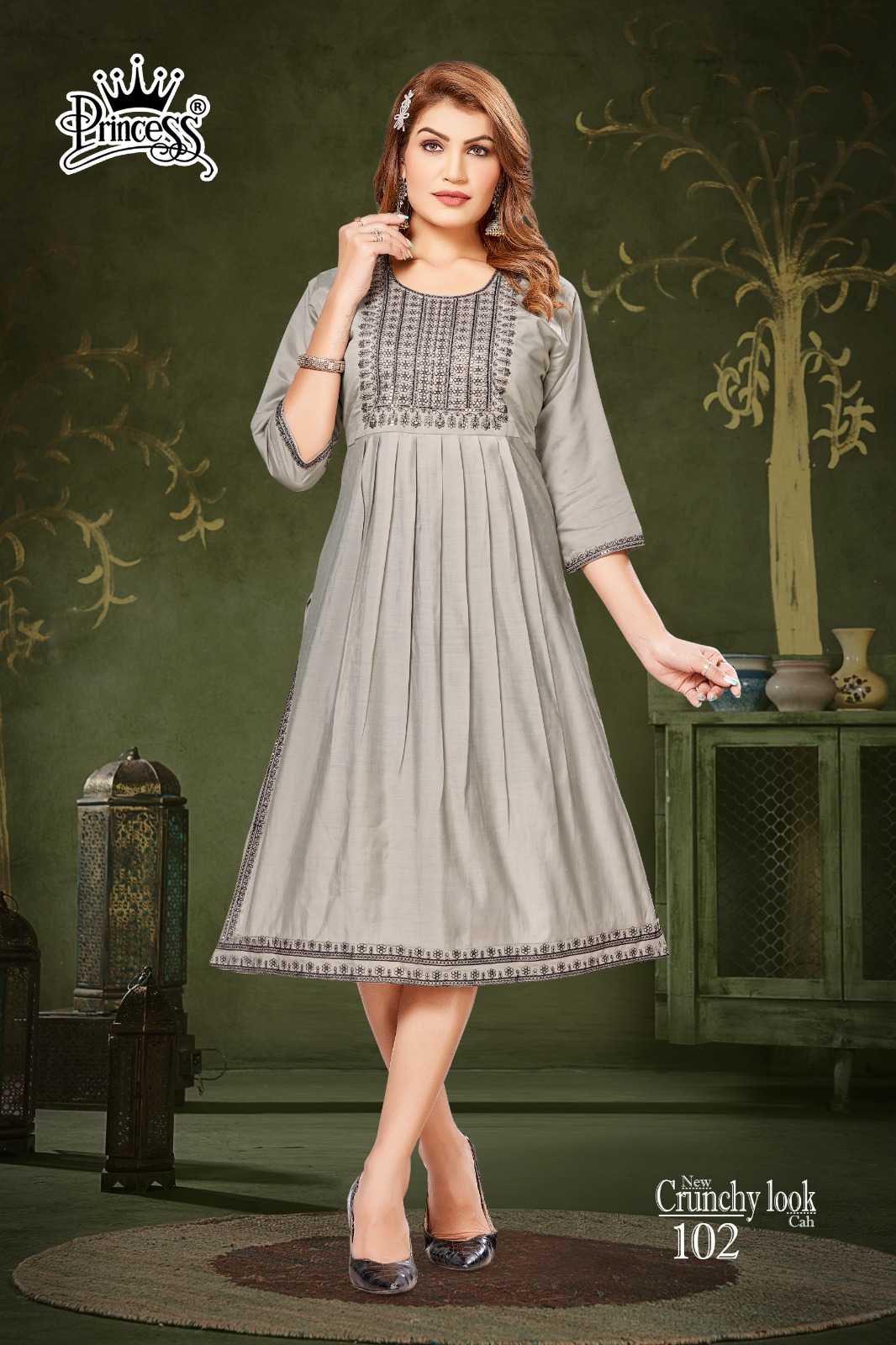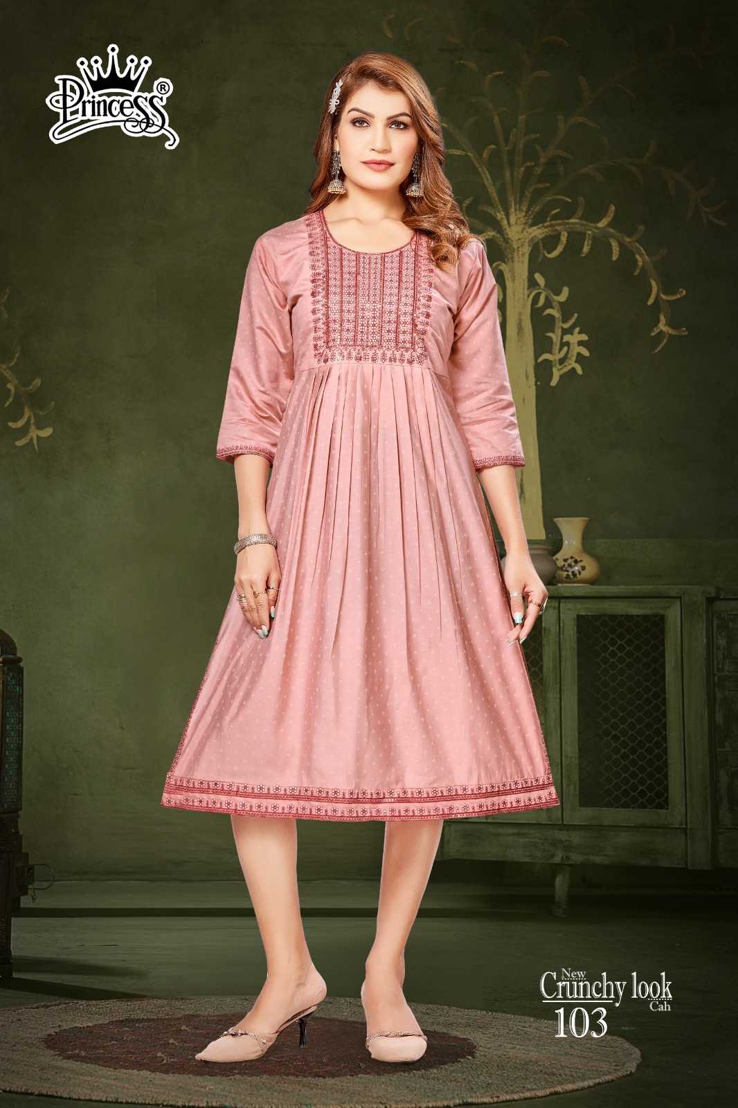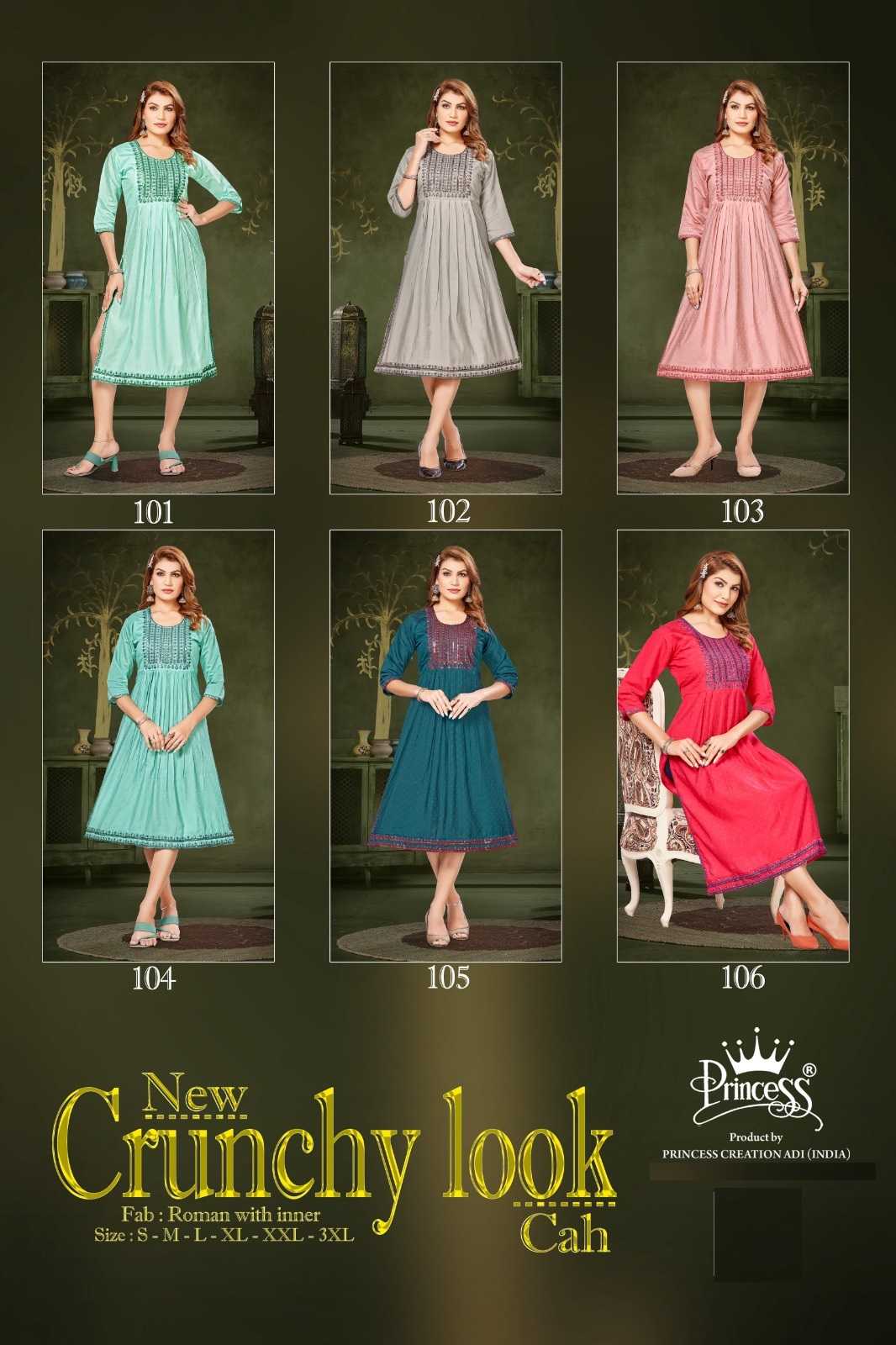 princess new crunchy look cah roman silk fancy full stitch long kurtis