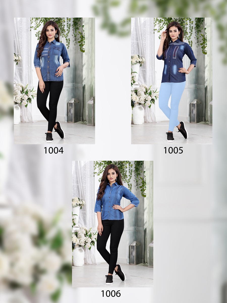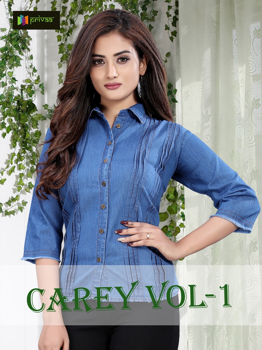 PRIVAA CAREY VOL 1 Launching denime shirts winters special Fabric :- denime cotton Shirt details: hand work and applica designs Shirt hight : 26 up sleeve : 7 to 16 Designe : 6 Colours : 6 Shirt size : m (38) L (40) XL (42) PRICE : 399 + gst |