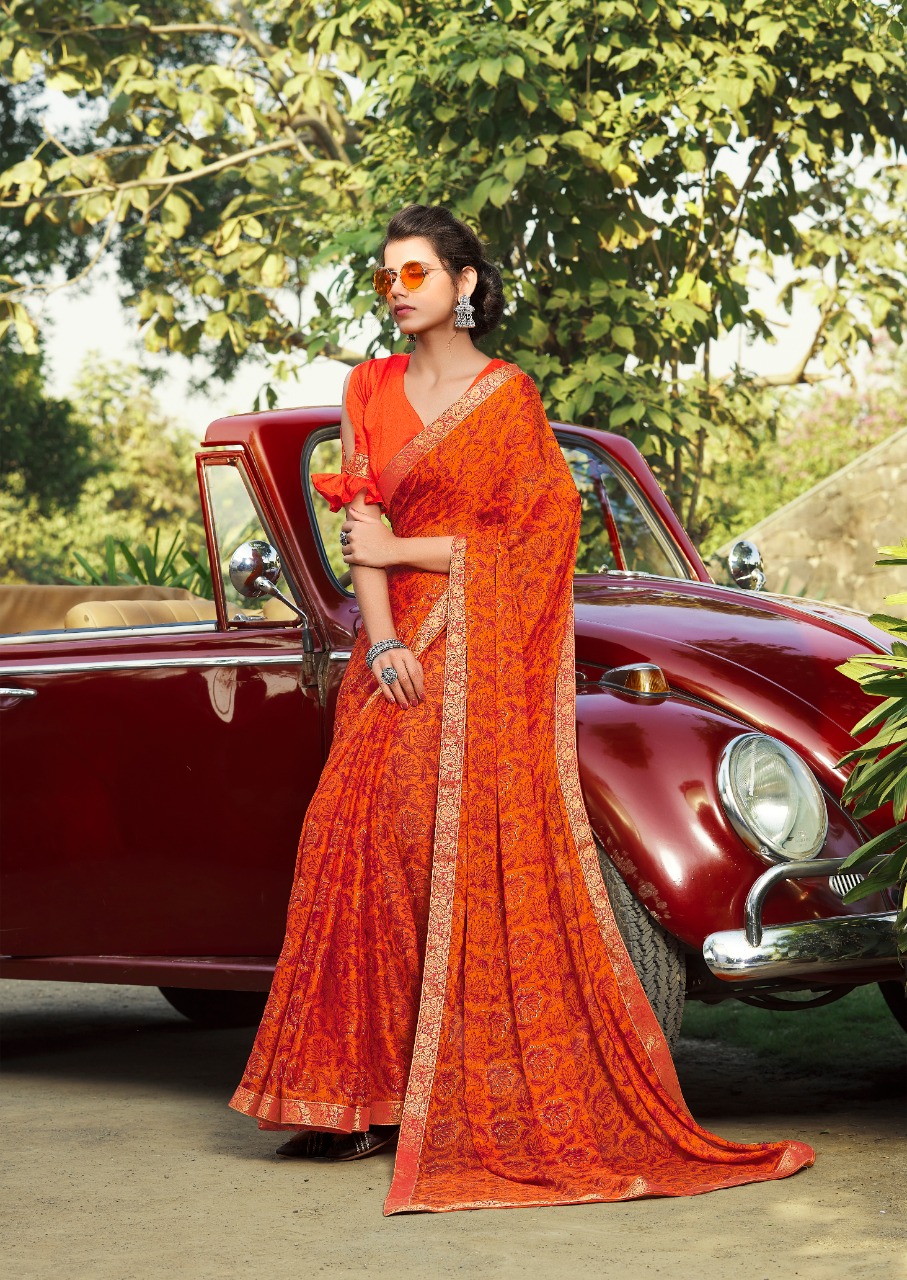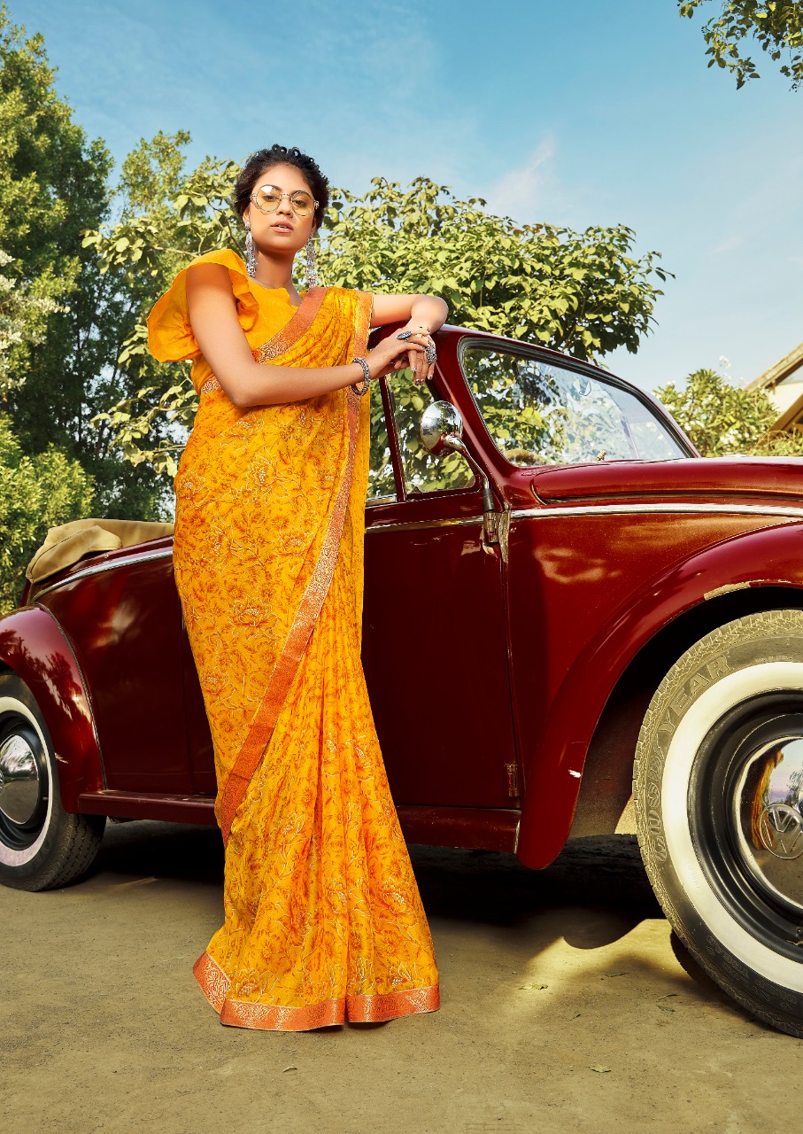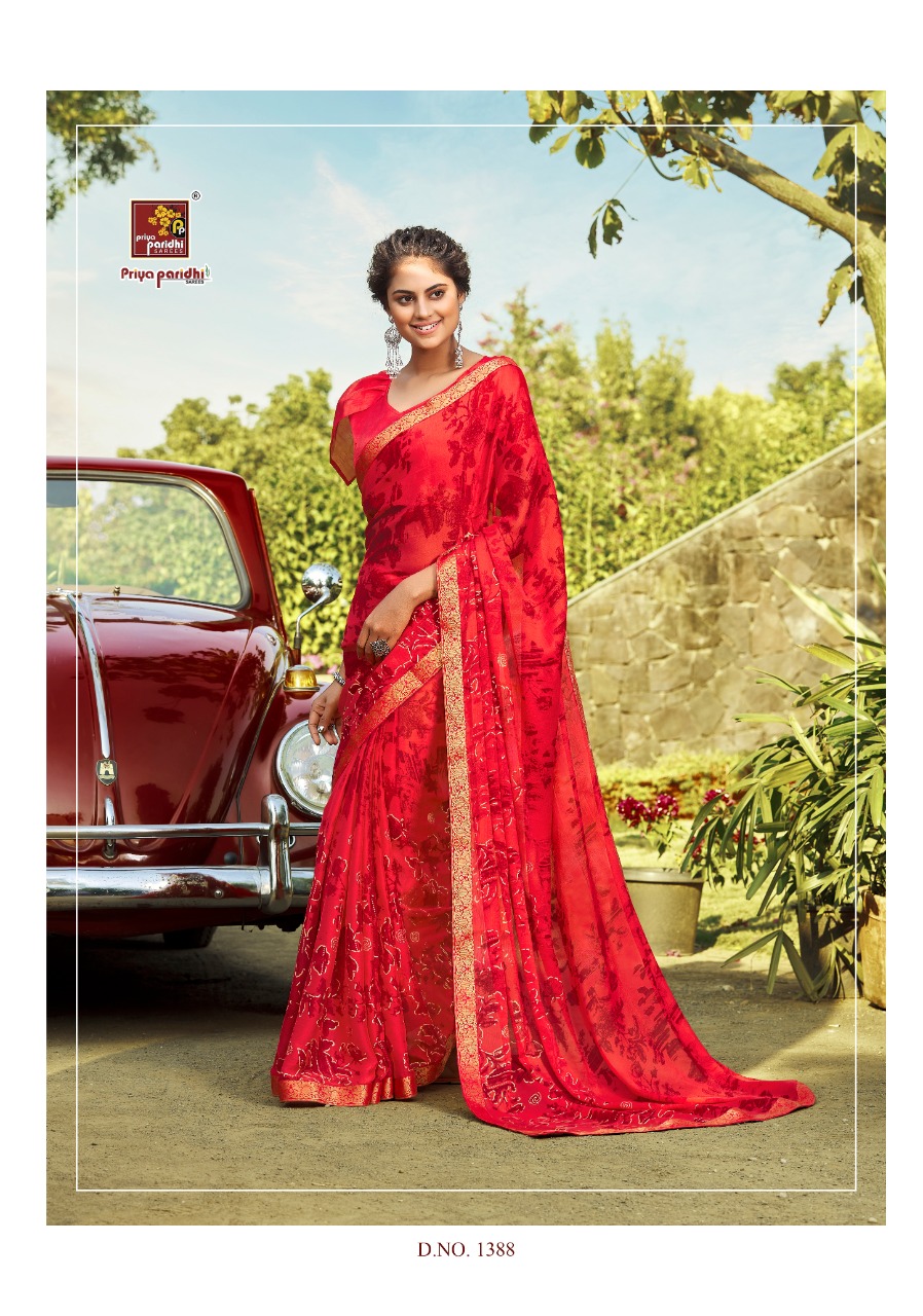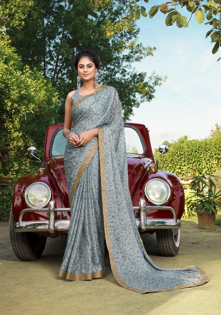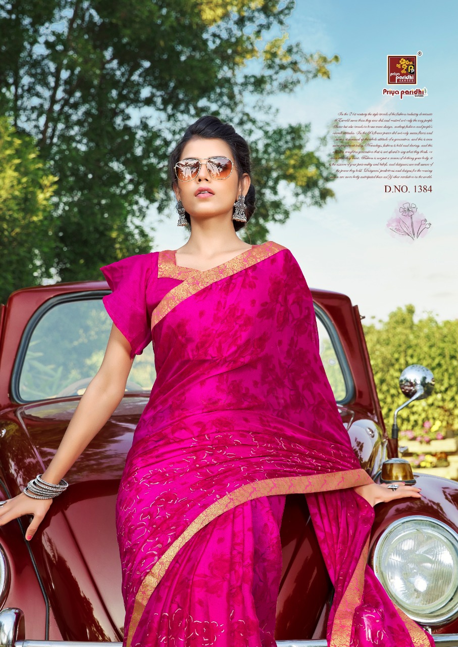 Priya Paridhi Avishka Printed Moss Casual Wear Saree Exporter In India