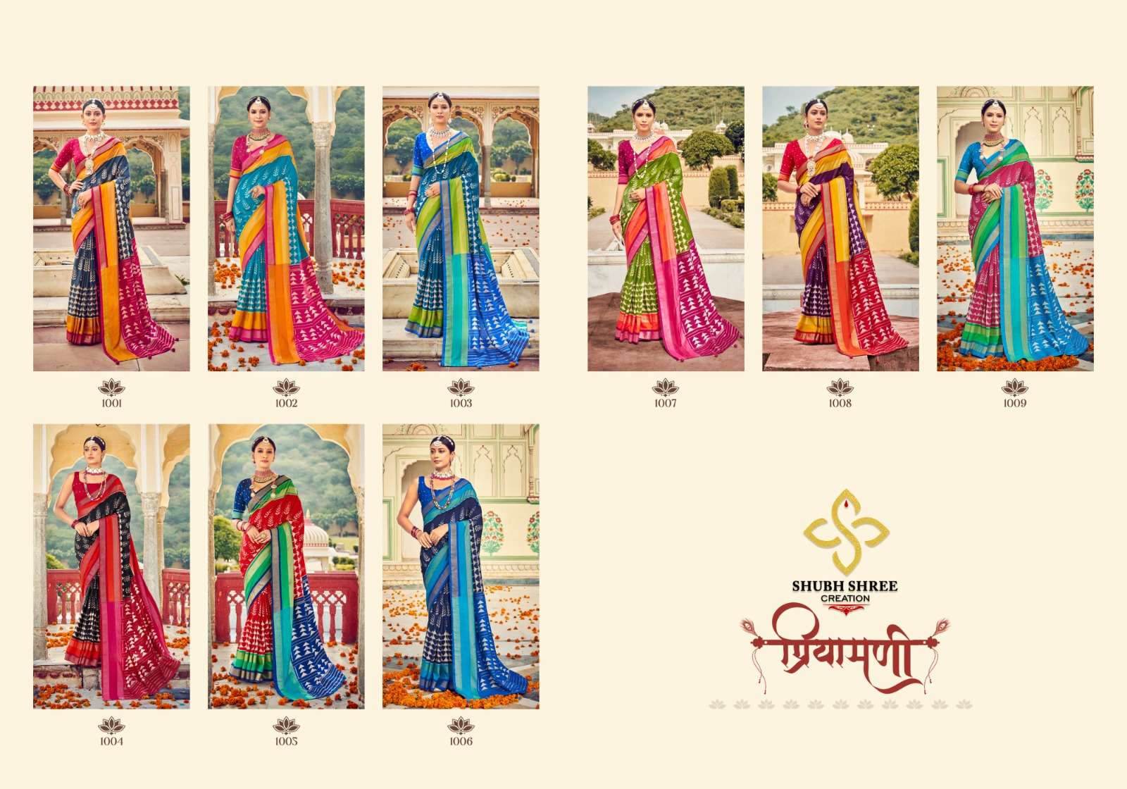 priyamani 1001-1009 by shubh shree creation velvet silk sarees supplier