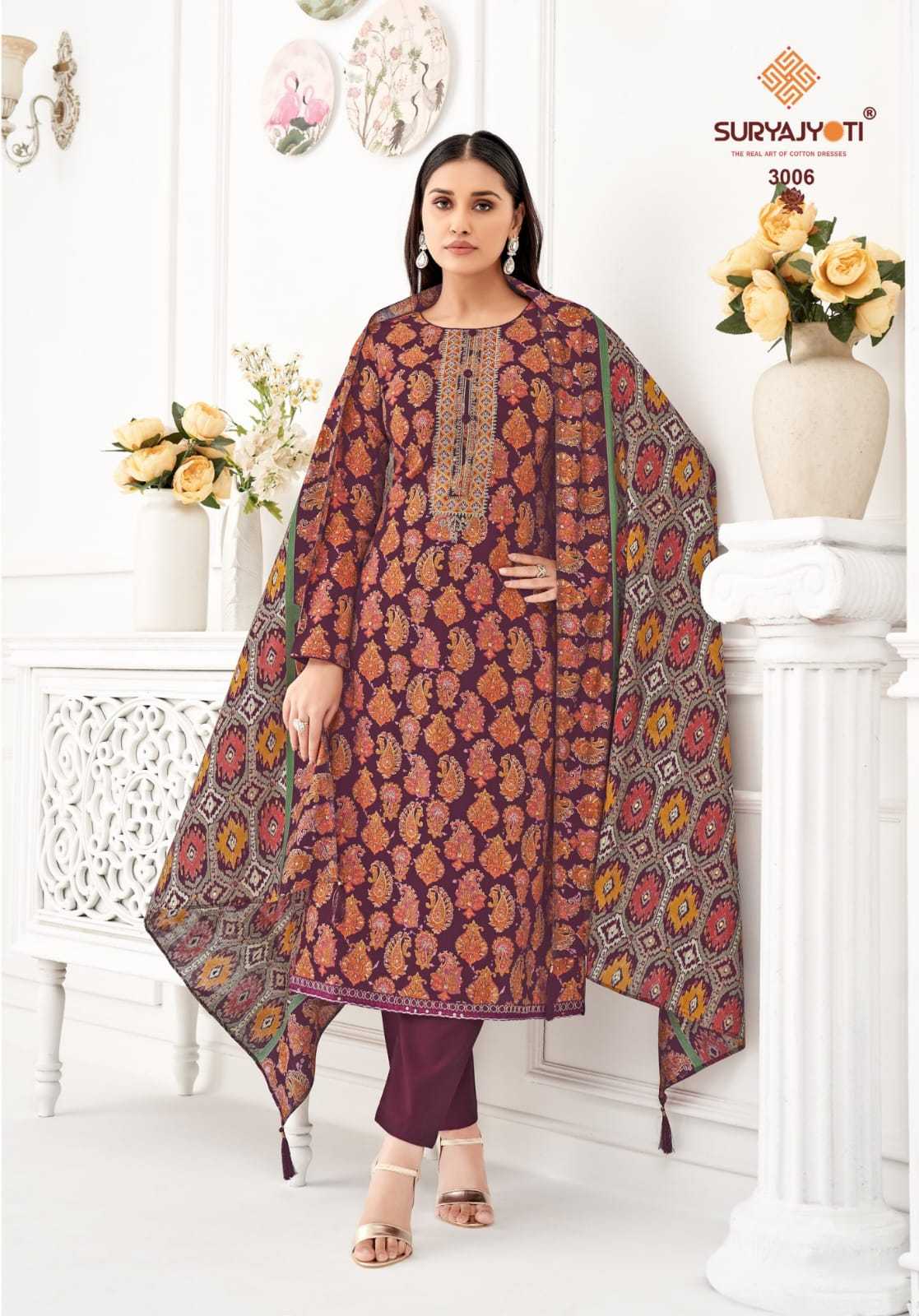 priyanka vol 3 by suryajyoti neck embroidery print readymade suits