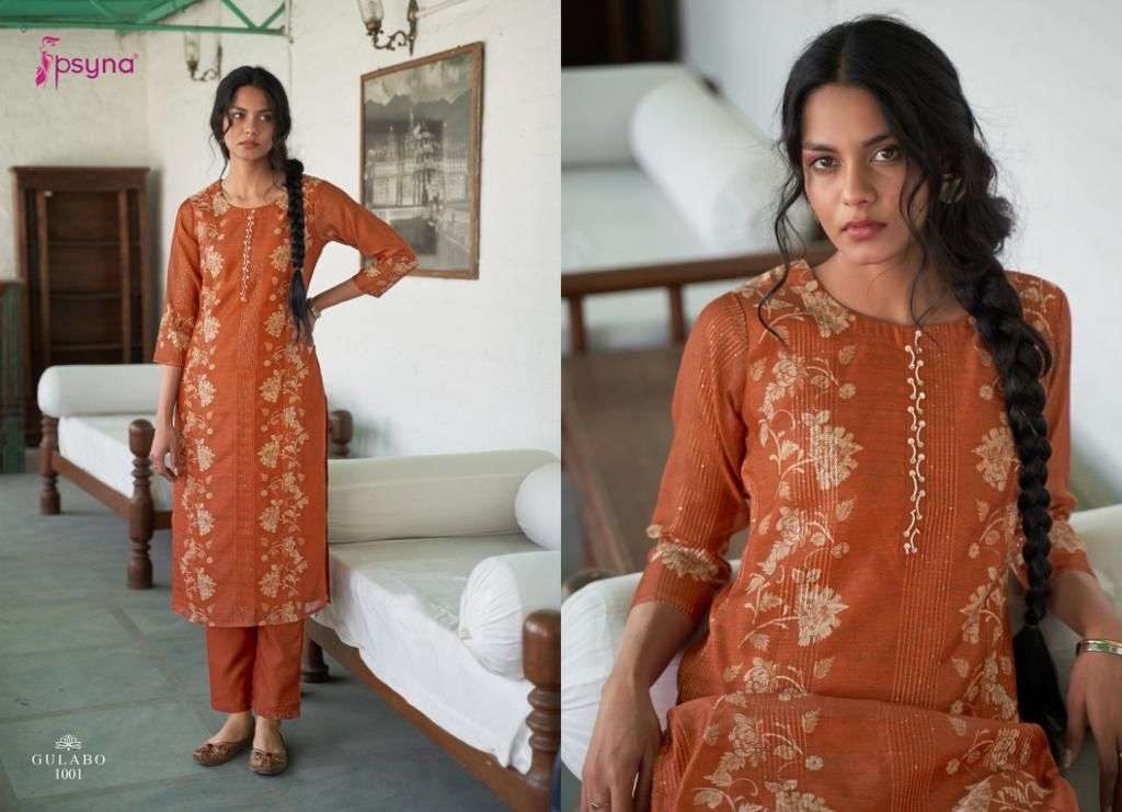 psyna gulabo batik style prints readymade set of top with pants and dupatta