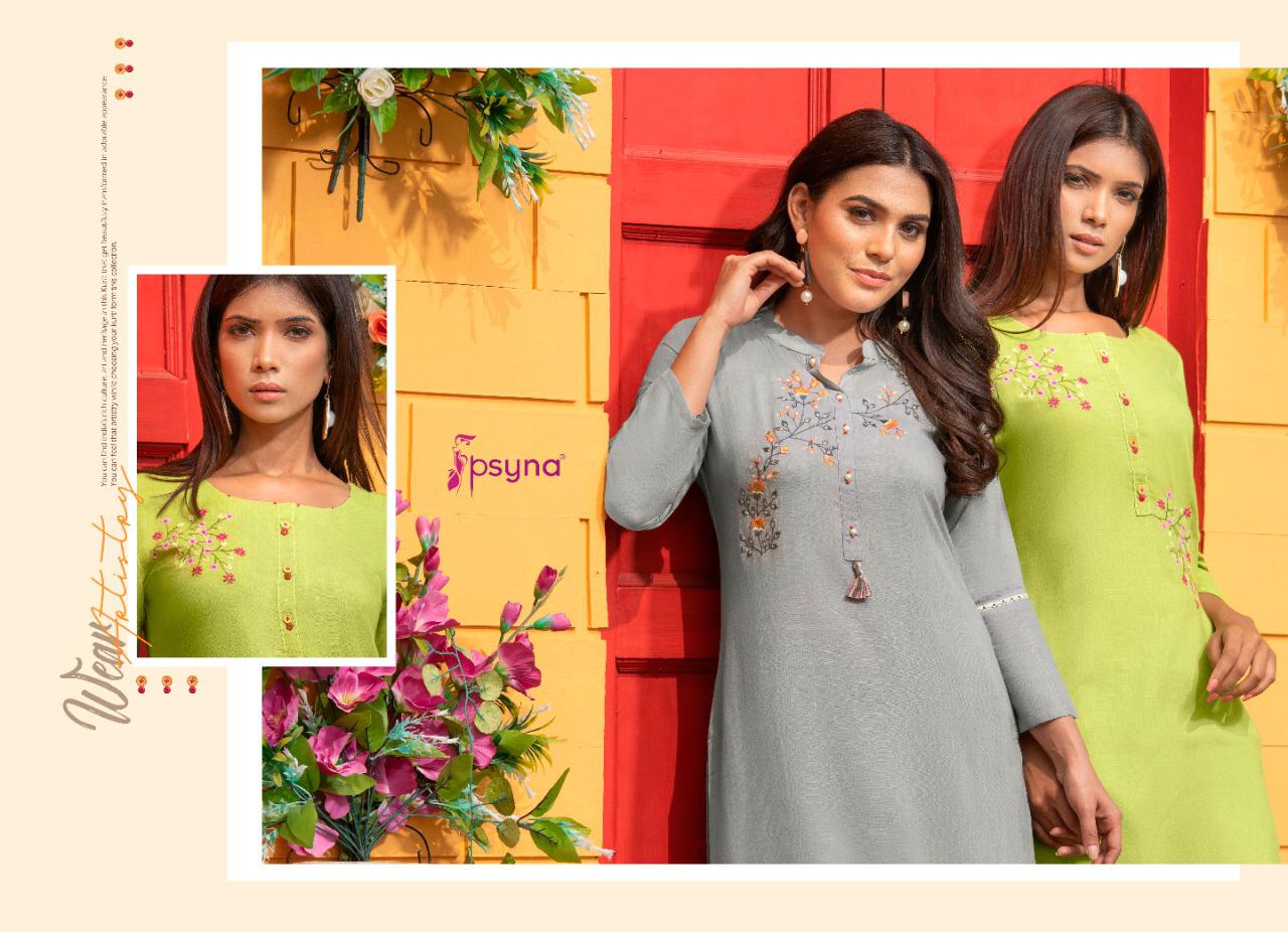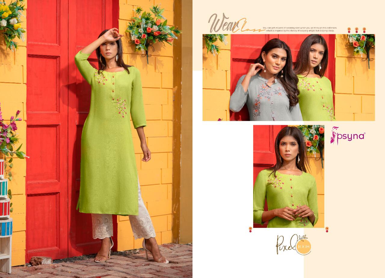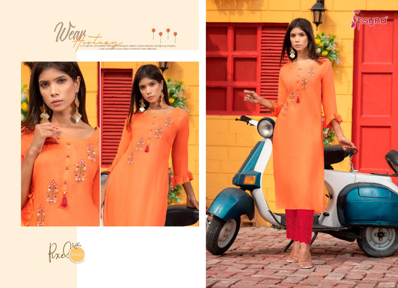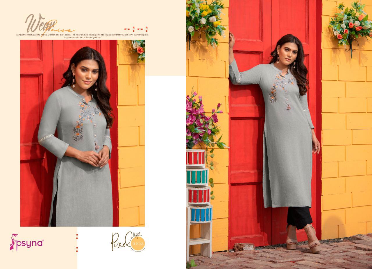 Psyna Pixel Rayon Slub Embroidery Kurtis With Handwork Fancy Collection