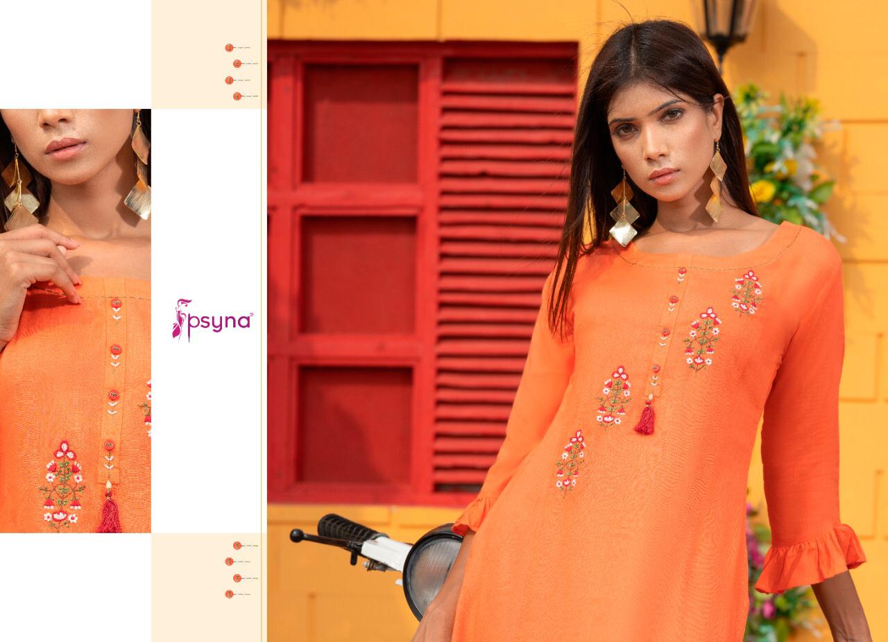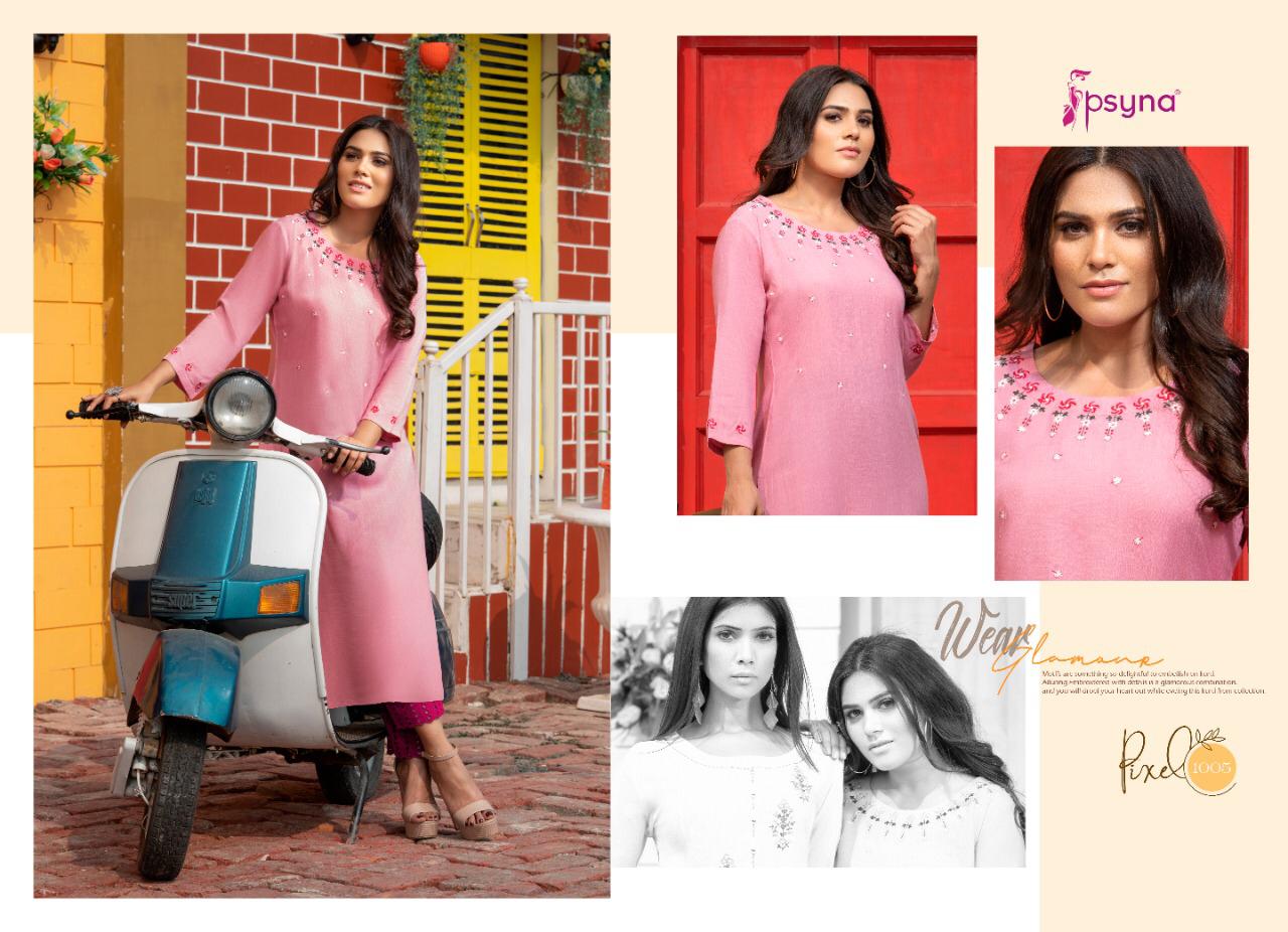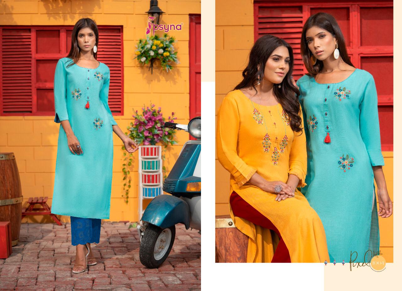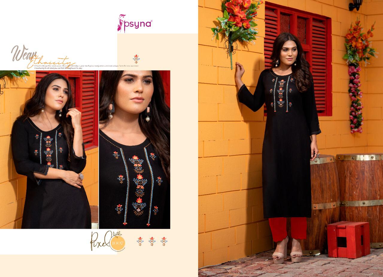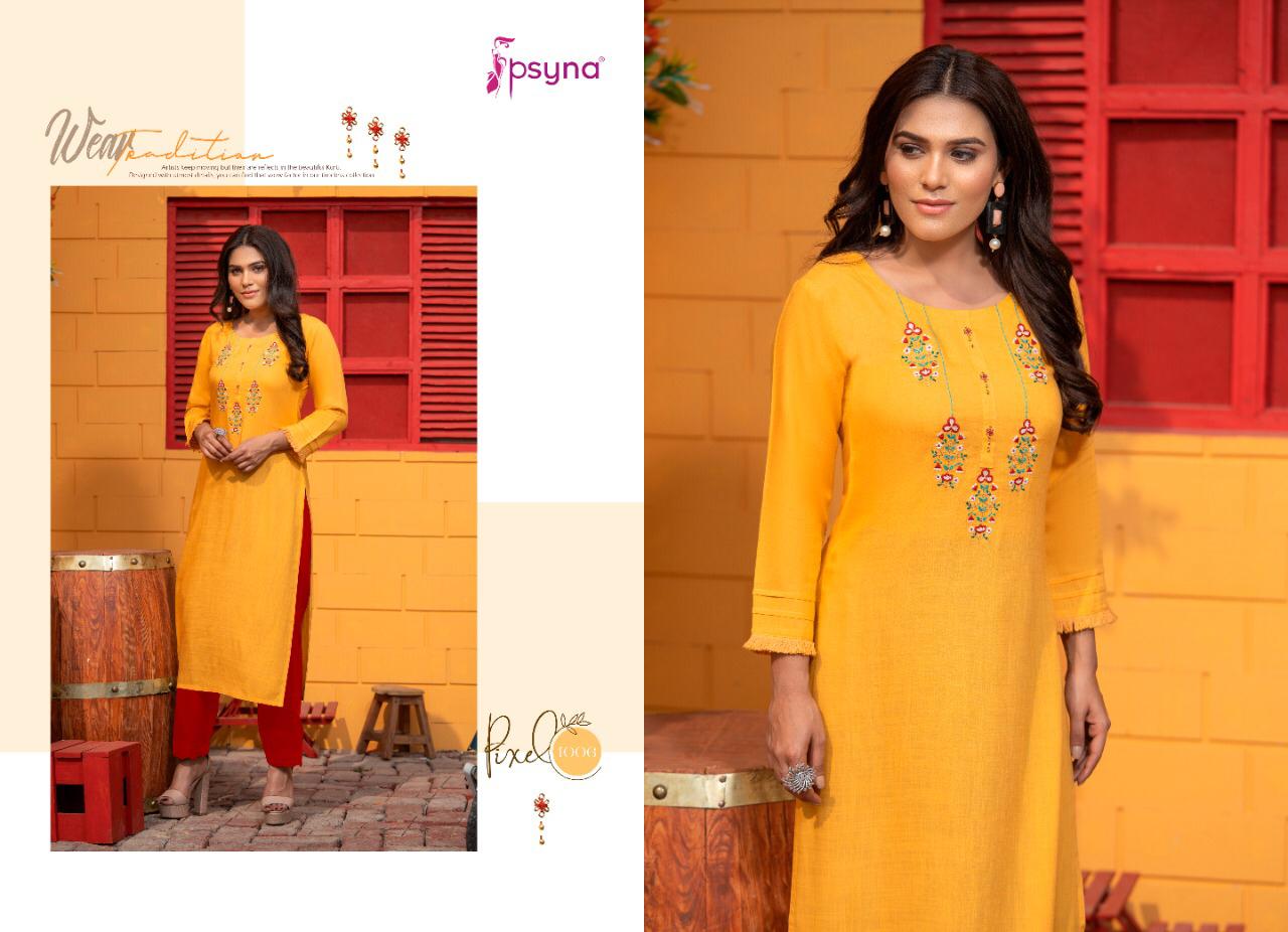 Psyna Pixel Rayon Slub Embroidery Kurtis With Handwork Fancy Collection