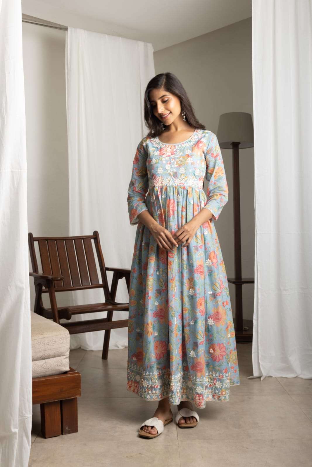 psyna present zoya designer chikankari work long gown combo set