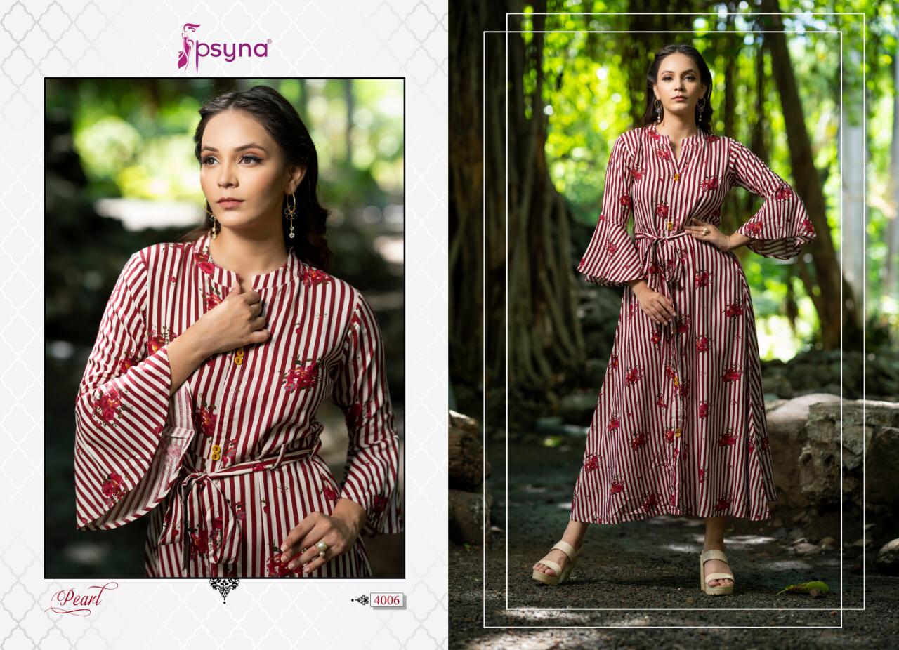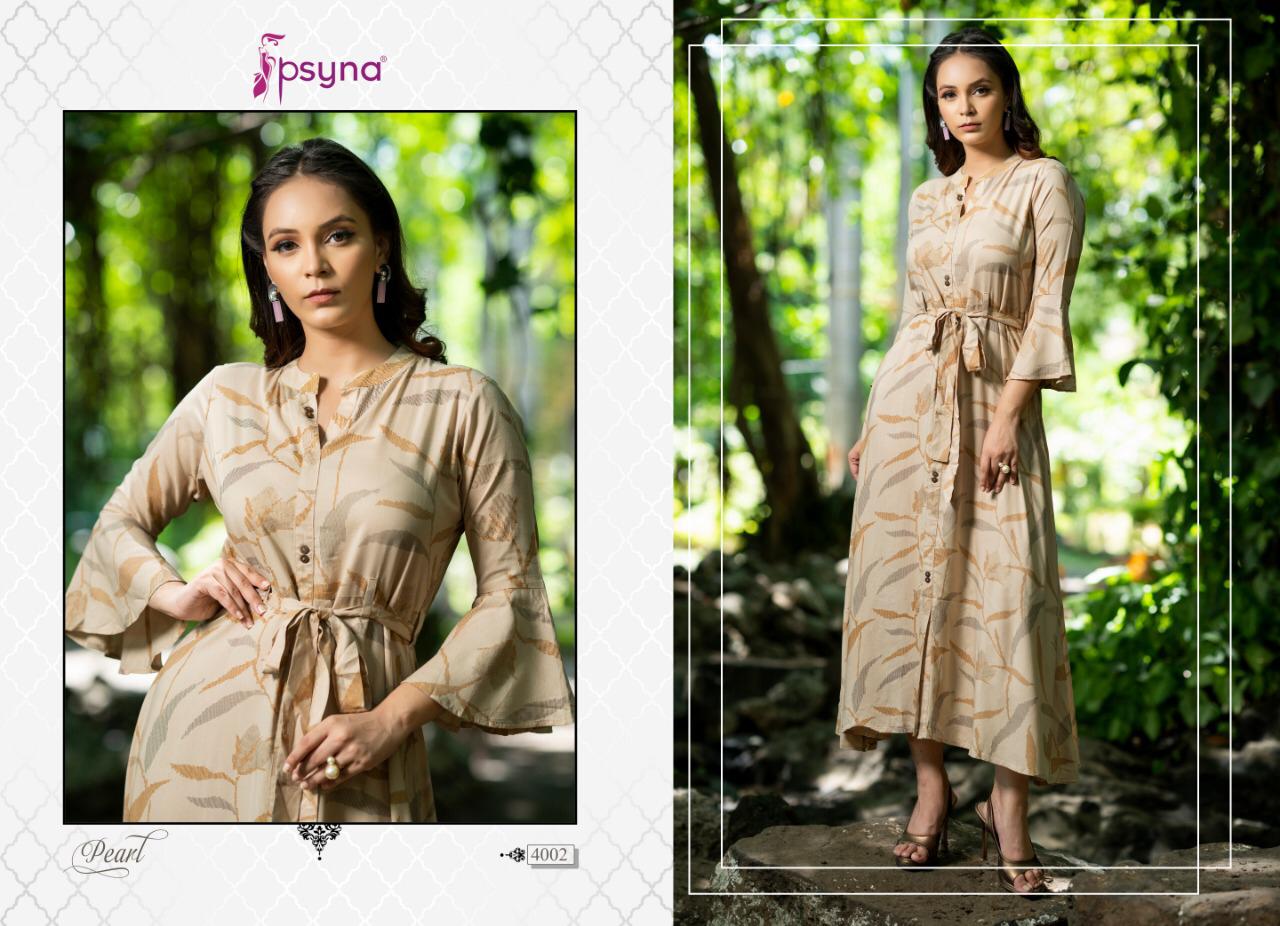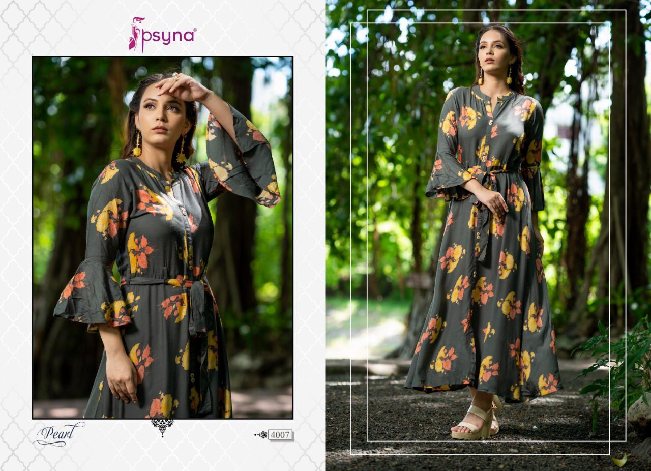 Psyna Presents Pearl Vol 4 Ankel Length Printed Gown Kurtis Collection