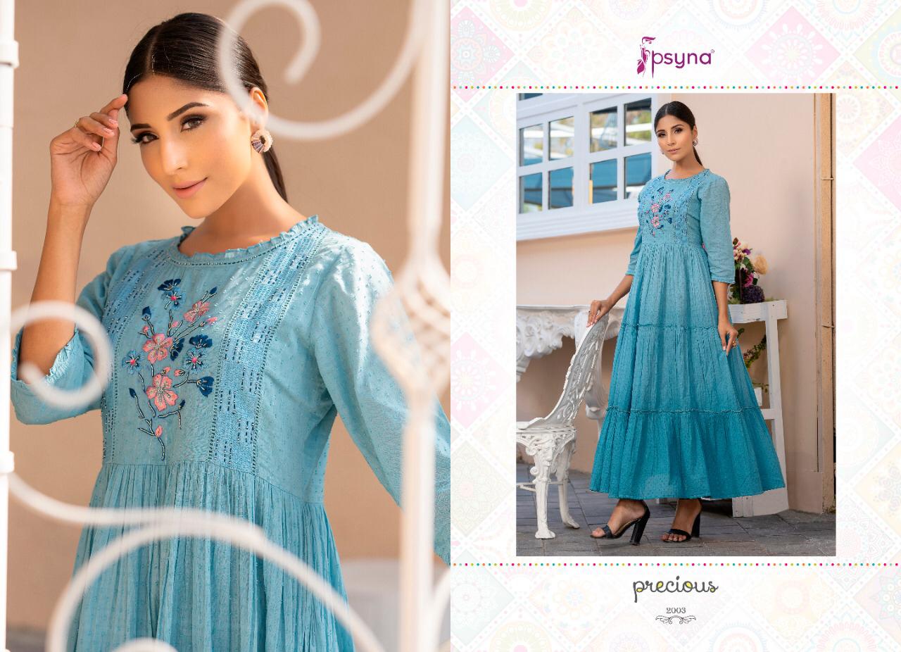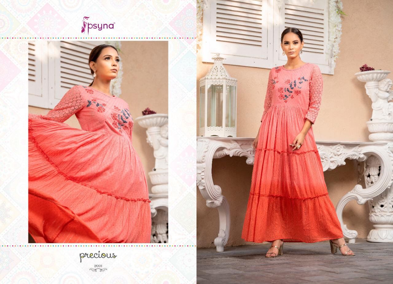 Psyna Presents Precious Vol 2 Bright Colour Shading Cotton Crush Long Gown Kurti