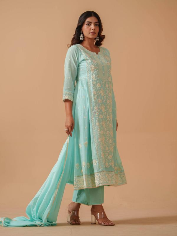 AVAILABILITY: On Booking COTTON ANARKALI CHIKANKARI SUITS