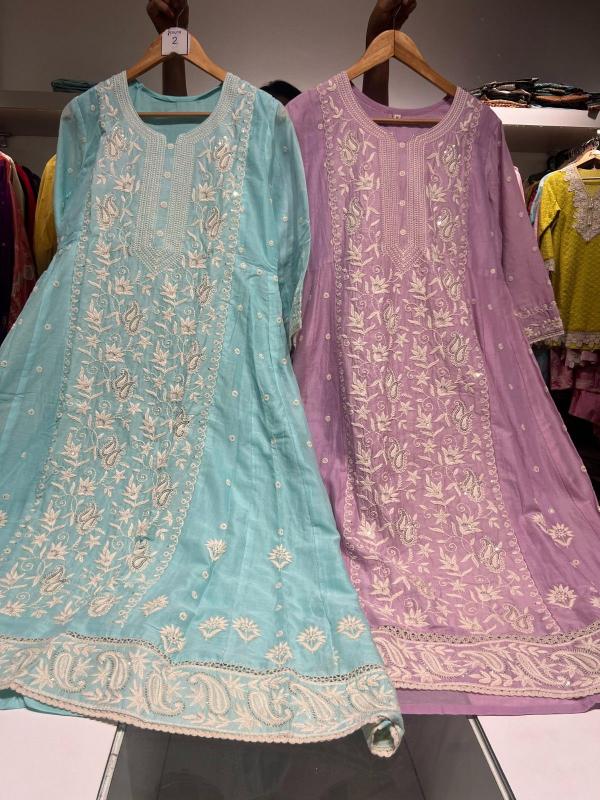 BOOK CATALOGUE COTTON ANARKALI CHIKANKARI SUITS ON KRISHNA CREATION. CALL ON +91-8866778727.