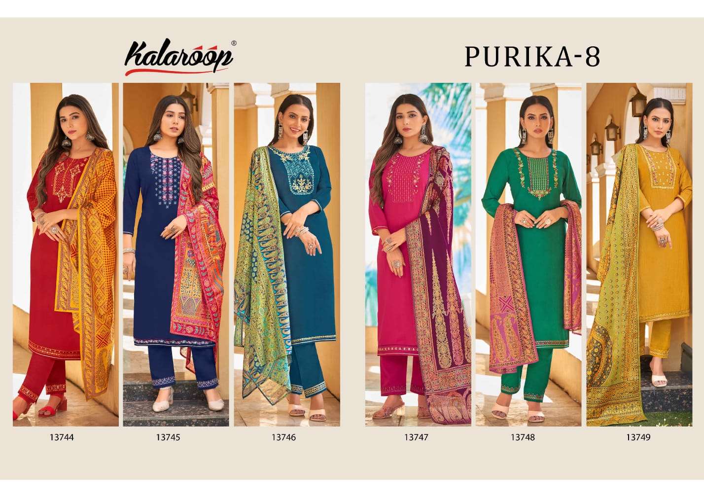 purika vol 8 by kalaroop readymade embridered kurti with pant and fancy print dupatta