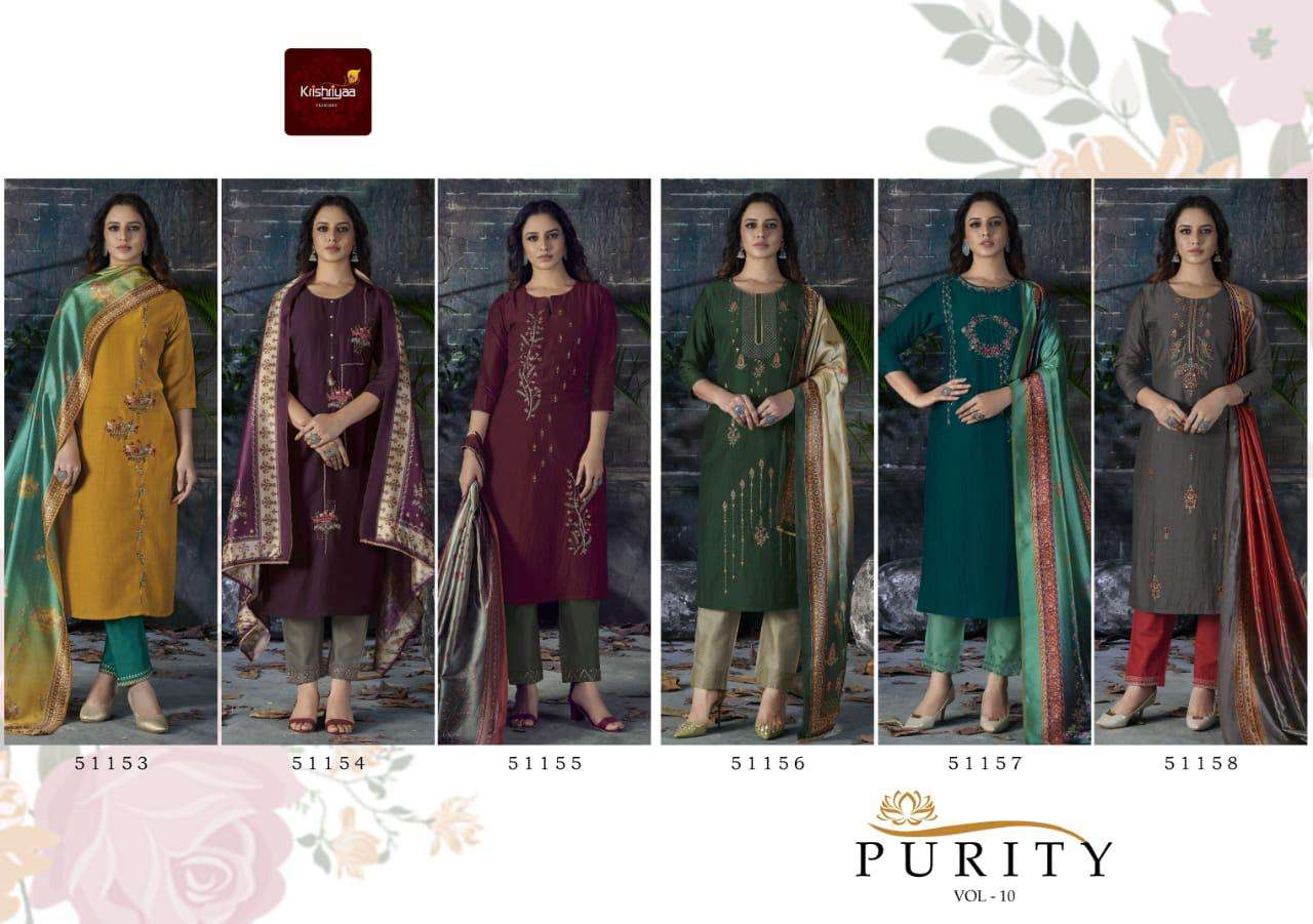 Purity Vol 10 Chinon Silk Fancy Kurti Pant With Dupatta By Krishriyaa