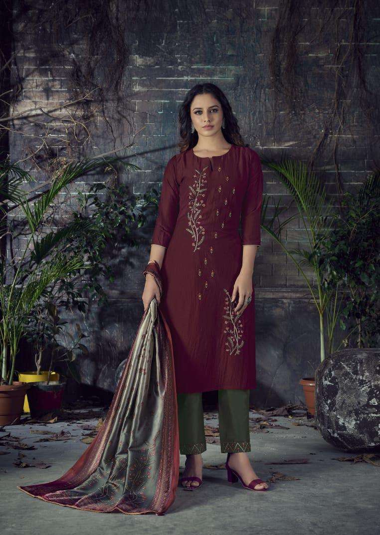 Krishriyaa ⢠brings to you exclusive party wear ensembles Purity Vol 10 A collection of Silk Kurtis and Pants enriched with Intricate Embroidery and  Handwork paired with Digital Printed Dupattas Catalog: Purity Vol 10 Kurti Fabric: Chinon Silk Dobby Bottom Fabric: Cotton Silk Dupatta: Silk Digital Print Length: 46 Pcs: 6 Sizes: L, XL, XXL Price: 1075/- |