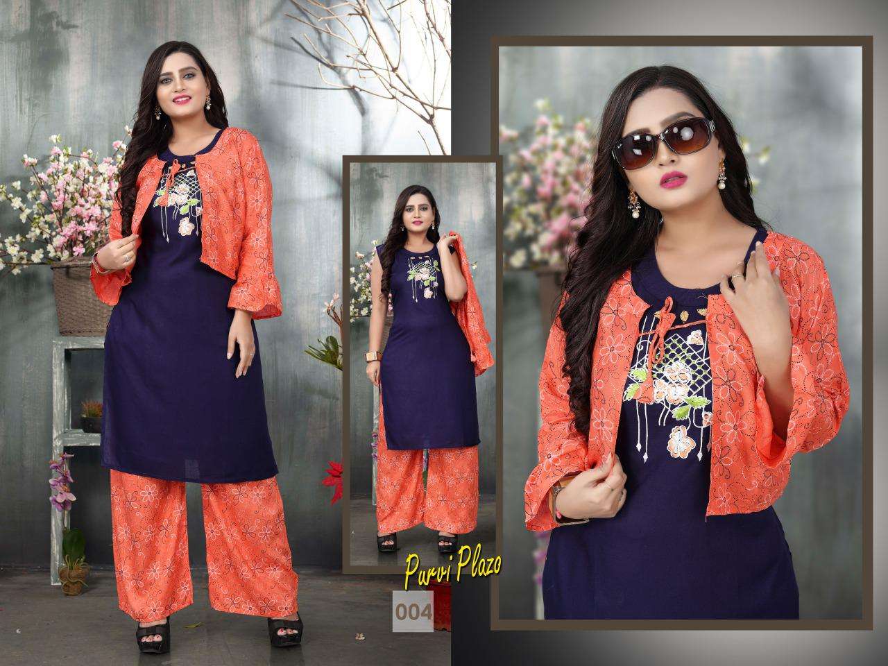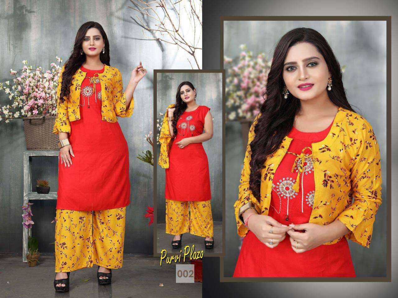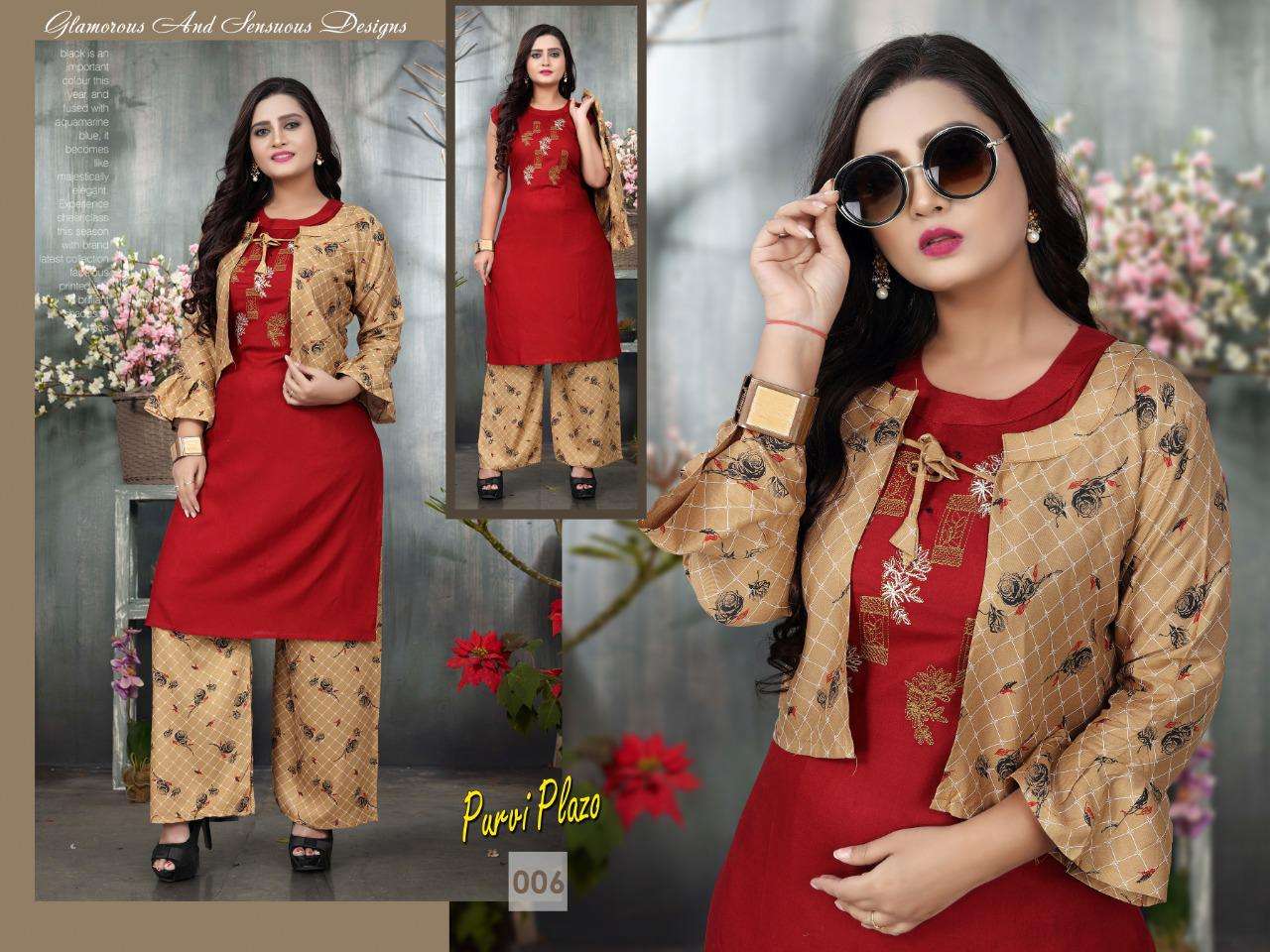 purvi plazo vol.2 by aagya heavy rayon top koti plazo Cataolog Collection Wholesaler Best Rate In Ahmedabad Surat Chennai India Uk Usa Malaysia Singapore Canada Australia