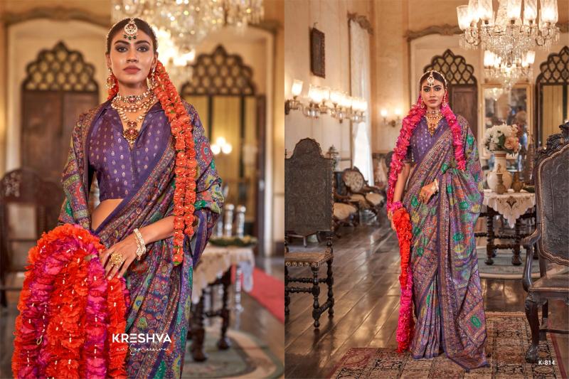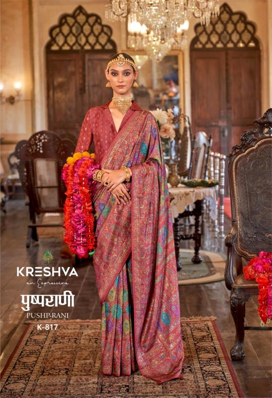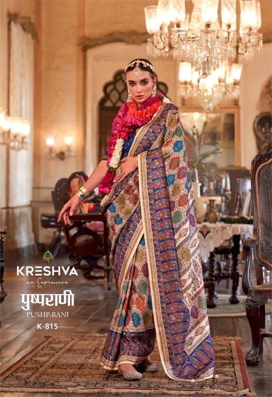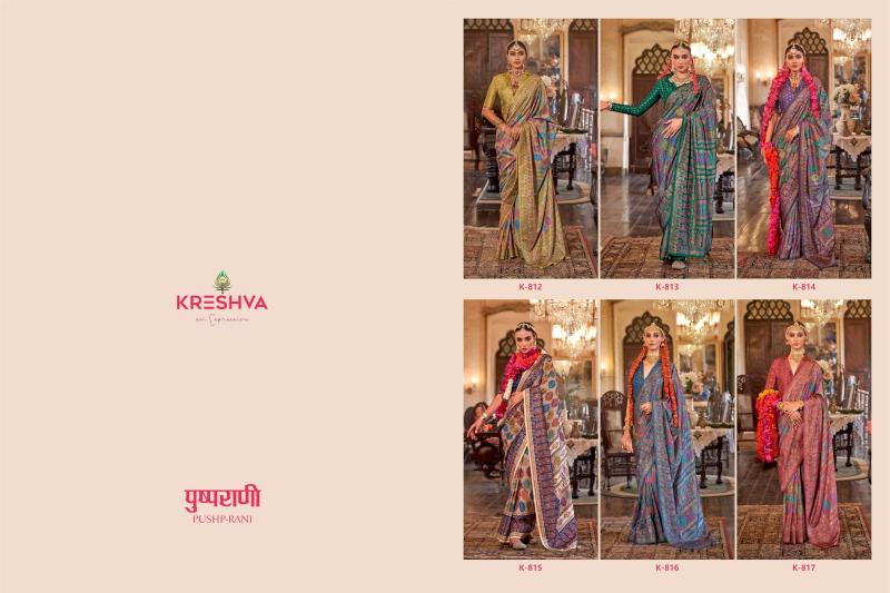 Brand : Kreshva Catalog: Pushpa Rani Series : 812 To 817 Saree : High Quality Super 801 P.V Silk With H.B Luxury Print With Glory Finish Blouse : Super 801 P.V Silk Price : 1995/- +5%GST Occasion : Party Wear ,Festival Wear |