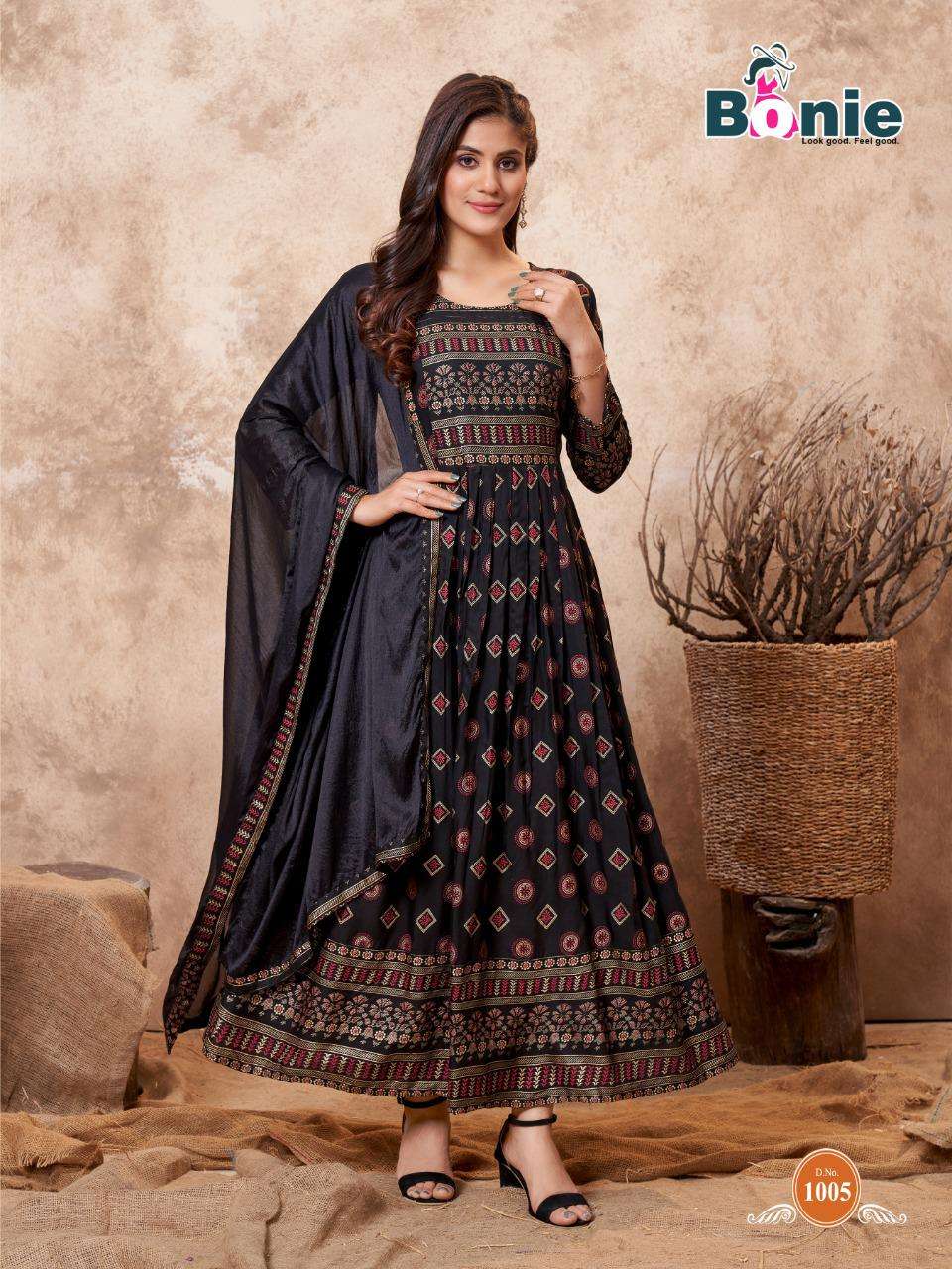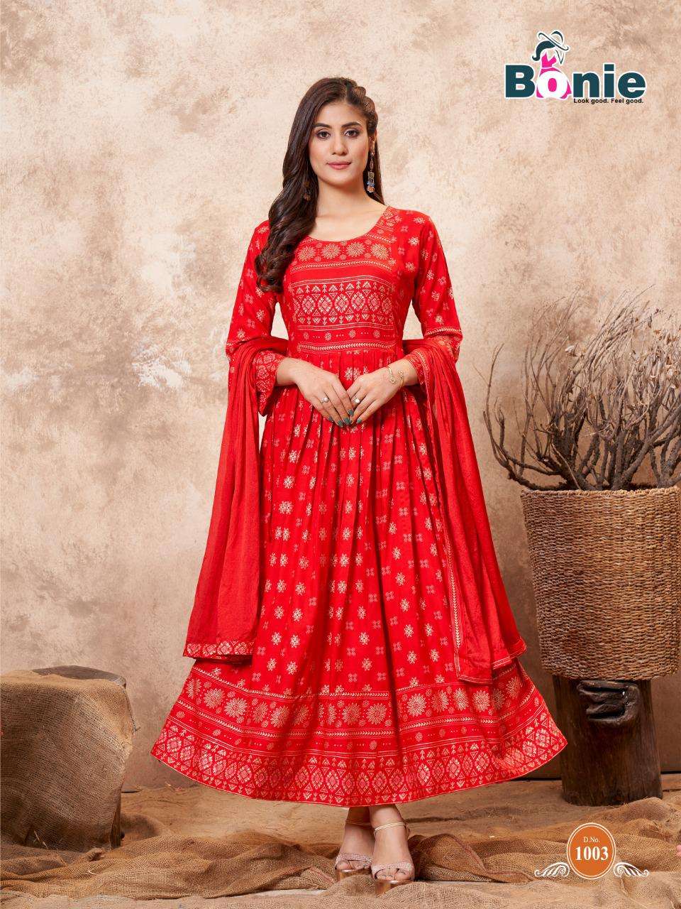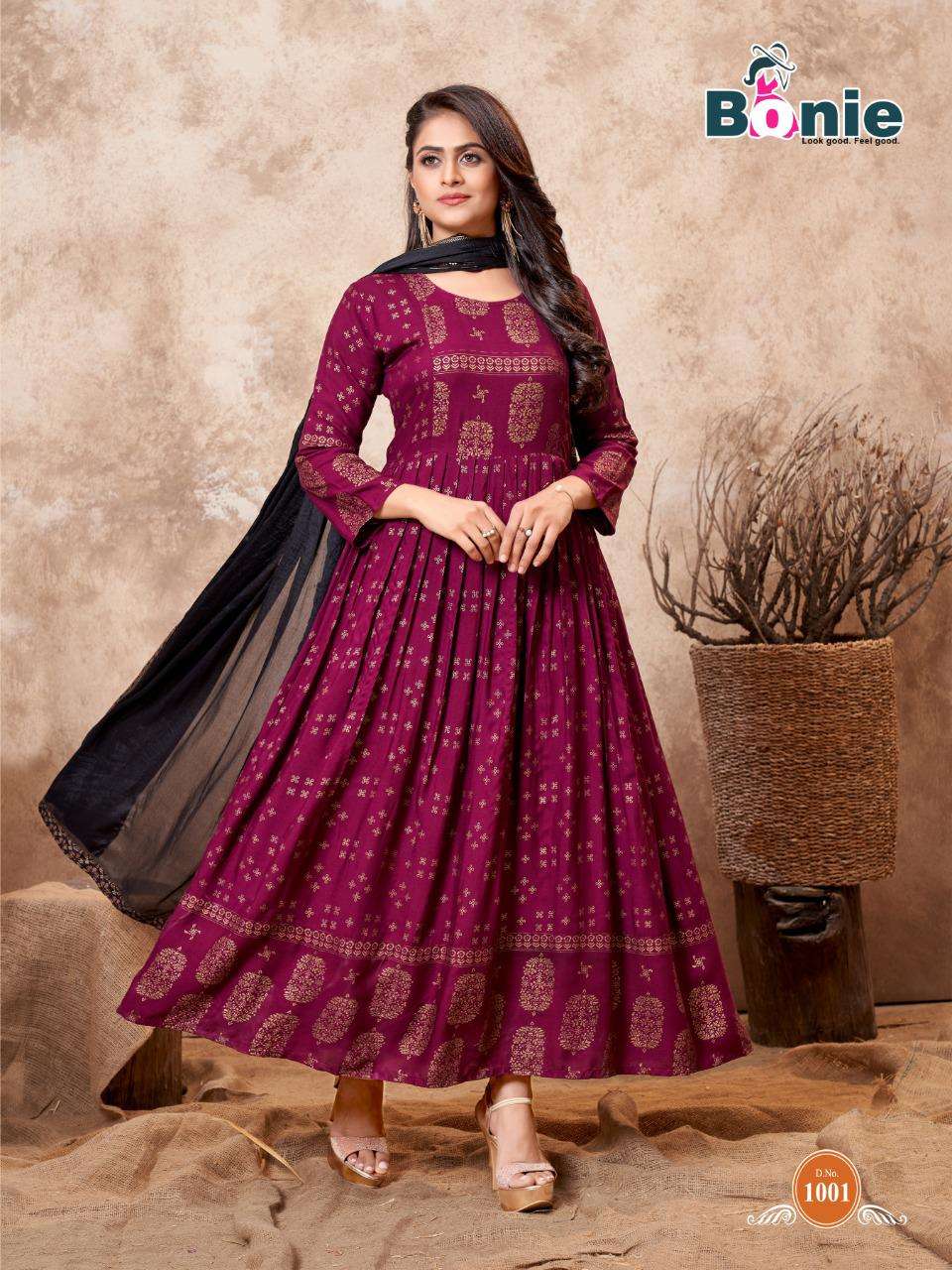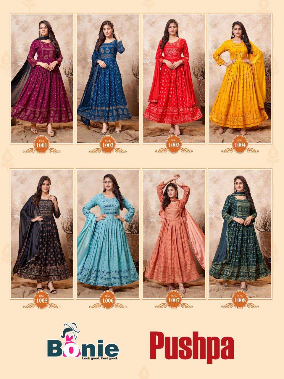PUSHPA BY BONIE HEAVY PURE RAYON FULL FLARE KURTI WITH DUPATTA KURTI CATALOG WHOLESALER BEST RATE