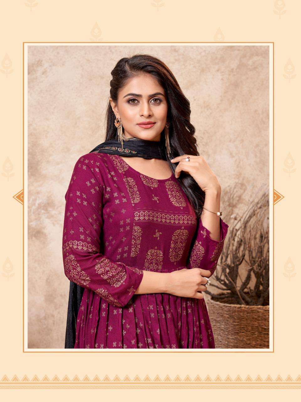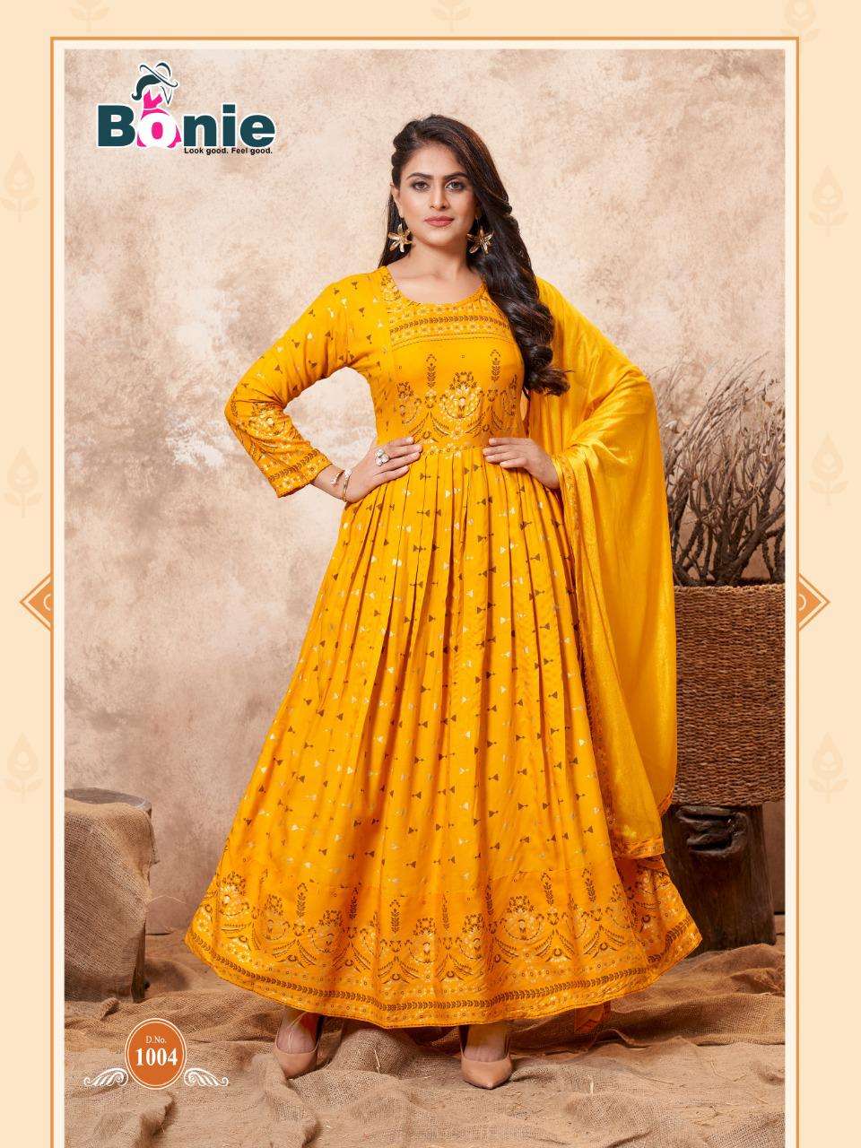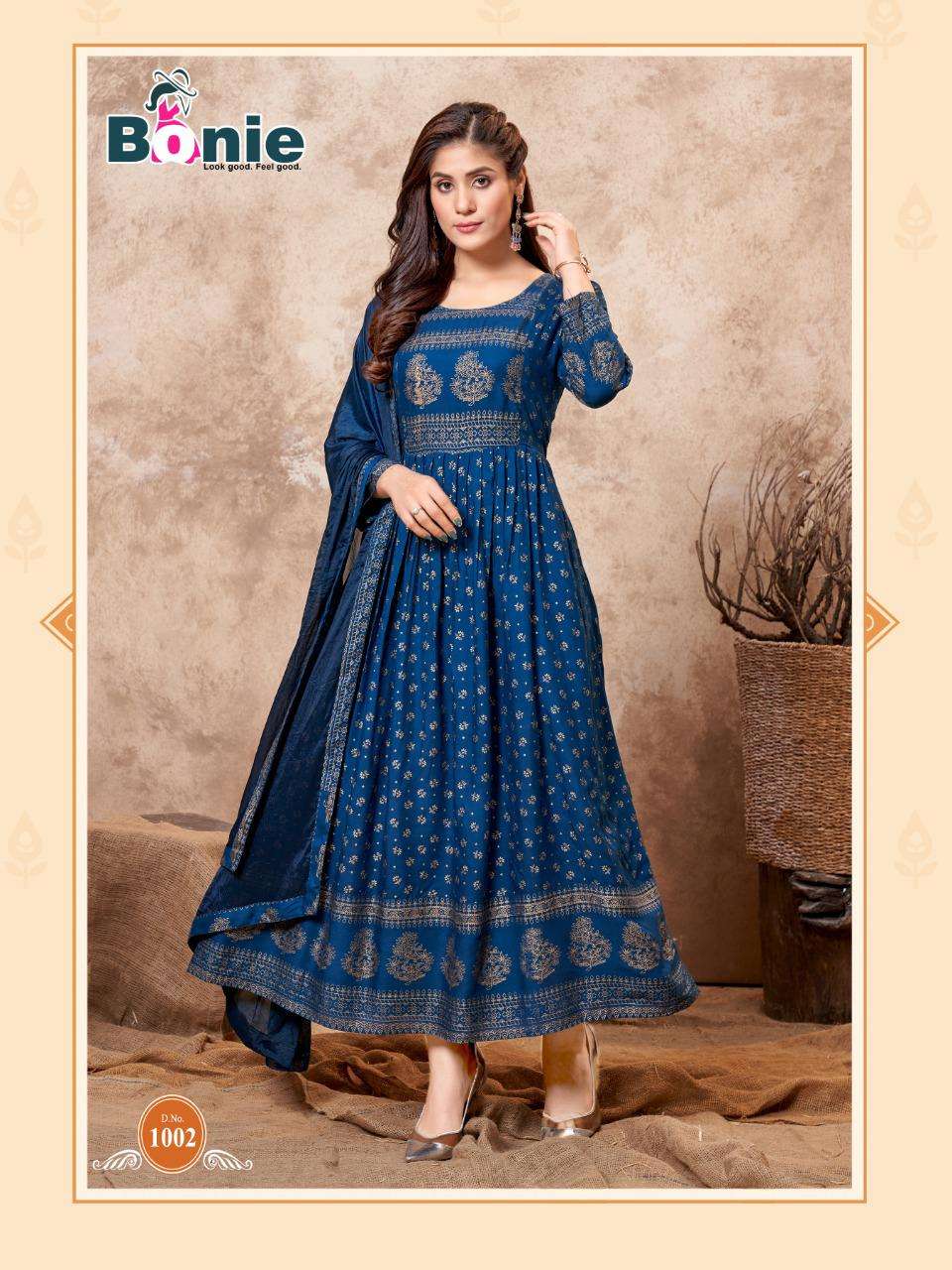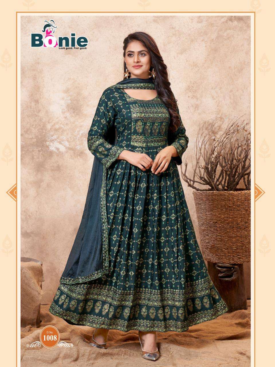 PUSHPA BY BONIE HEAVY PURE RAYON FULL FLARE KURTI WITH DUPATTA KURTI CATALOG WHOLESALER BEST RATE