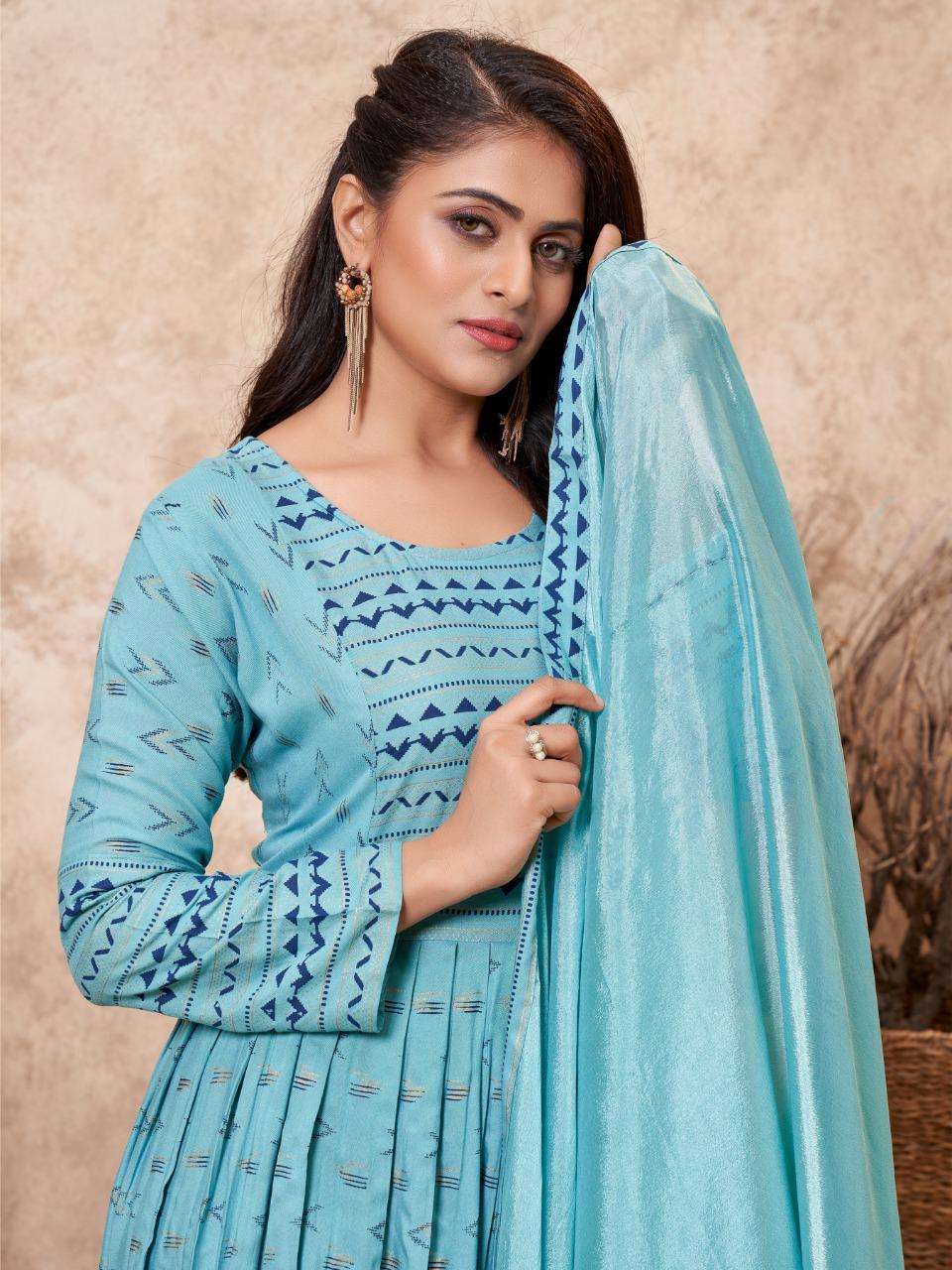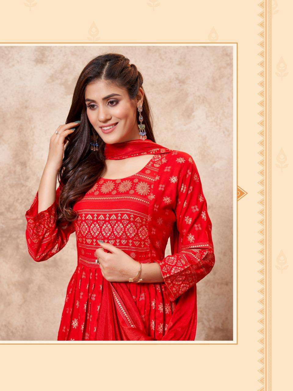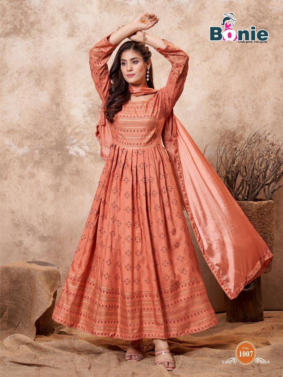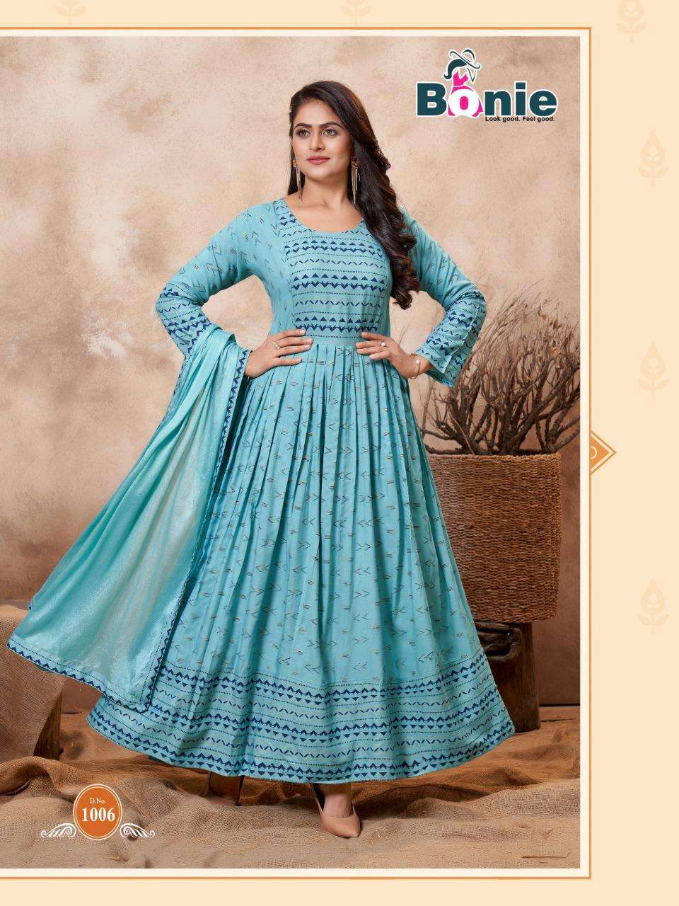PUSHPA BY BONIE HEAVY PURE RAYON FULL FLARE KURTI WITH DUPATTA KURTI CATALOG WHOLESALER BEST RATE
