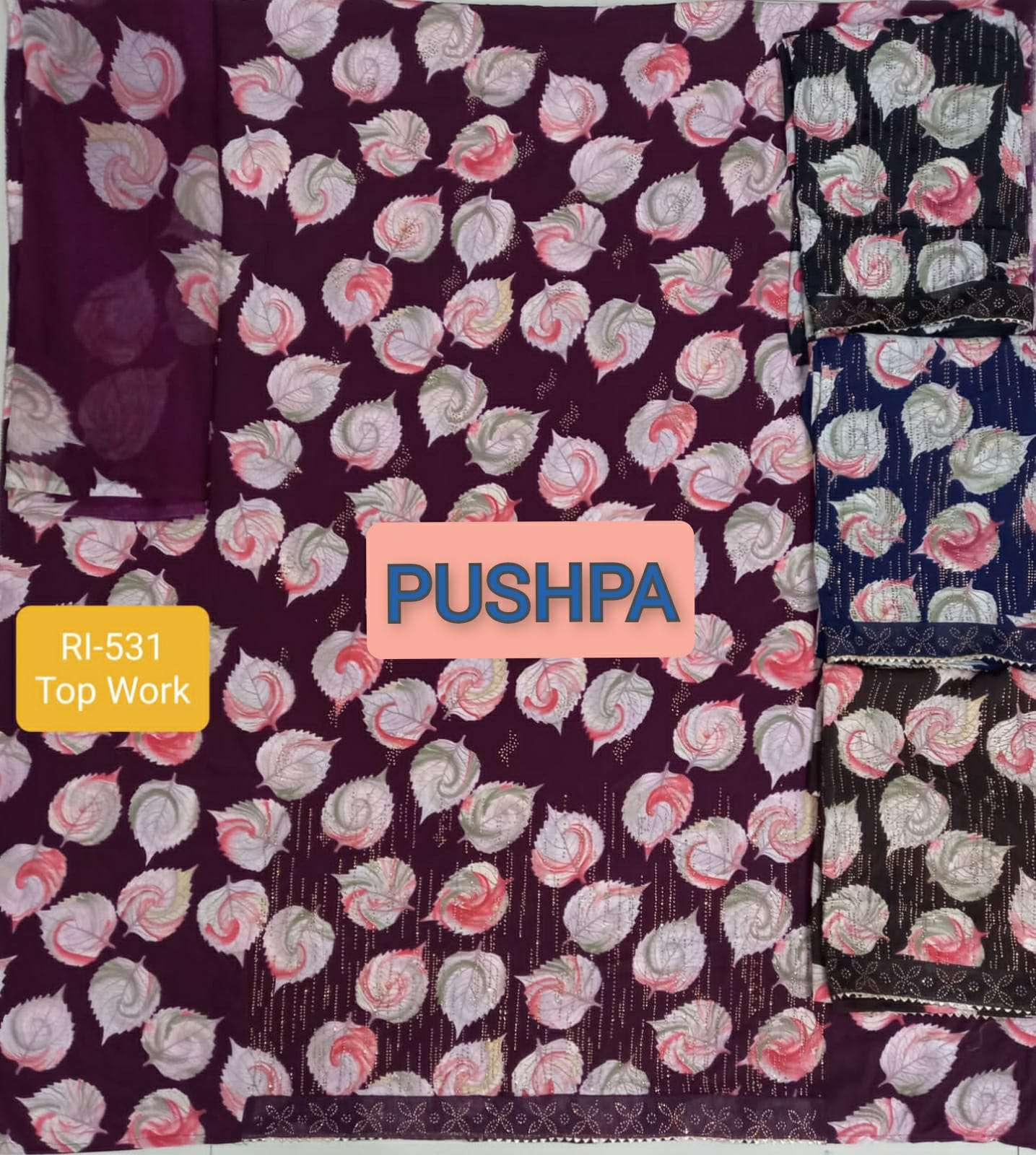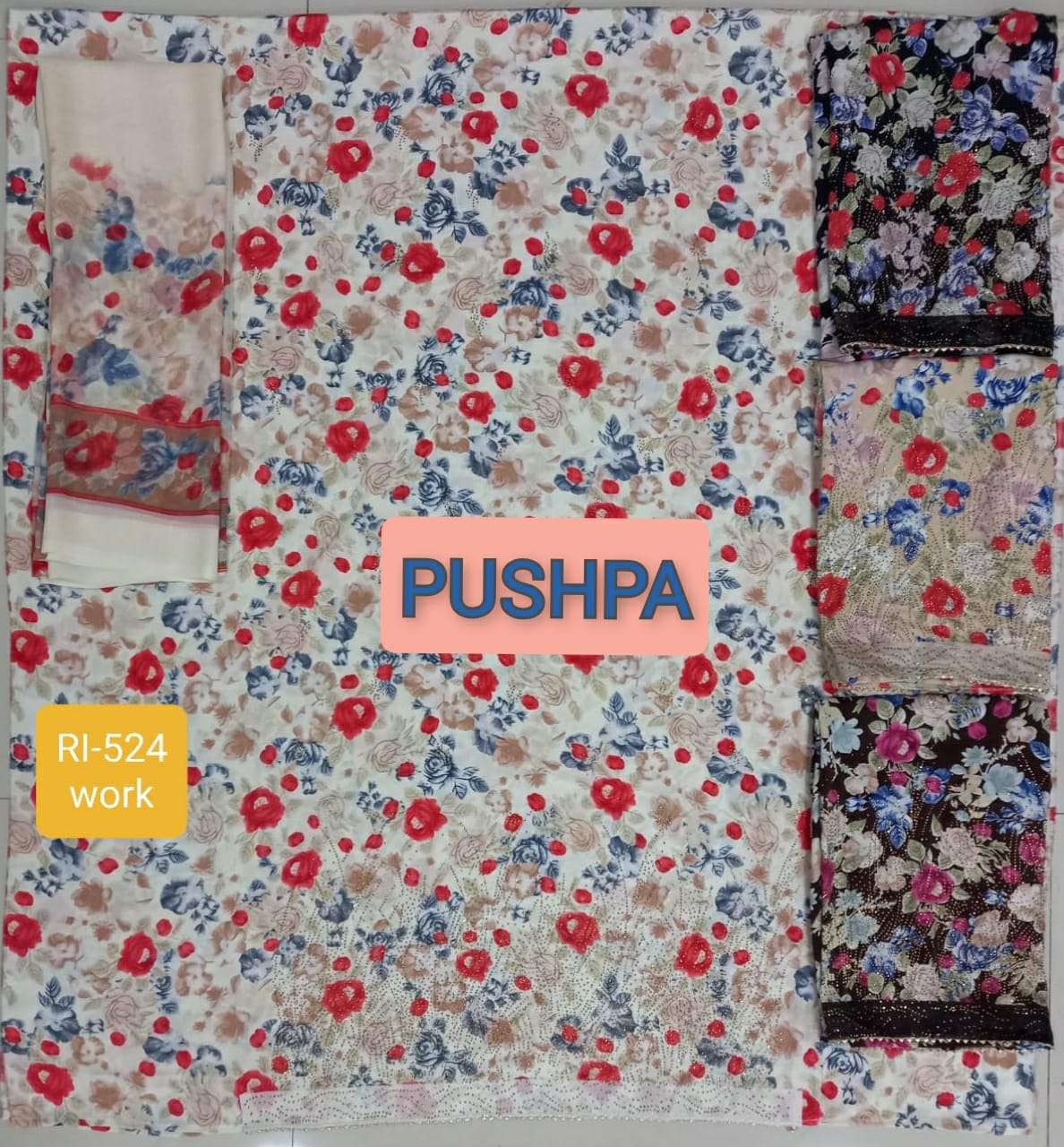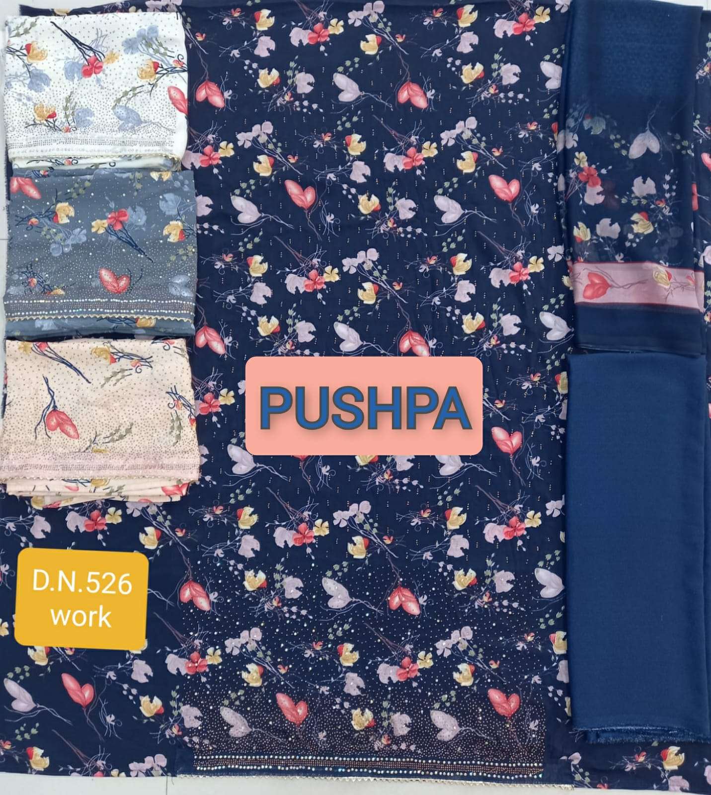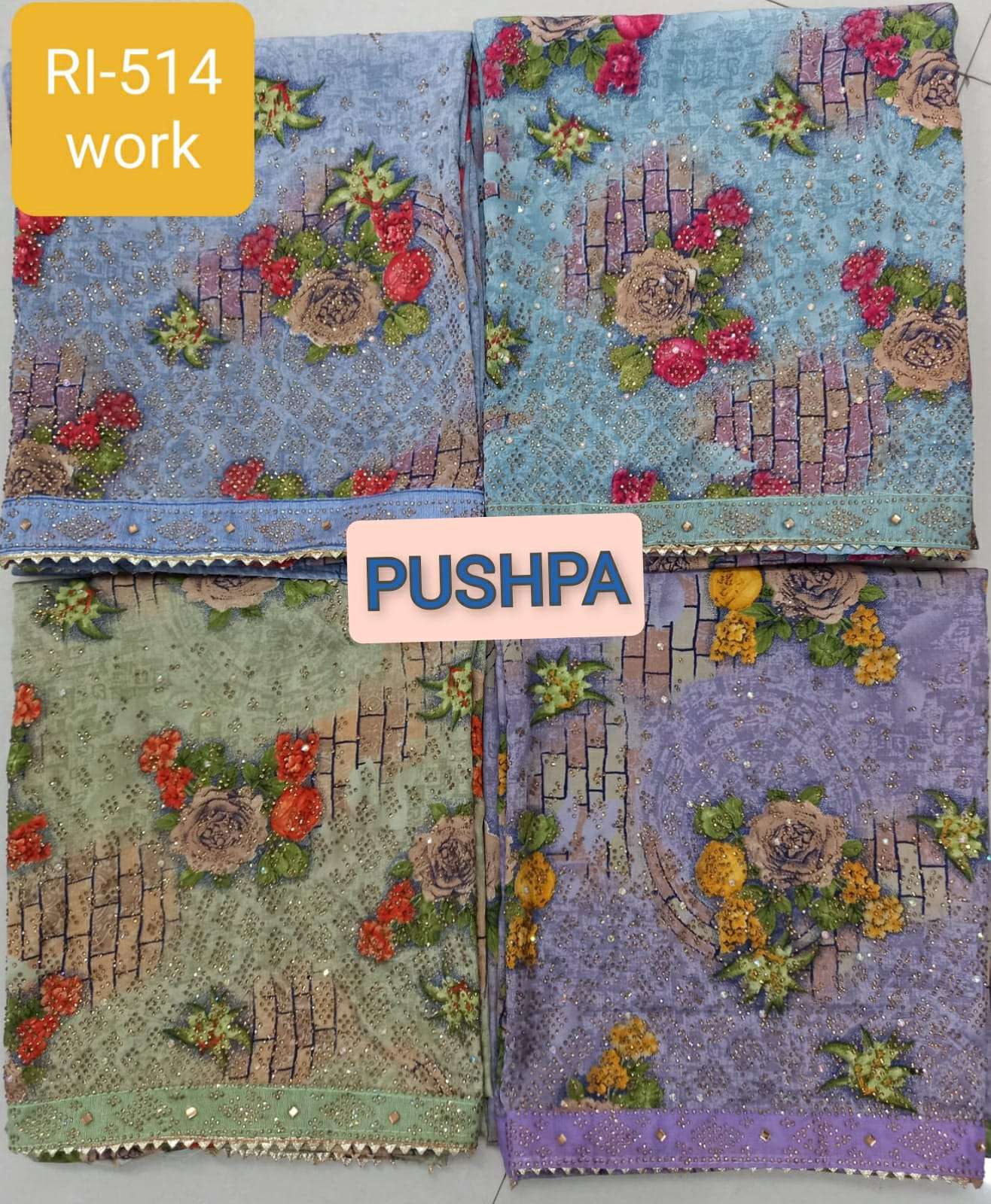 PUSHPA COLLECTION 🌹 FRENCH CRAPE 🌹TOP SIROWSKI WORK 👉 FABRIC DETAIL :- CUT :- 2.40/2.20/2.20 (MTR) PRICE :- 615/- + GST @ 4 PCS SET ONLY |