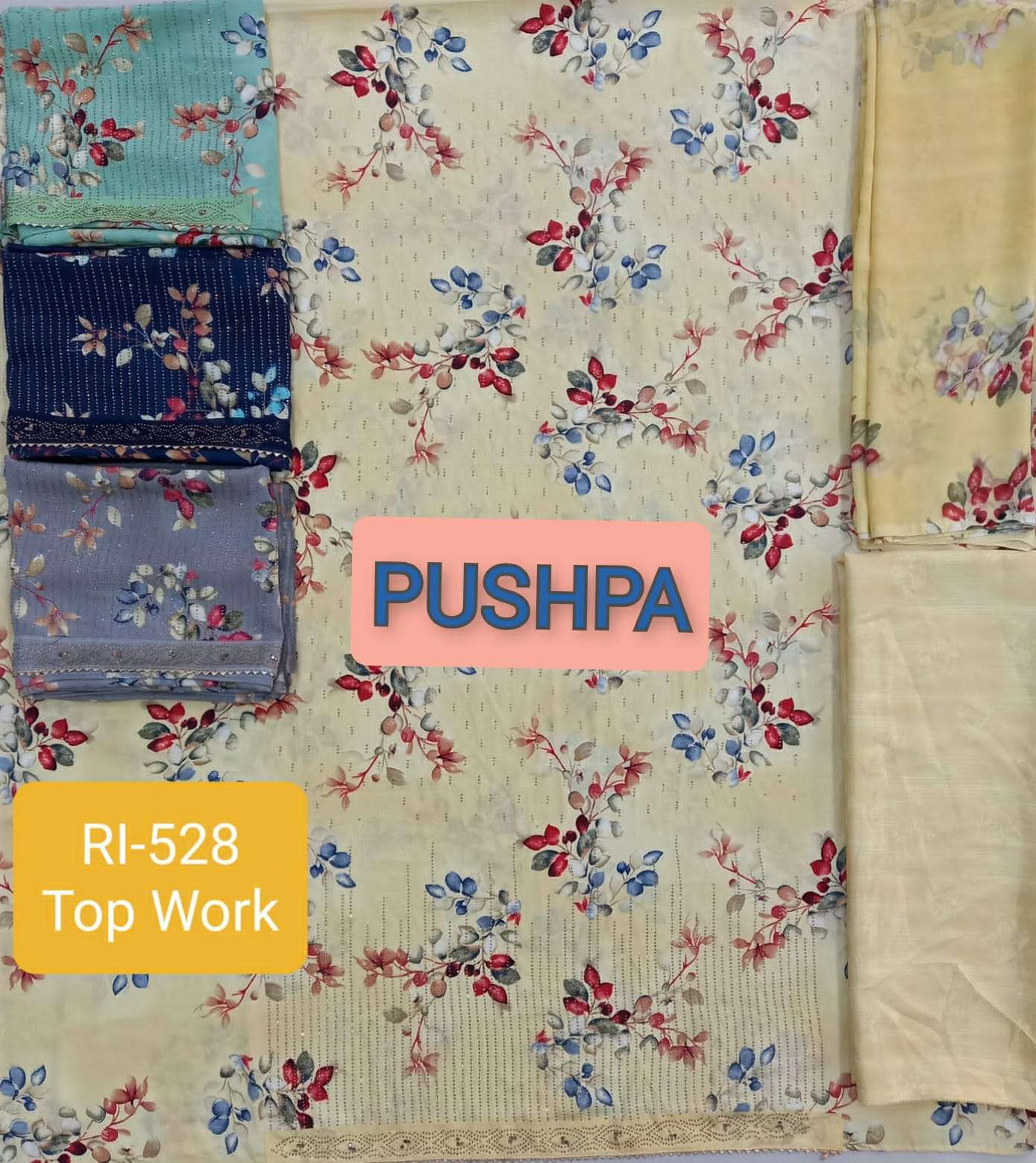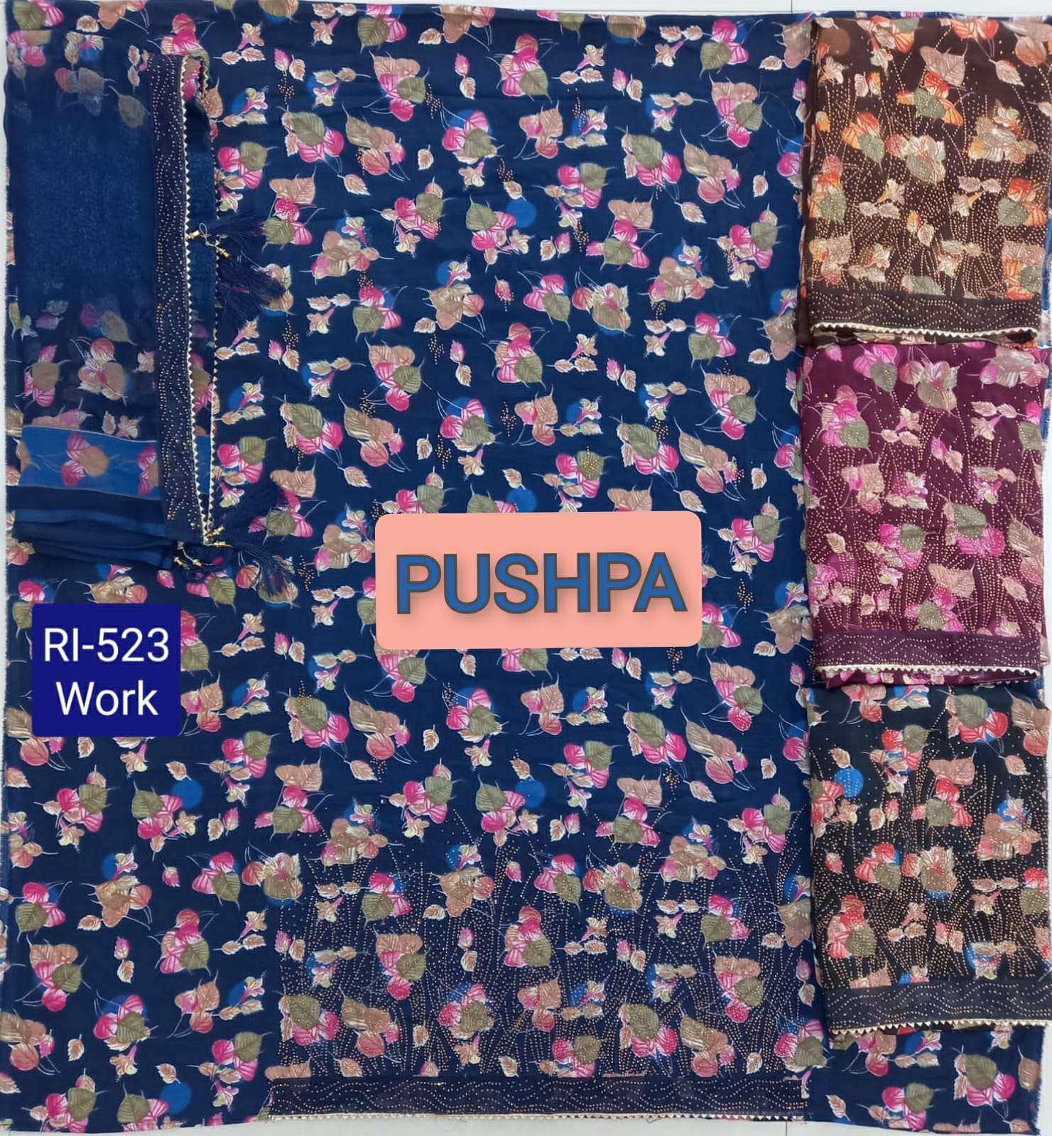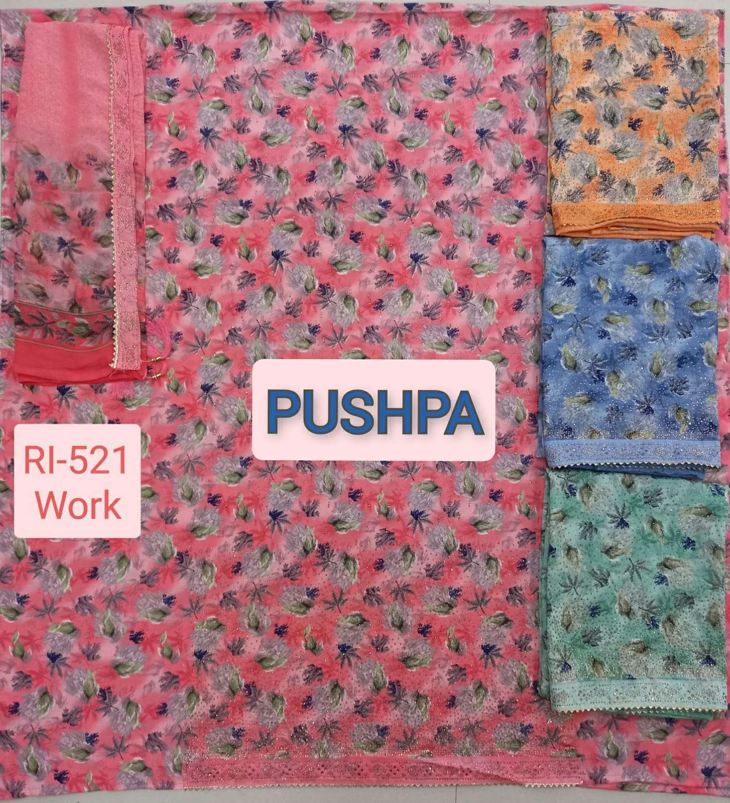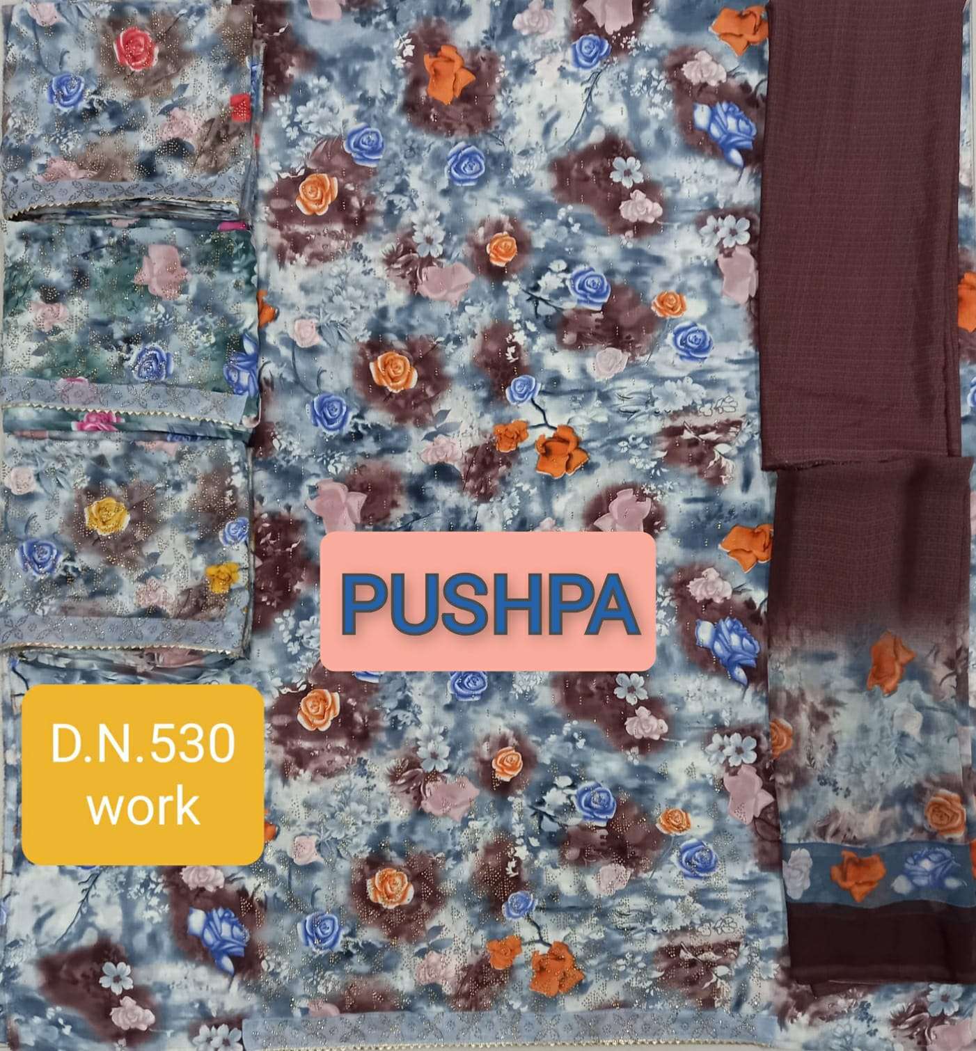 PUSHPA COLLECTION 🌹 FRENCH CRAPE 🌹TOP SIROWSKI WORK 👉 FABRIC DETAIL :- CUT :- 2.40/2.20/2.20 (MTR) PRICE :- 615/- + GST @ 4 PCS SET ONLY |