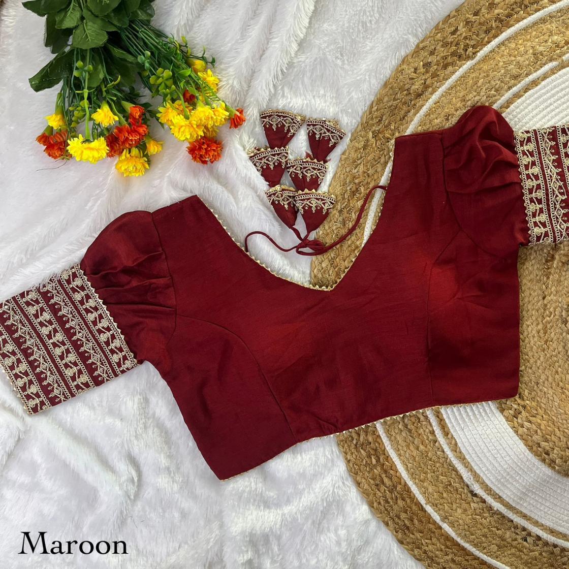 ➡️ EXCLUSIVE PARTY WEAR TAAR CODDING WITH GLITTER SEQUENCE EMBROIDERY WORK WITH GOTA WORK LACE BALOON SLEEVES BLOUSE ➡️Design- PUSHPA-2 ➡️Fabric- VICHITRA SILK ➡️Inner- Heavy Indo Cotton ➡️Work- Exclusive Taar Codding With Glitter Sequence Embroidery Work With Gota Work Lace ➡️Pattern- V - NEACK ➡️Quality- A1 ➡️Padded- Yes ➡️Size- Free Size 38 Ready ➡️Length- 14-15 Inch ➡️Open Type- Back Hook ➡️Sleev- Elbow Balloon Sleeves Atteched ➡️Colour:- (11 Colours Available) 🖤💛🧡❤️🩷️💙💜🤍🤎 ➡️Price- 315/- ➡️SHIPPING EXTRA ➡️ BOOK FAST READY STOCK |