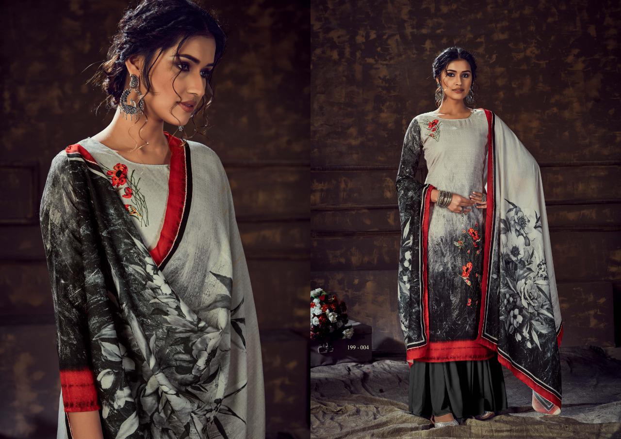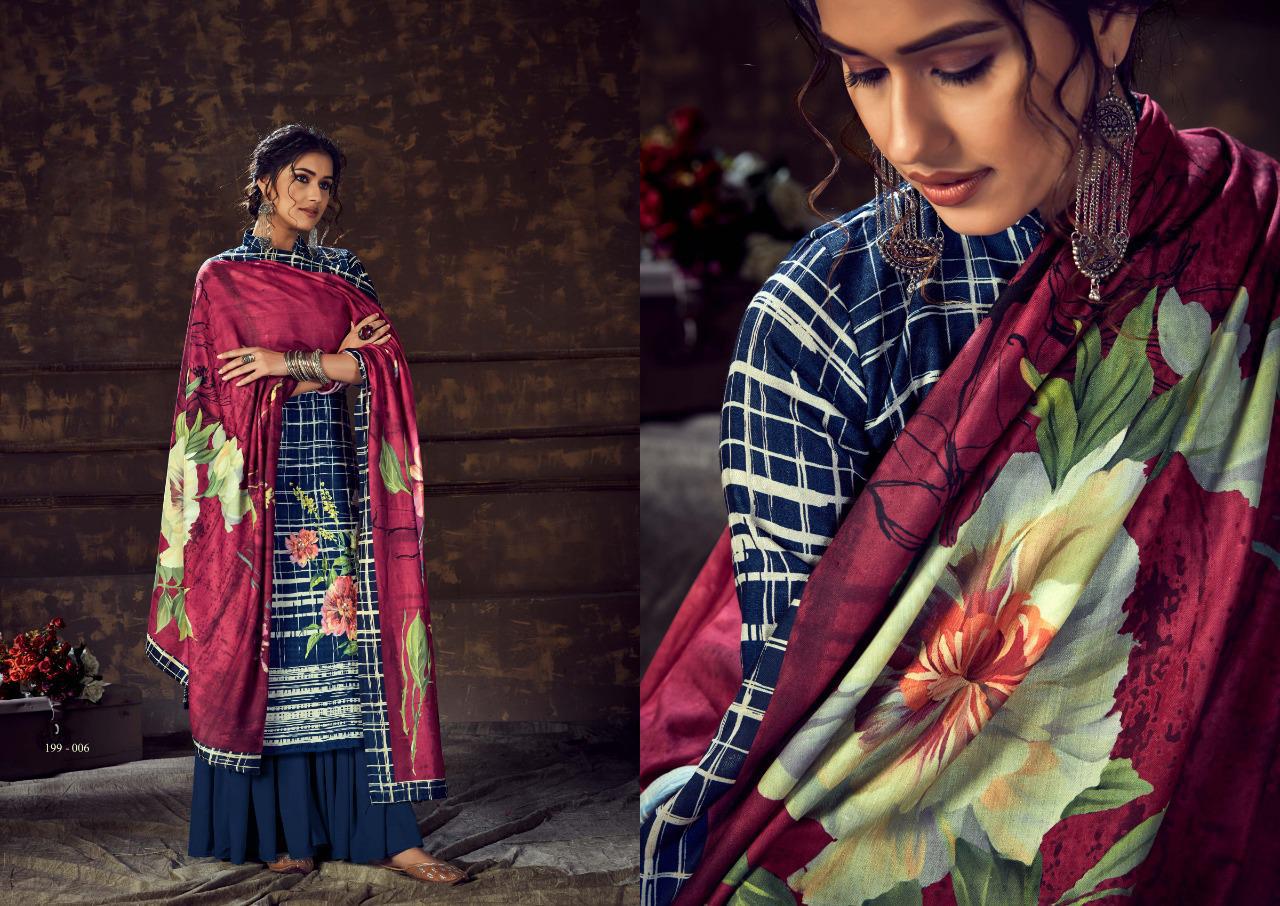 **QAFILLA VOL-2** 👊Fabric Details👊 Top: PURE PASHMINA DIGITAL PRINTS WITH KHATLI HAND WORK Bottom: PASHMINA DYED Dupatta: PURE WOOL DIGITAL PRINTED Designs: 6 PCS Ex Mill: ₹795 per pcs . Set to set. GST 5 Percent Extra. Delivery 2-3 days HSN CODE: 5407 GST RATE: 5% |