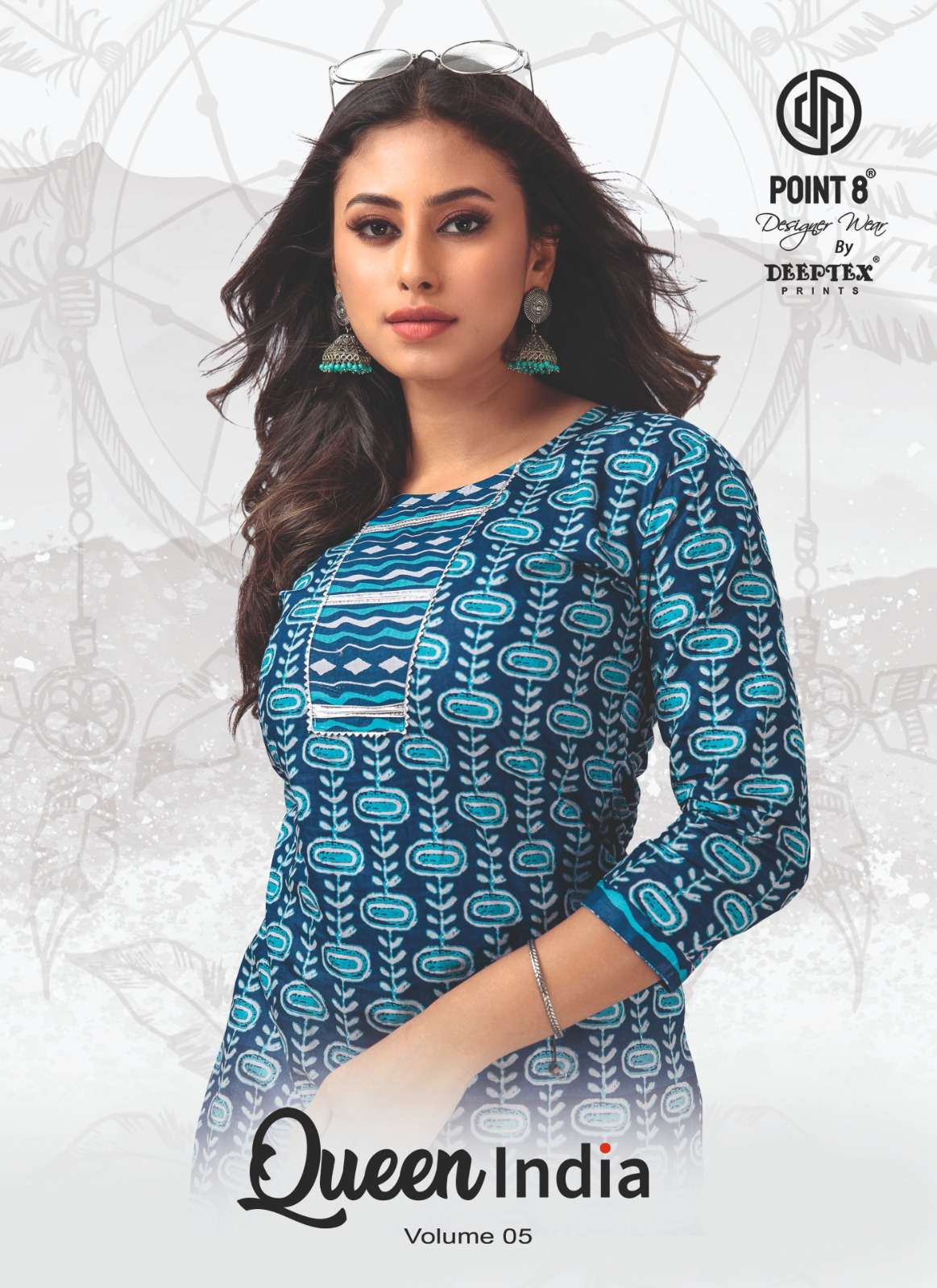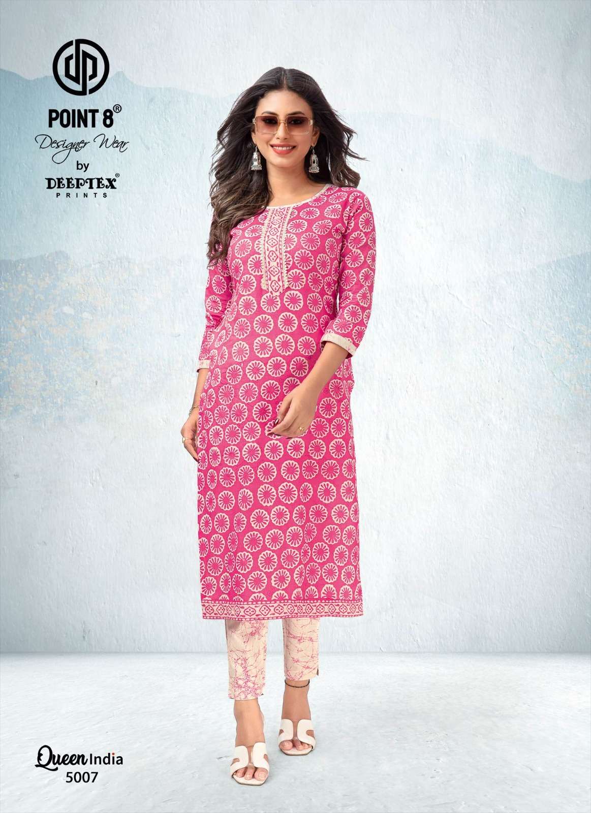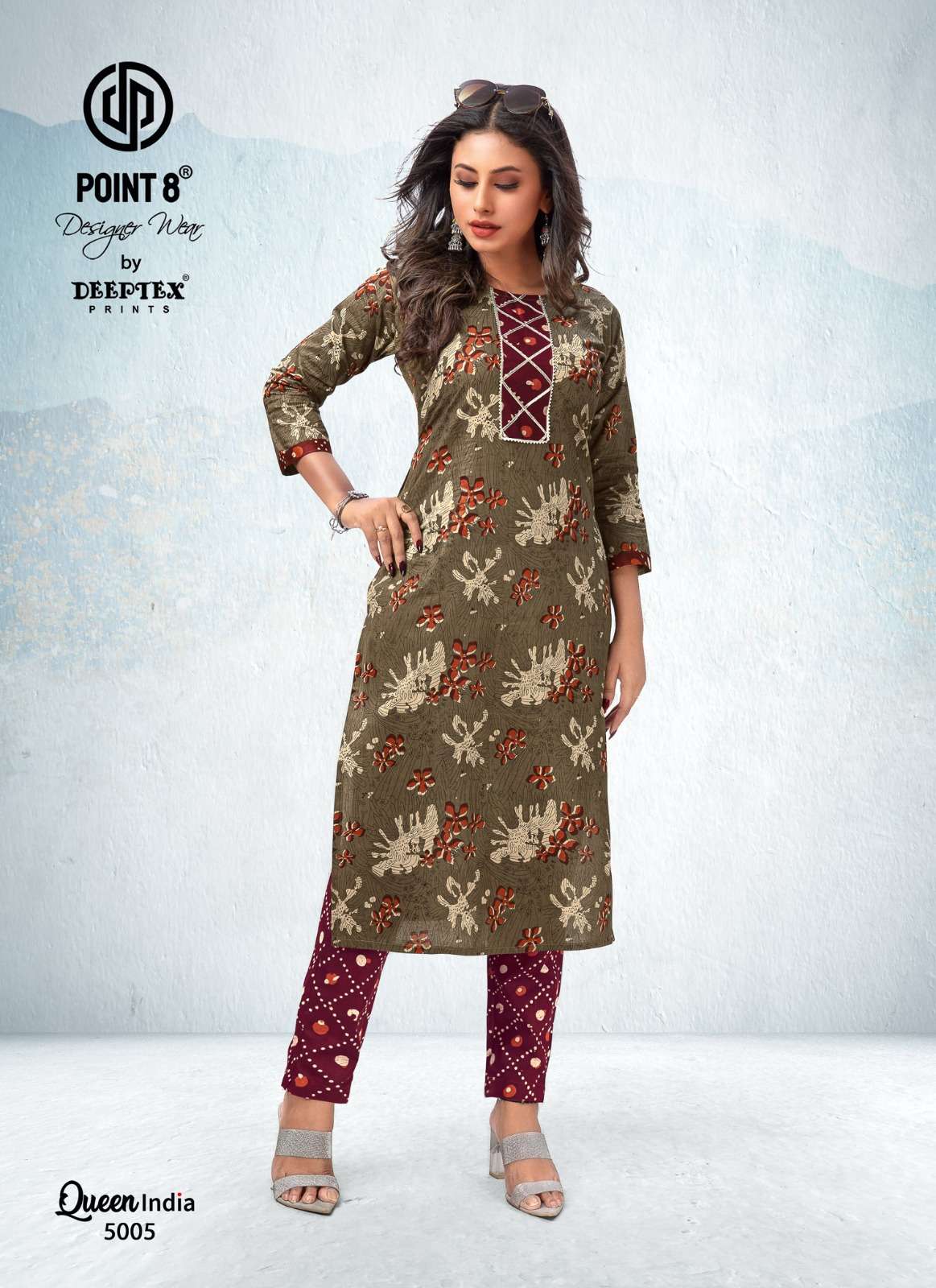 queen india vol 5 by point 8 deeptex prints readymade cotton pair kurti with pant