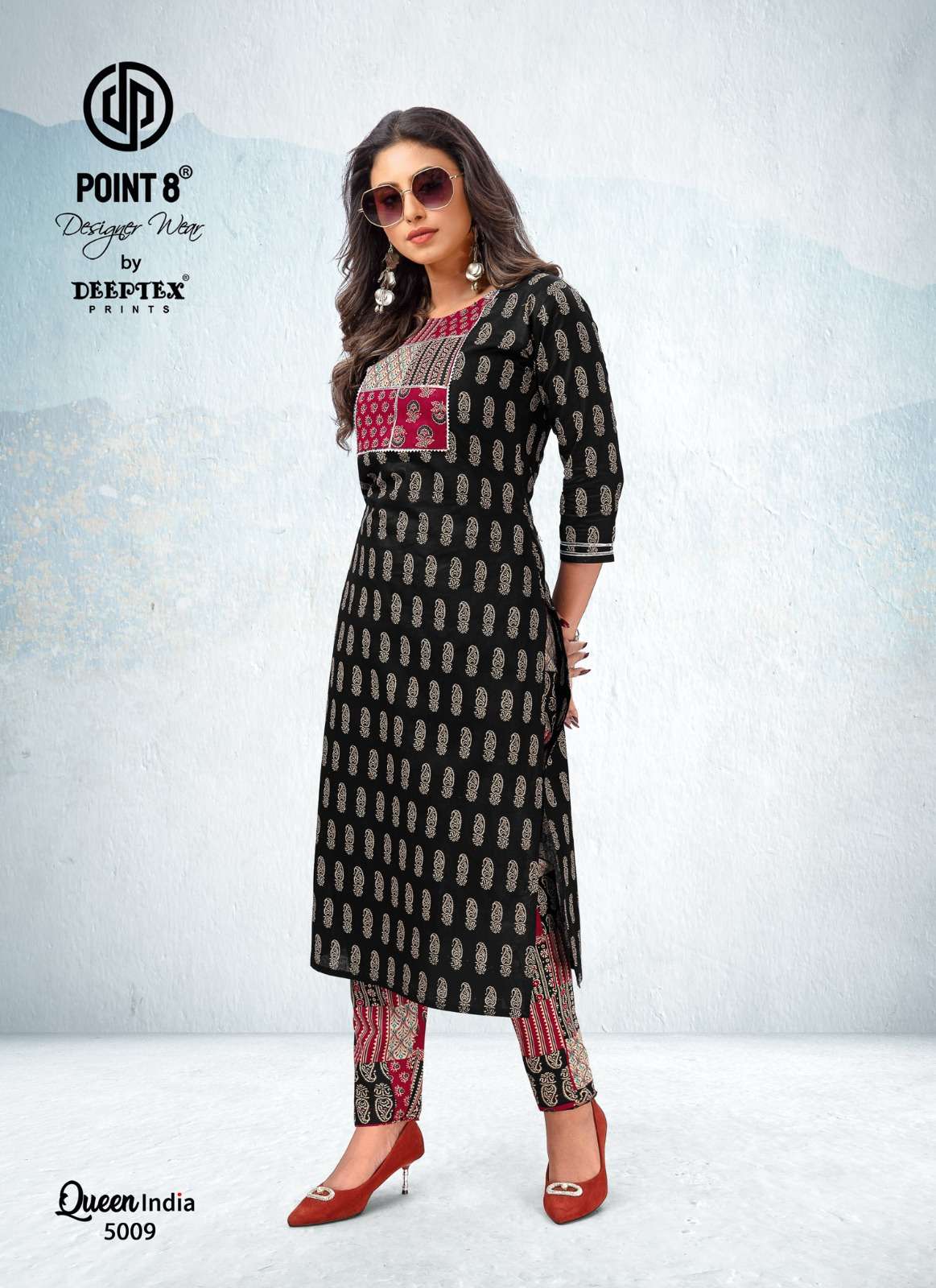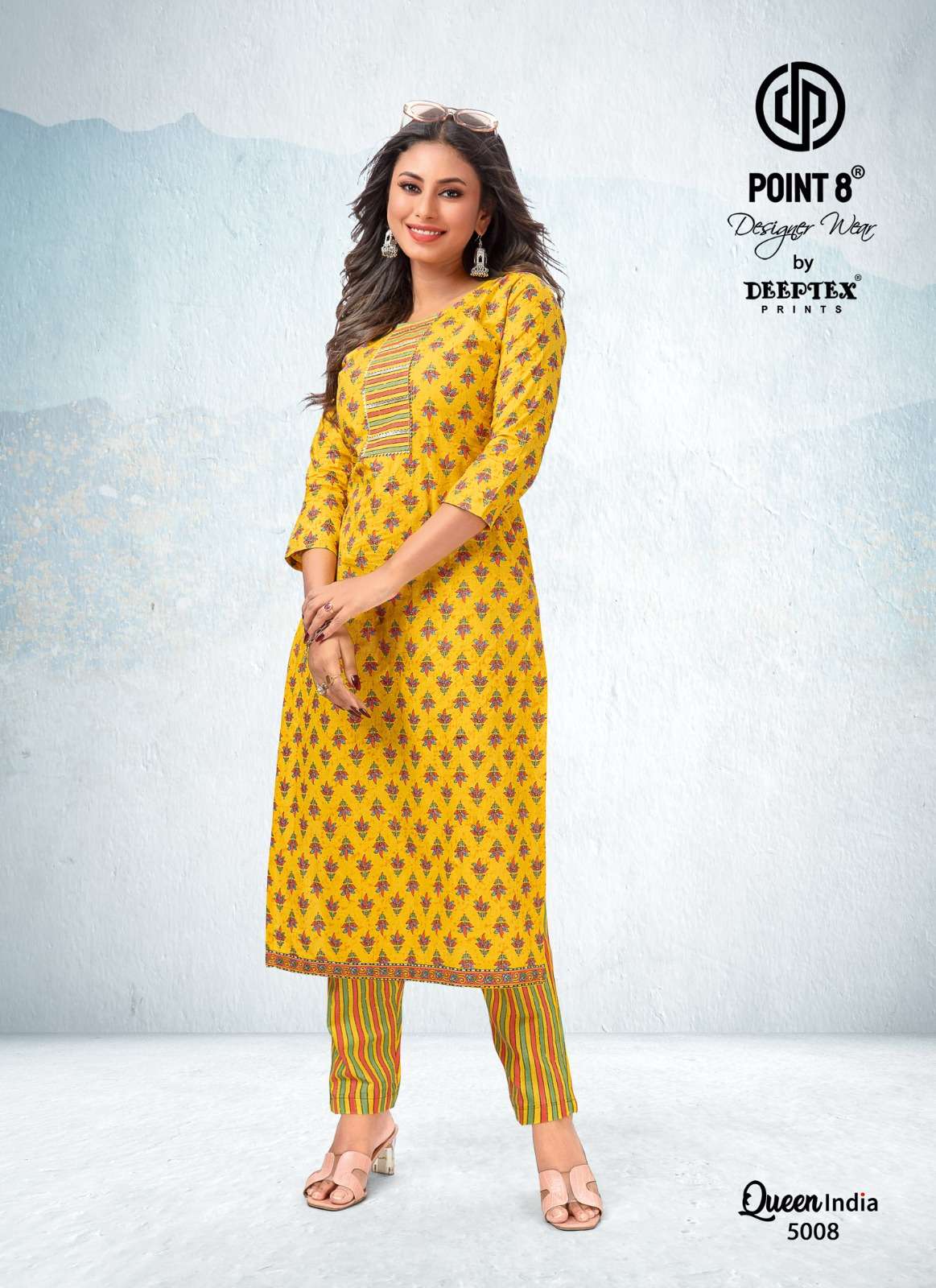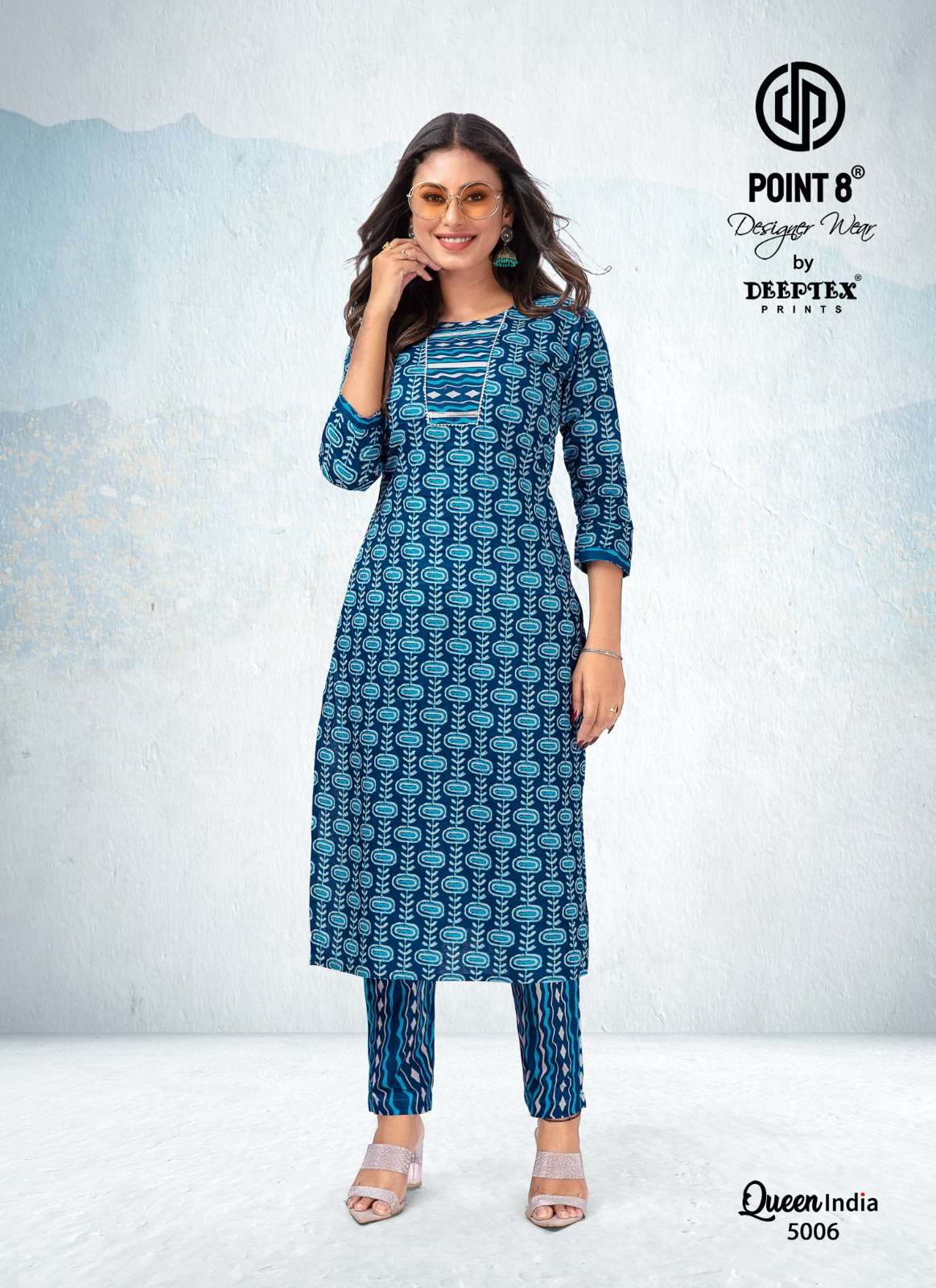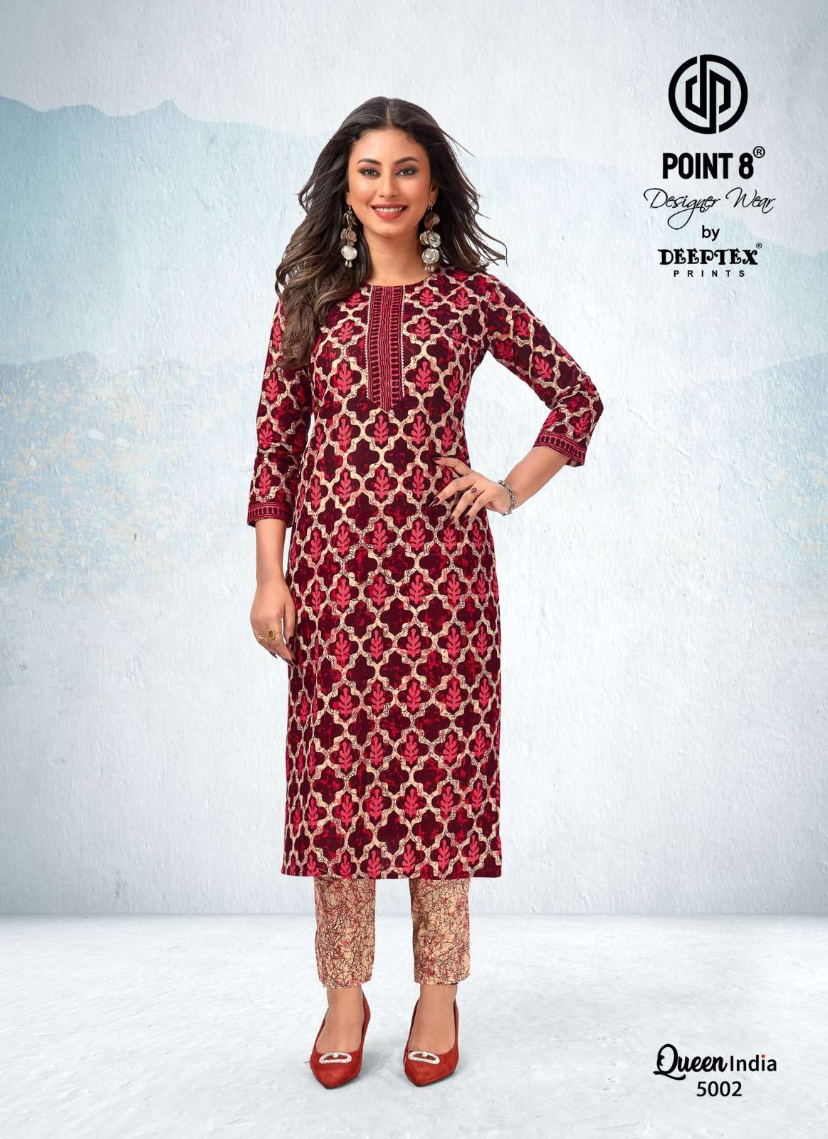 queen india vol 5 by point 8 deeptex prints readymade cotton pair kurti with pant
