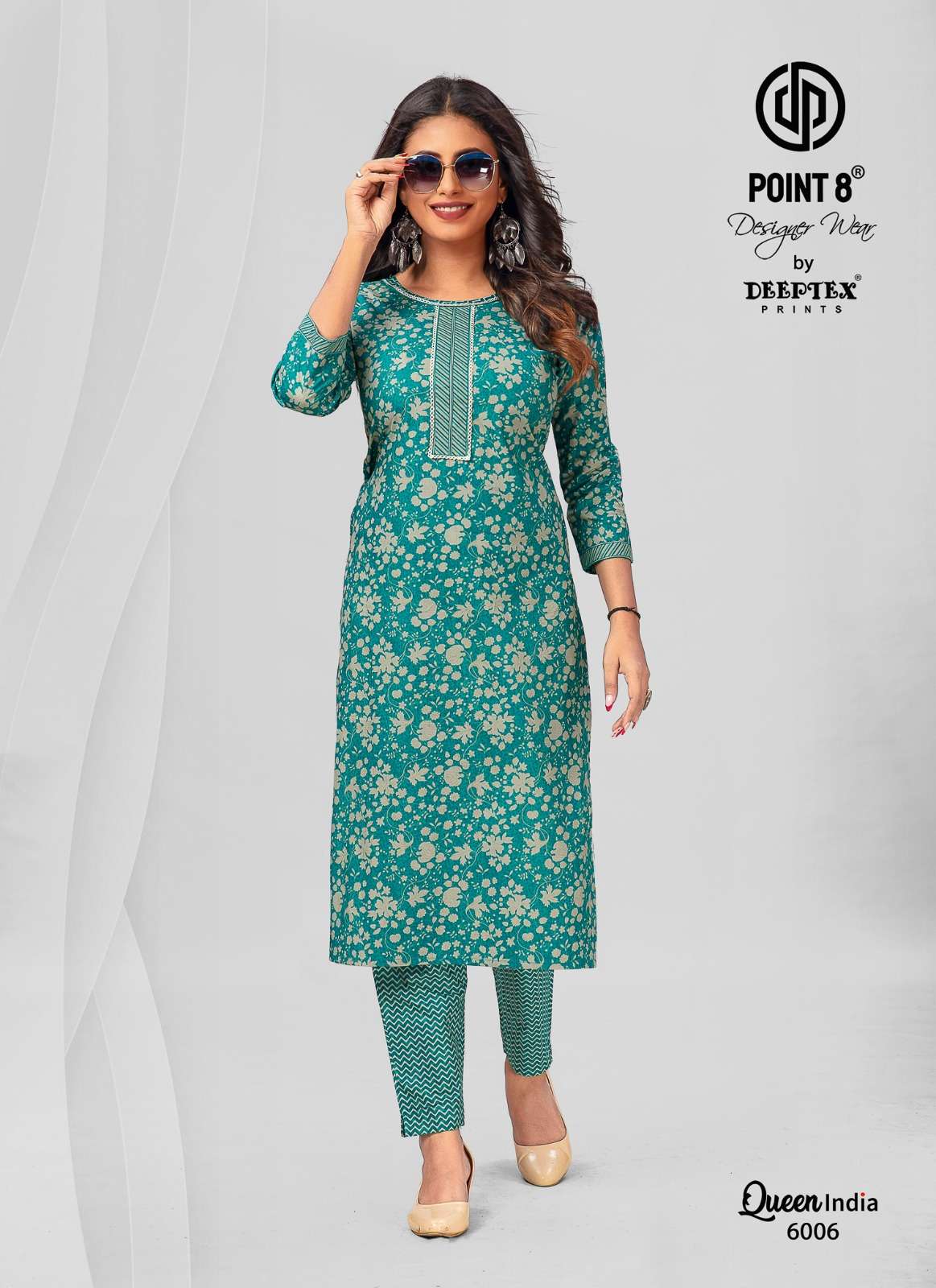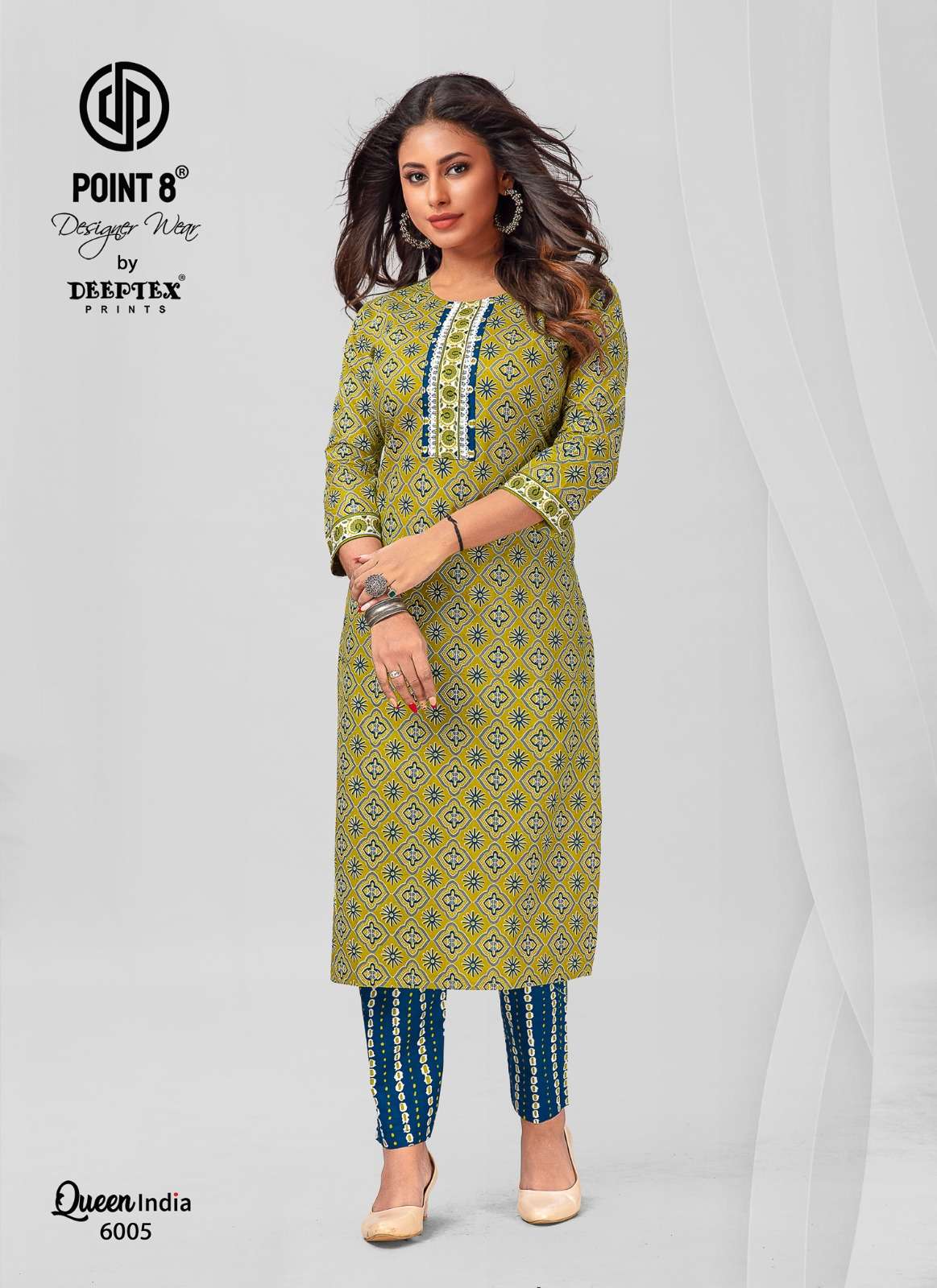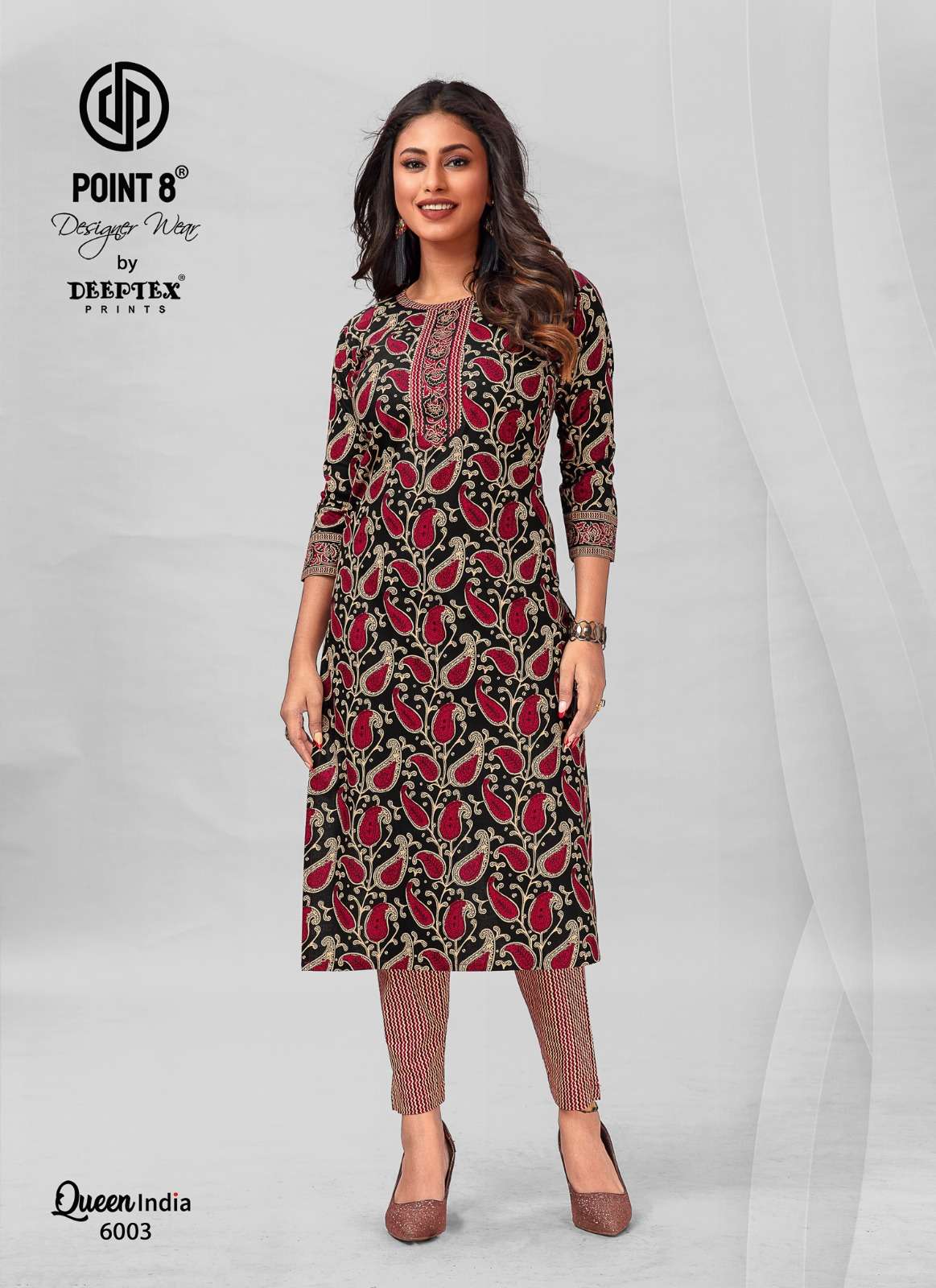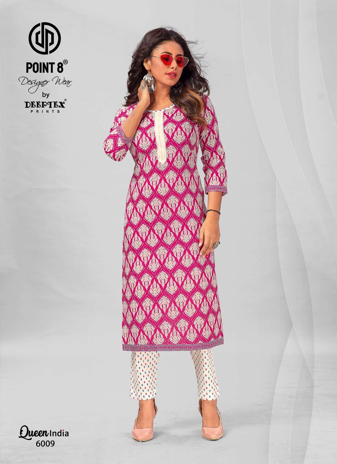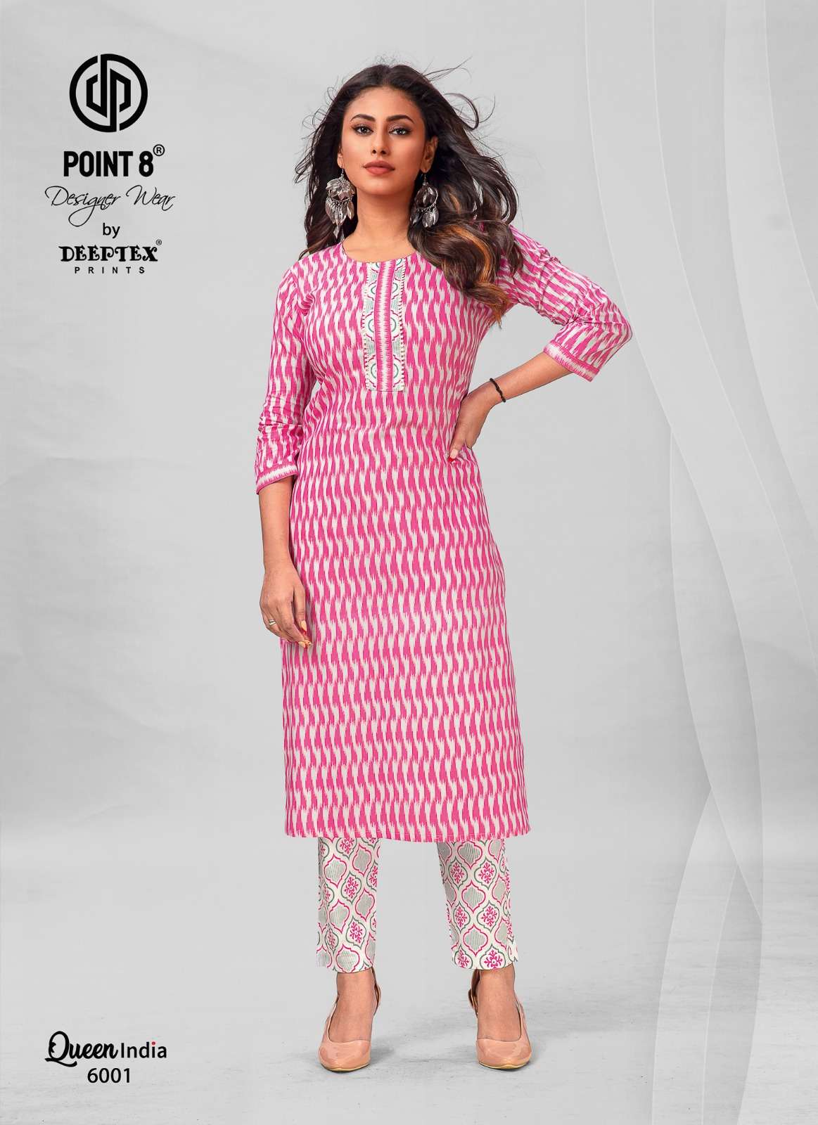 queen india vol 6 by point 8 deeptex print cotton pair set fullstitch kurti and pant