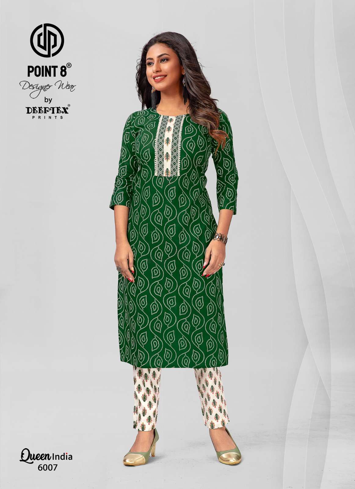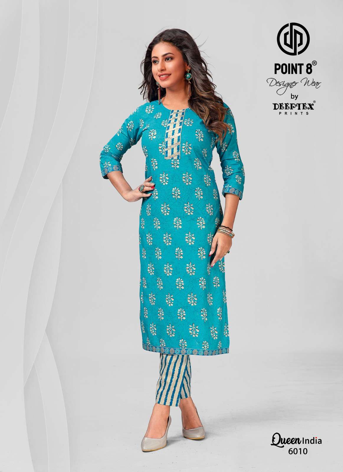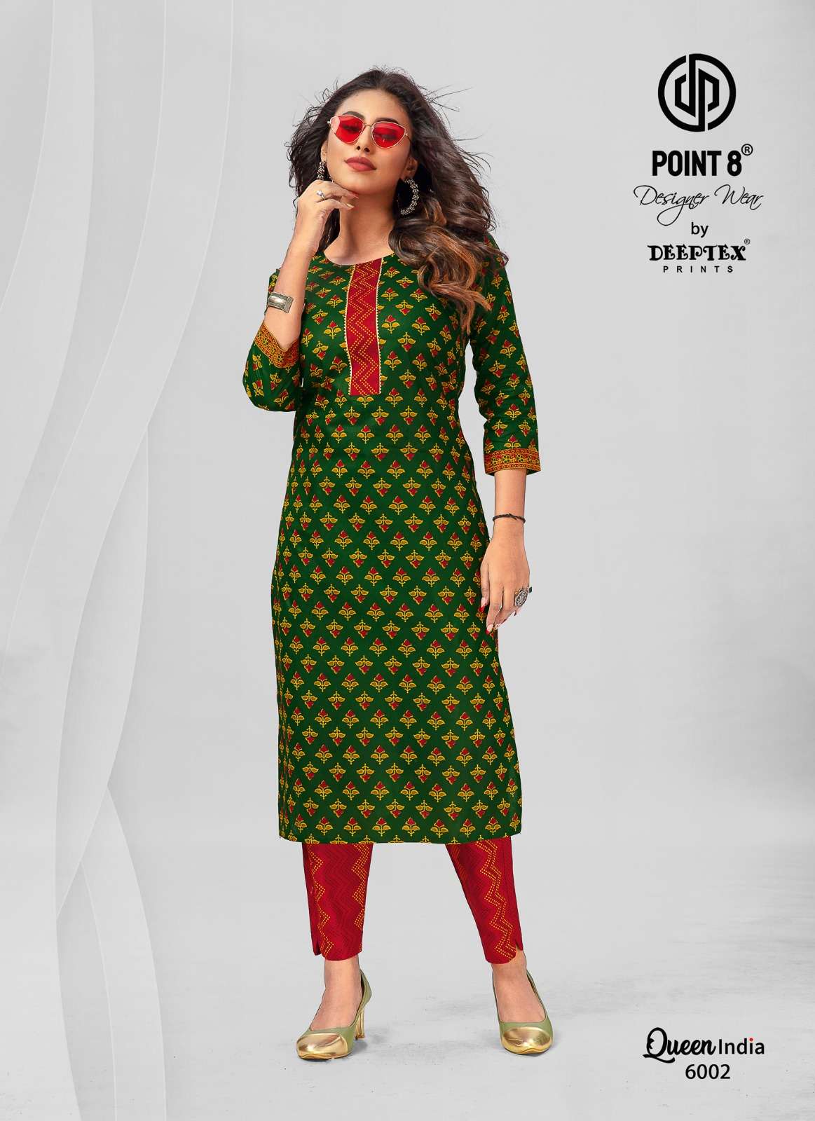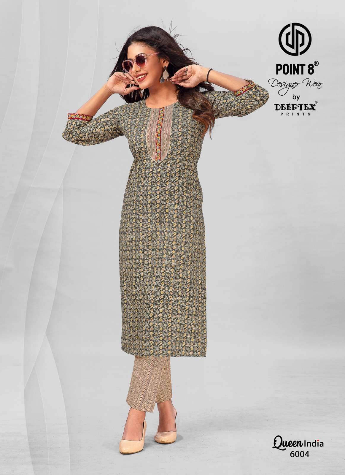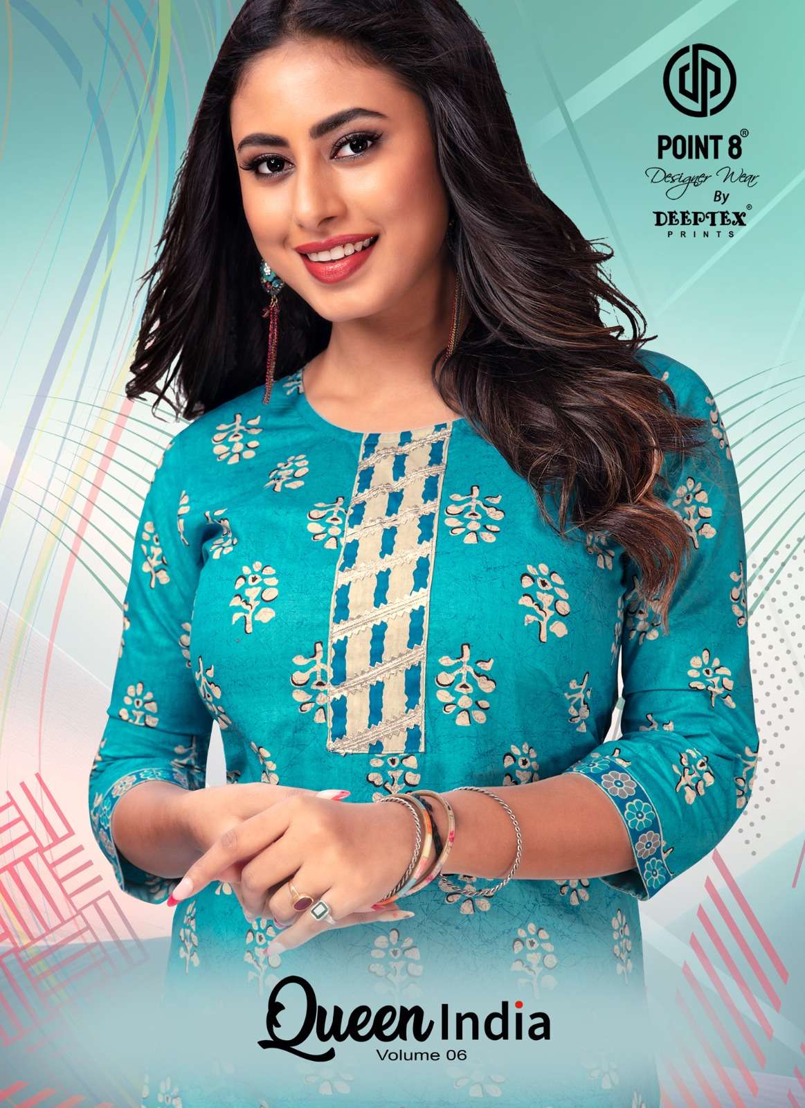 queen india vol 6 by point 8 deeptex print cotton pair set fullstitch kurti and pant