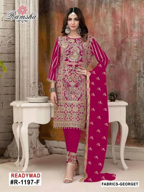 r 1197 nx by ramsha embroidery work georgette fullstitch pakistani 3pcs dress