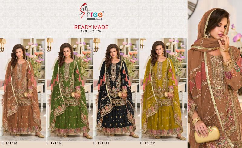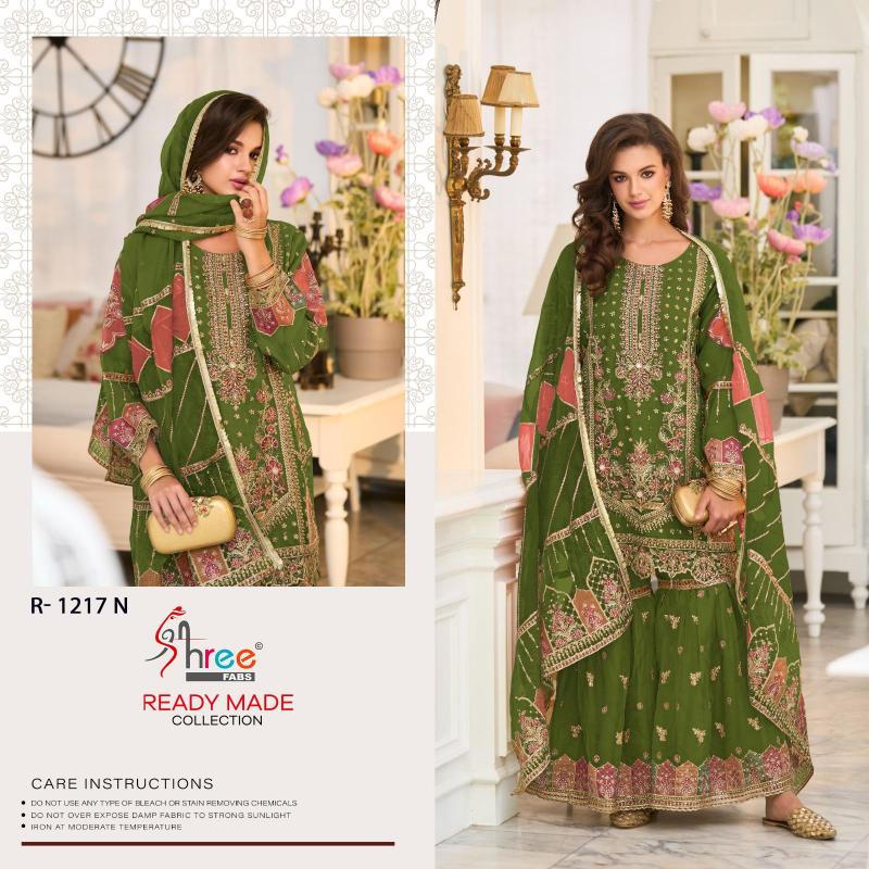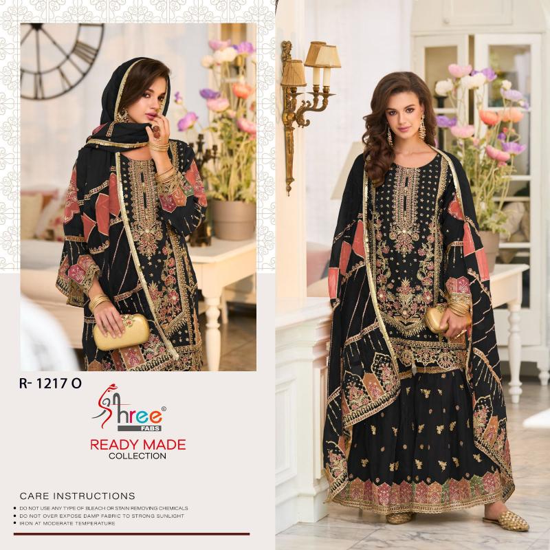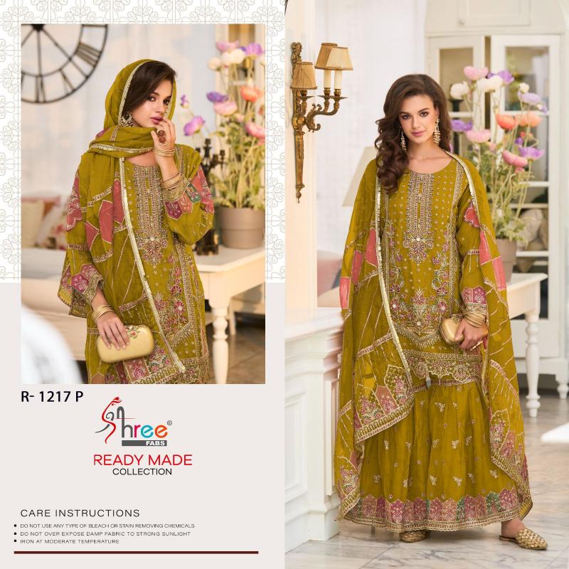 r 1217 by shree fabs embroidery work organza plazzo style readymade suits