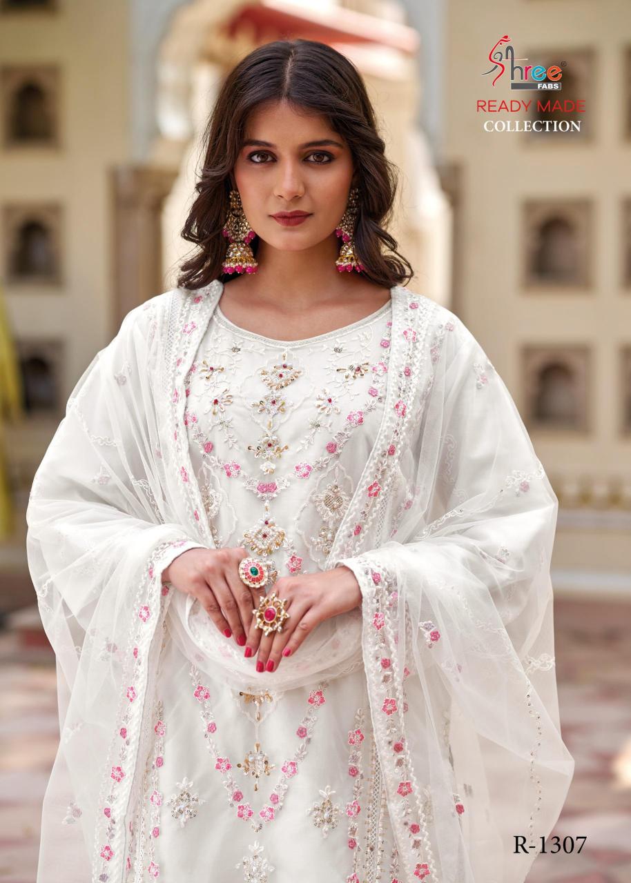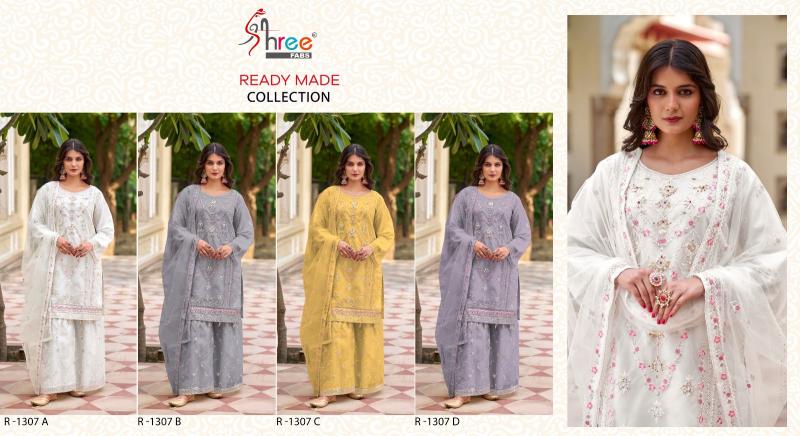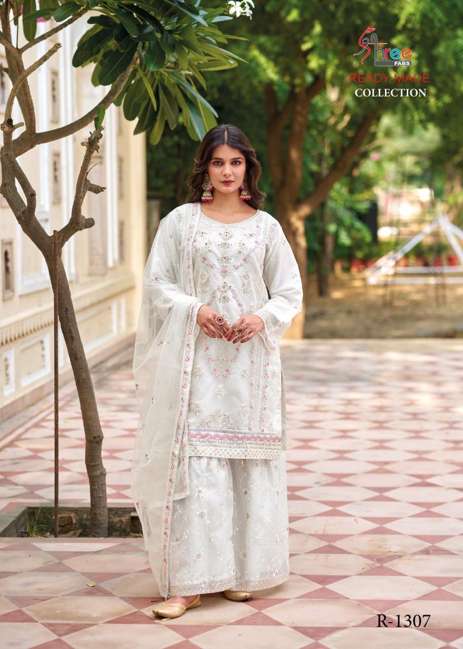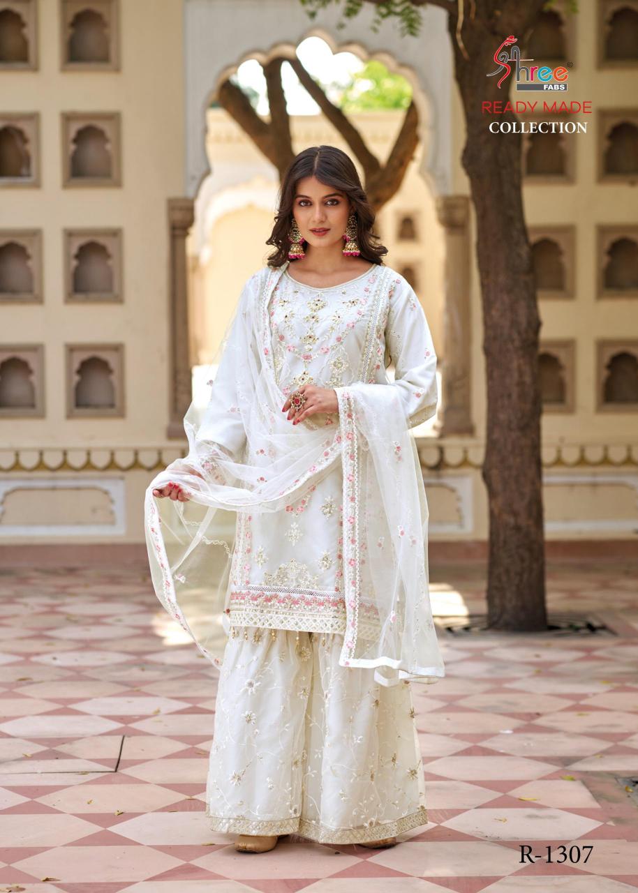 r 1307 by shree fabs designer work organza readymade suits with sharara