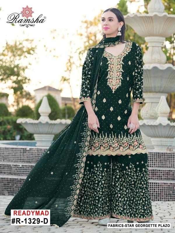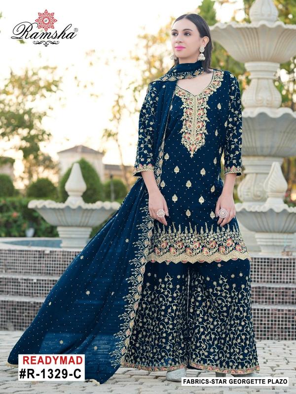 r 1329 nx by ramsha star georgette readymade fashionable 3pcs dress