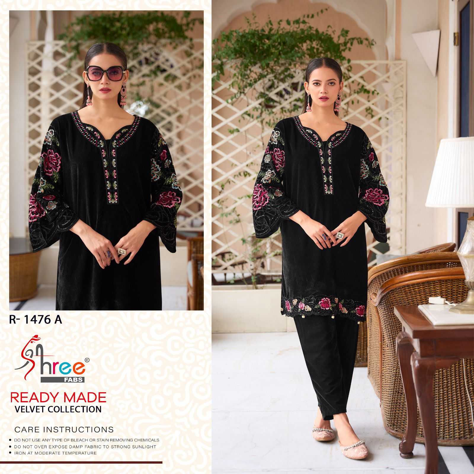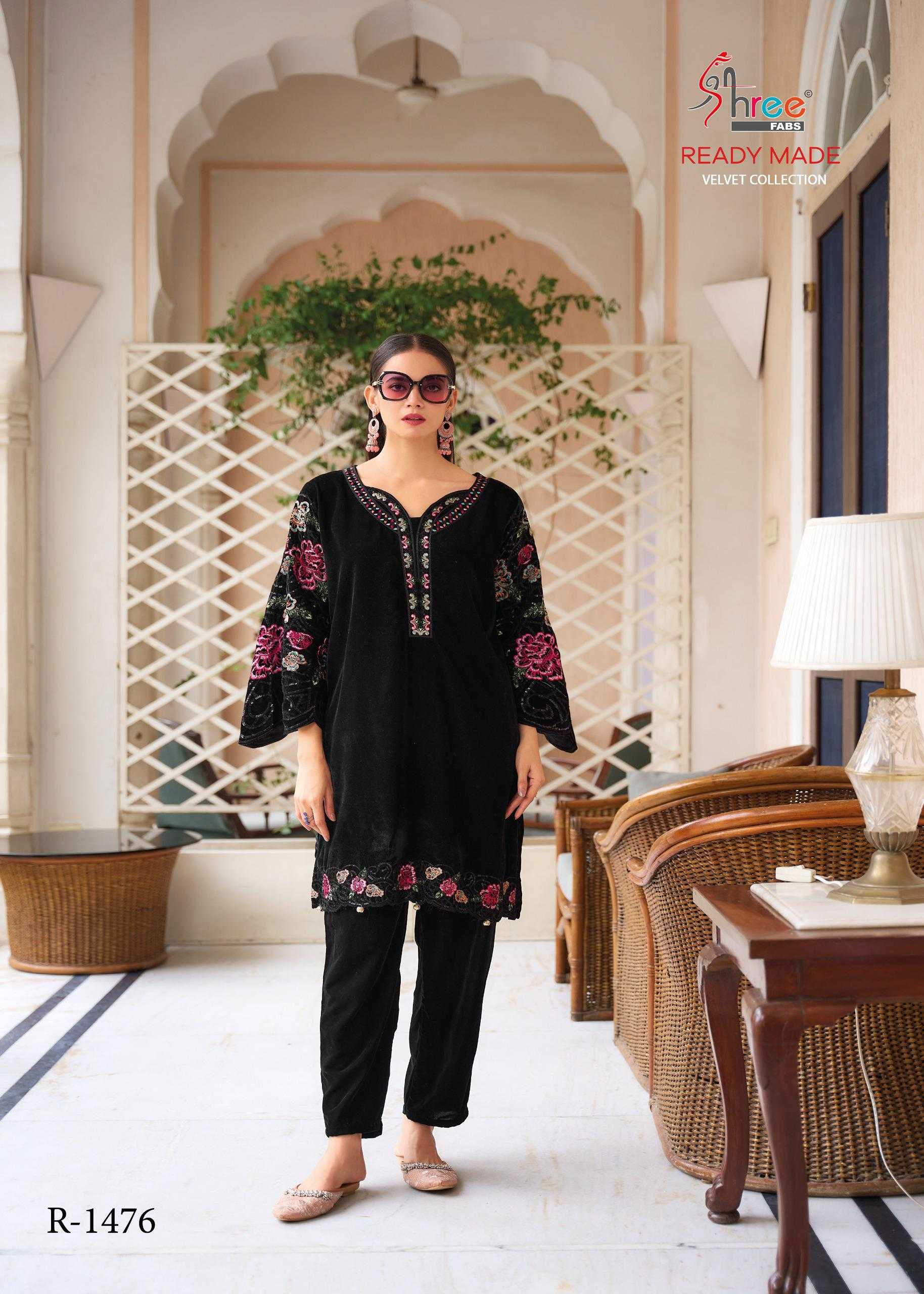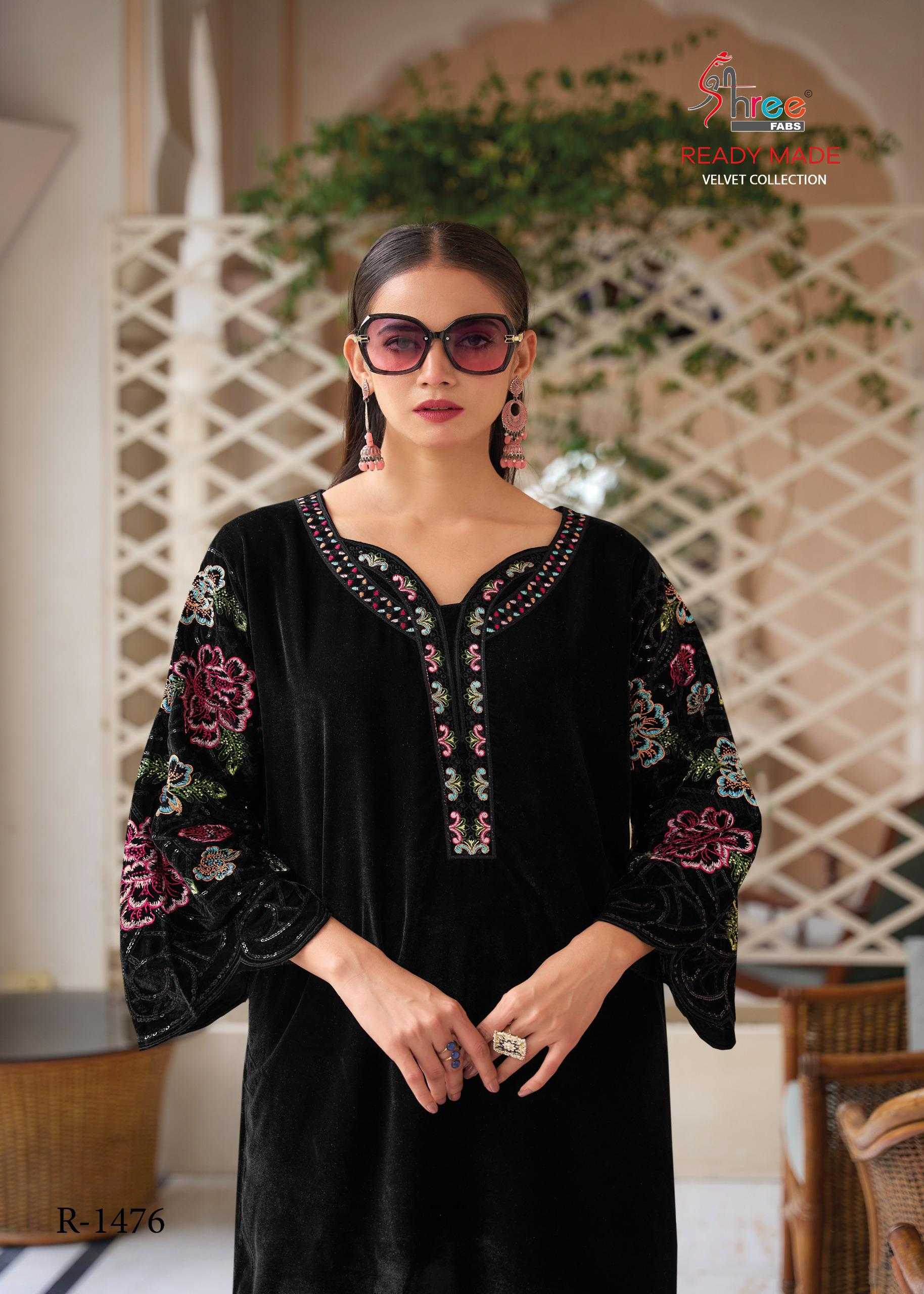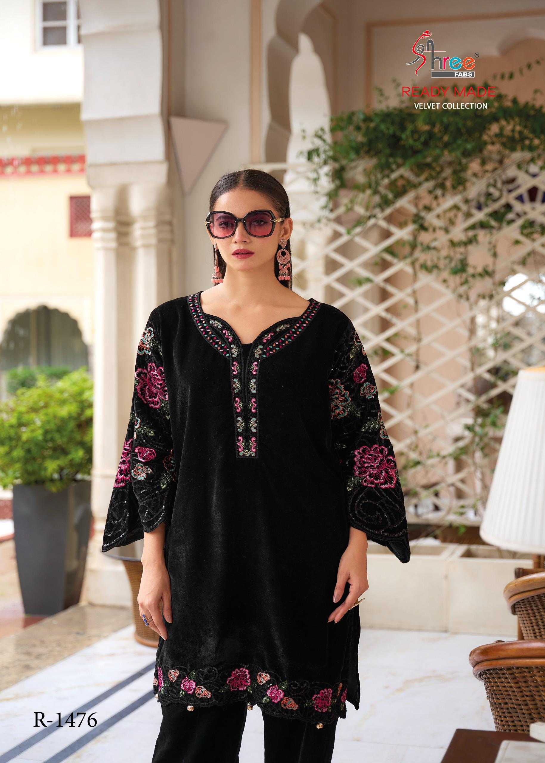 R 1476 by shree fabs winter special velvet designer full stitch kurti with pant